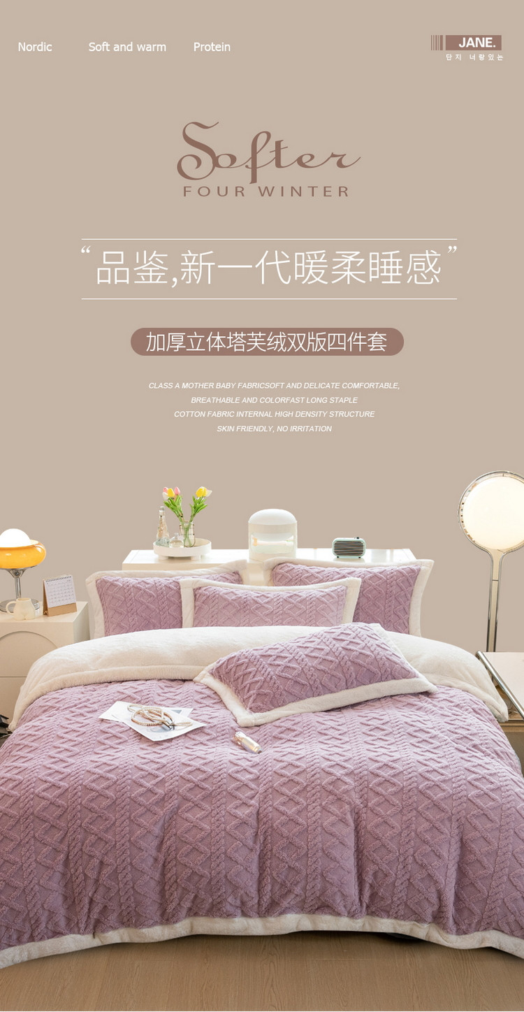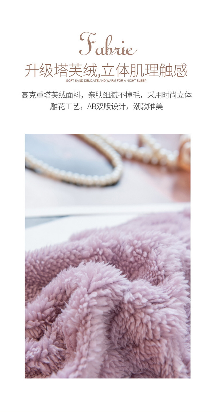 商品名称:丝羽坊 直播爆款220克塔芙绒提花四件套剪花雕花牛奶绒莫奈紫