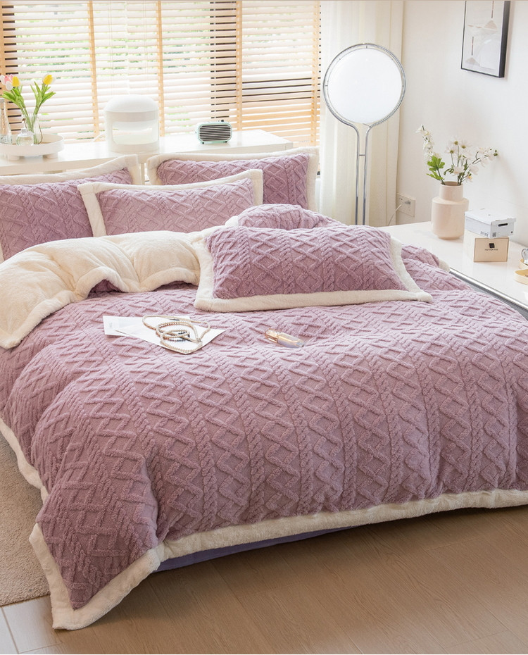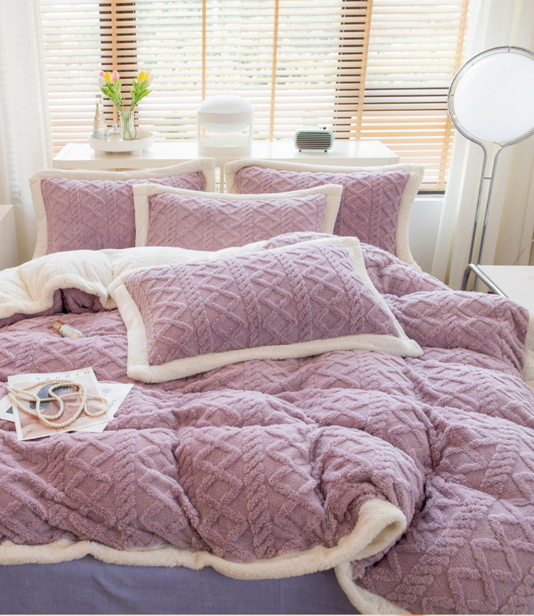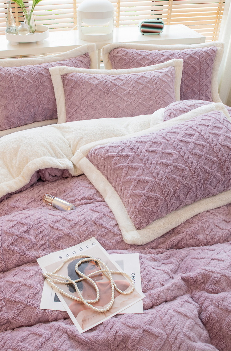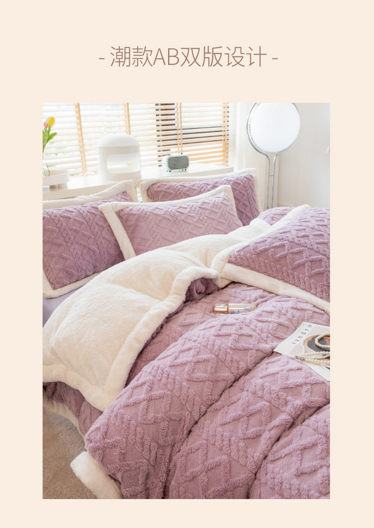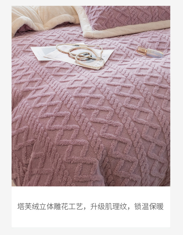 丝羽坊 直播爆款220克塔芙绒提花四件套剪花雕花牛奶绒莫奈紫
