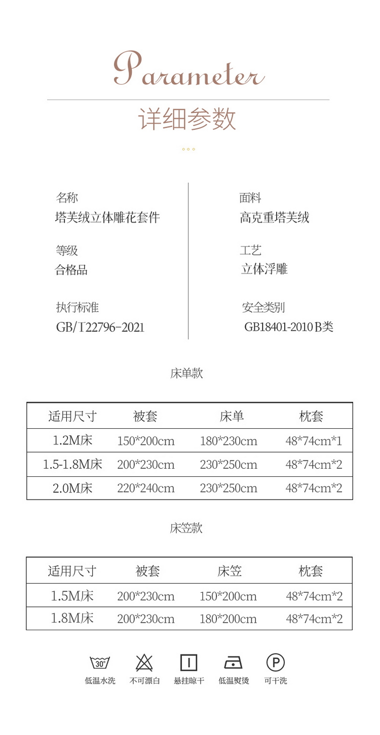 [{"sp_id":11,"sp_name":"\u989c\u8272\u5206\u7c7b","sp_format":2,"sp_list":[{"sp_value_id":59,"sp_value_name":"\u83ab\u5948\u7d2b","sp_value_image":{"id":999,"path":"https:\/\/img3.91jf.com\/qcloud\/goods\/20220825\/1661388235t0qDR0.jpg_30_30.jpg"},"sp_value_video":{"id":0,"img":"","path":"","time":0,"download_num":0,"play_num":0},"price":"95.00","storage":499,"weight":"3.100","is_check_weight":0,"plus_price":"","sp_sort":160653082}]},{"sp_id":10,"sp_name":"\u9002\u7528\u5e8a\u5c3a\u5bf8","sp_format":1,"sp_list":[{"sp_value_id":38,"sp_value_name":"1.2m\u5c0f\u53f7\u4e09\u4ef6\u5957","sp_value_image":{"id":0,"path":""},"sp_value_video":{"id":0,"img":"","path":"","time":0,"download_num":0,"play_num":0},"price":"95.00","storage":0,"weight":"3.100","is_check_weight":0,"plus_price":"","sp_sort":160653082},{"sp_value_id":42,"sp_value_name":"1.5m\u5e8a\u5355\u6b3e\u56db\u4ef6\u5957","sp_value_image":{"id":0,"path":""},"sp_value_video":{"id":0,"img":"","path":"","time":0,"download_num":0,"play_num":0},"price":"120.00","storage":100,"weight":"3.600","is_check_weight":0,"plus_price":"","sp_sort":160653083},{"sp_value_id":736,"sp_value_name":"1.8m\u5e8a\u5355\u6b3e\u56db\u4ef6\u5957","sp_value_image":{"id":0,"path":""},"sp_value_video":{"id":0,"img":"","path":"","time":0,"download_num":0,"play_num":0},"price":"120.00","storage":100,"weight":"3.600","is_check_weight":0,"plus_price":"","sp_sort":160653084},{"sp_value_id":766,"sp_value_name":"2.0m\u5e8a\u5355\u6b3e\u56db\u4ef6\u5957","sp_value_image":{"id":0,"path":""},"sp_value_video":{"id":0,"img":"","path":"","time":0,"download_num":0,"play_num":0},"price":"130.00","storage":99,"weight":"4.220","is_check_weight":1,"plus_price":"","sp_sort":160653085},{"sp_value_id":775,"sp_value_name":"1.5m\u5e8a\u7b20\u56db\u4ef6\u5957","sp_value_image":{"id":0,"path":""},"sp_value_video":{"id":0,"img":"","path":"","time":0,"download_num":0,"play_num":0},"price":"130.00","storage":100,"weight":"3.600","is_check_weight":0,"plus_price":"","sp_sort":160653086},{"sp_value_id":779,"sp_value_name":"1.8m\u5e8a\u7b20\u56db\u4ef6\u5957","sp_value_image":{"id":0,"path":""},"sp_value_video":{"id":0,"img":"","path":"","time":0,"download_num":0,"play_num":0},"price":"130.00","storage":100,"weight":"3.600","is_check_weight":0,"plus_price":"","sp_sort":160653087}]}]