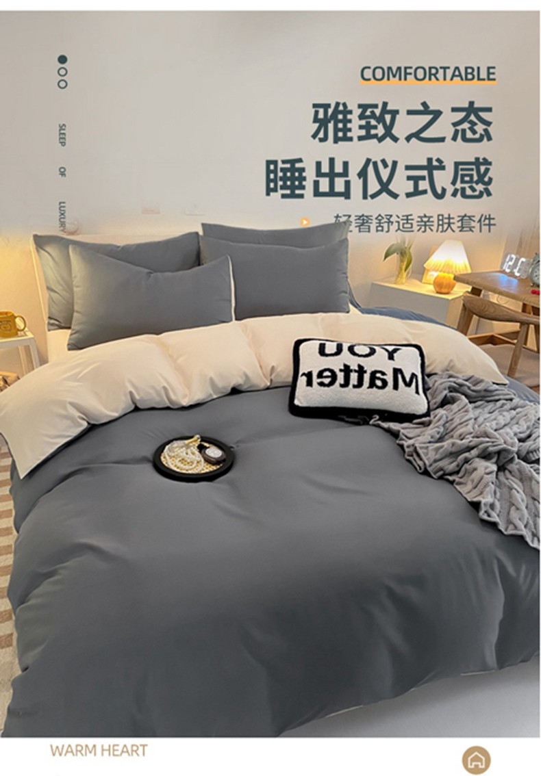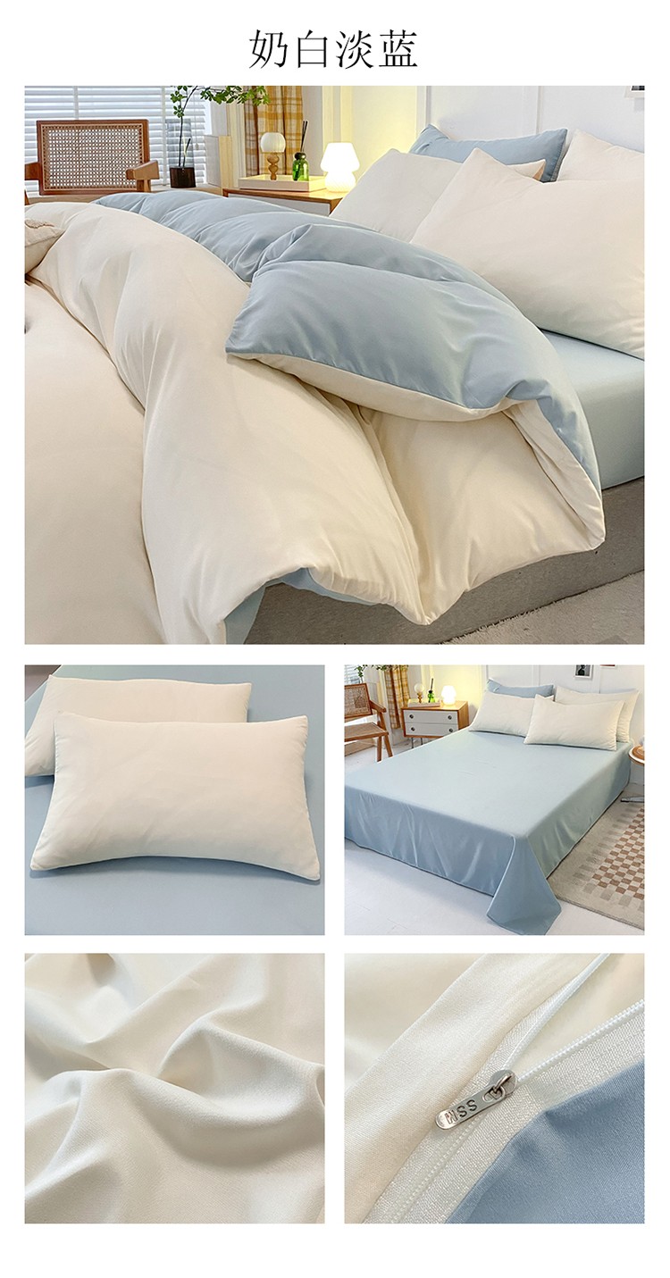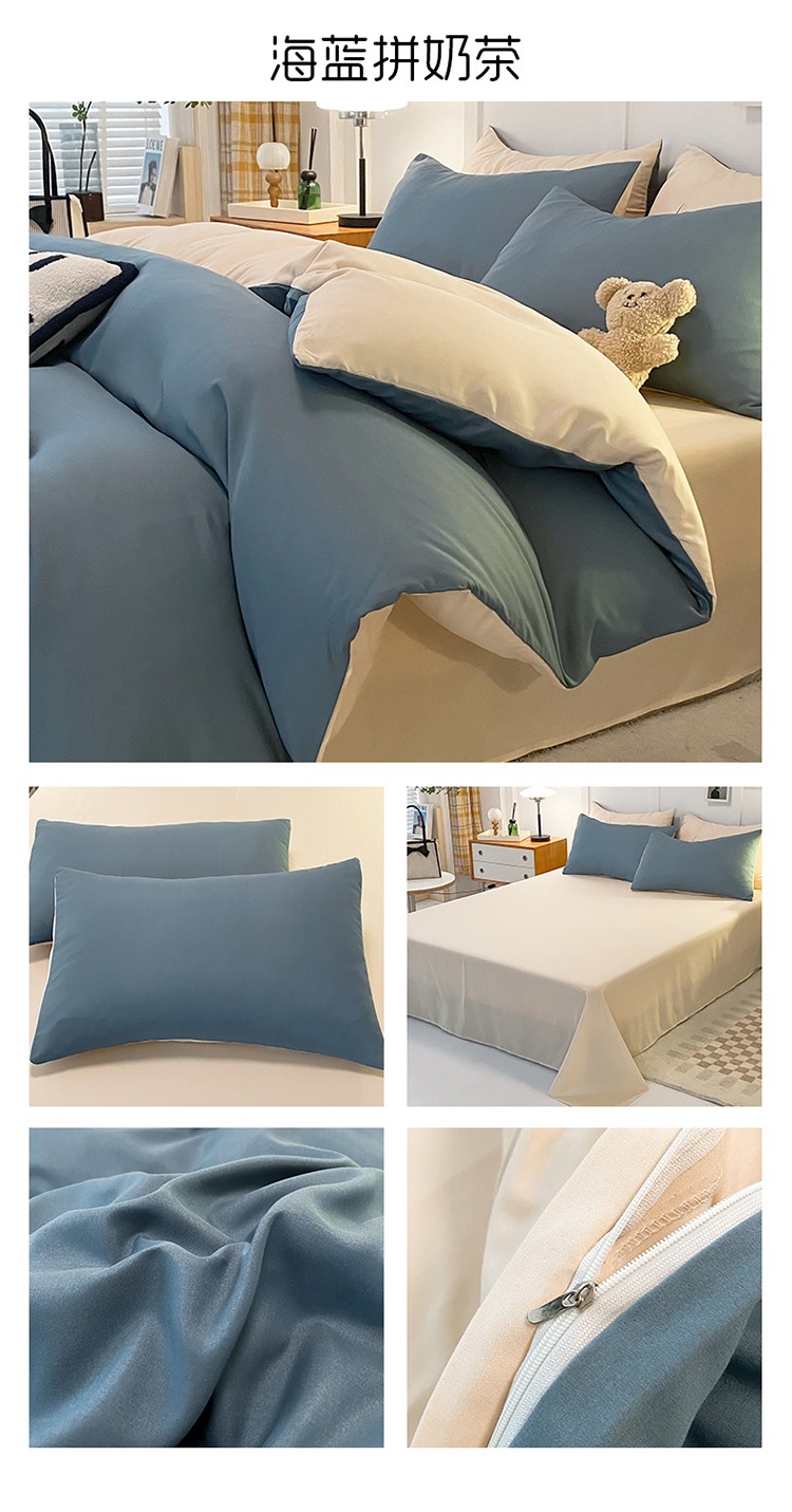 (总)米瑞娜2022新款纯色磨毛双拼四件套