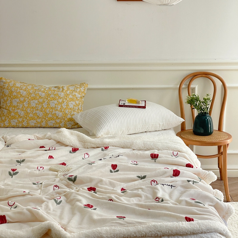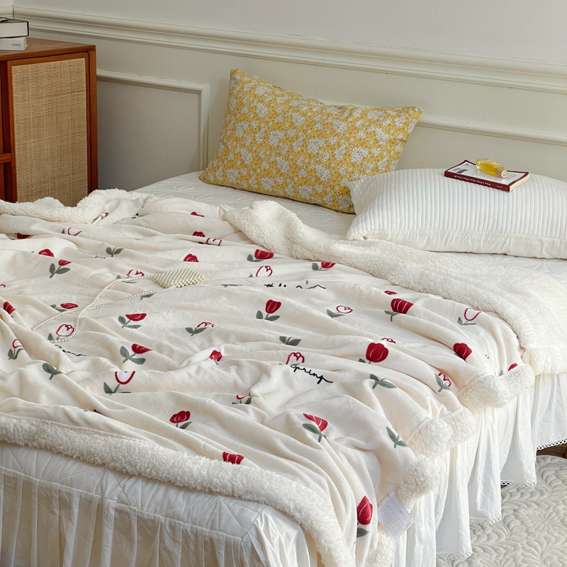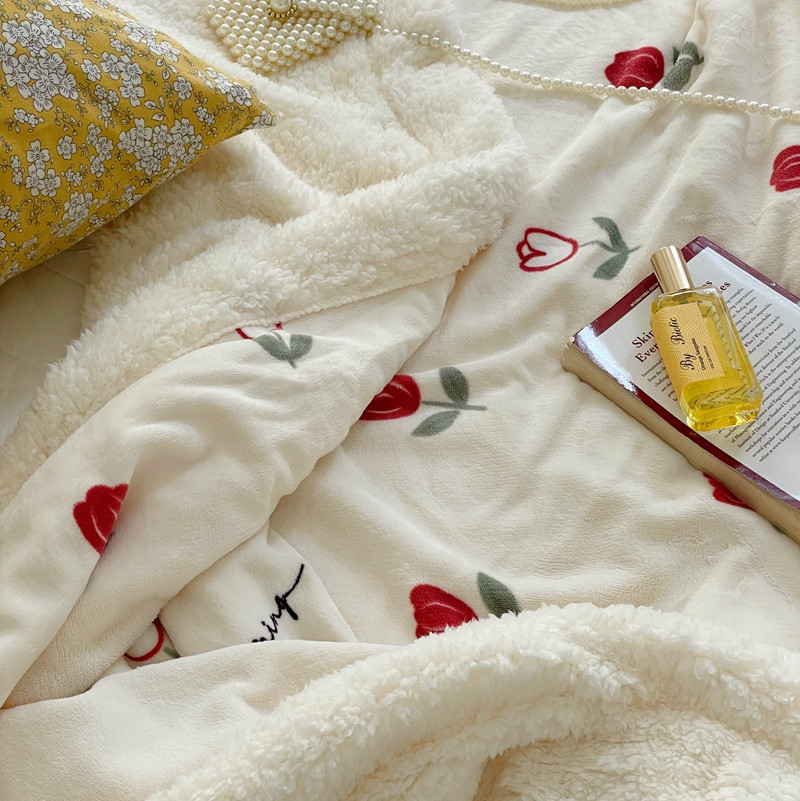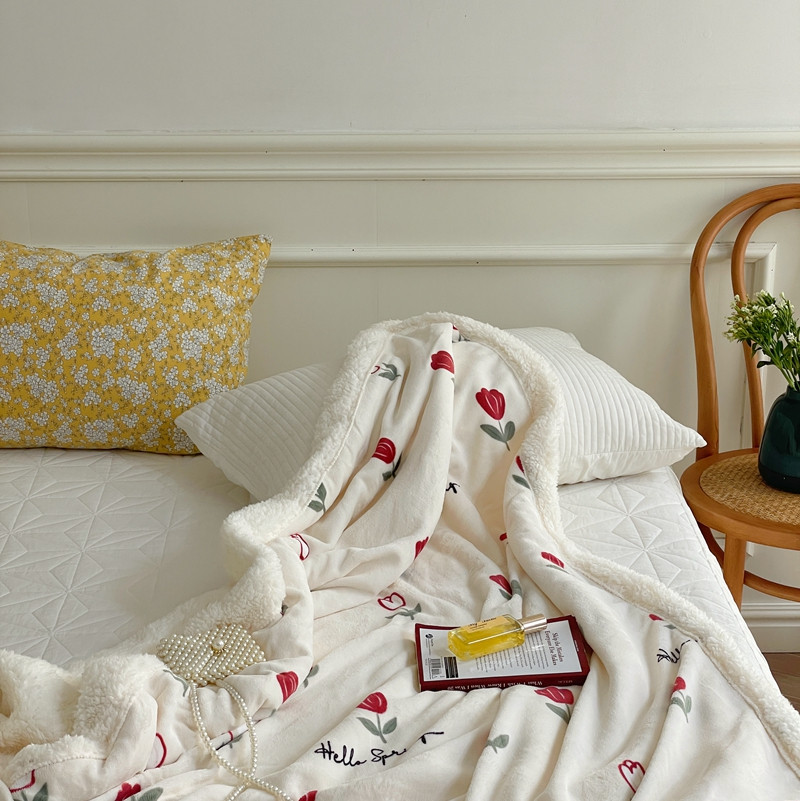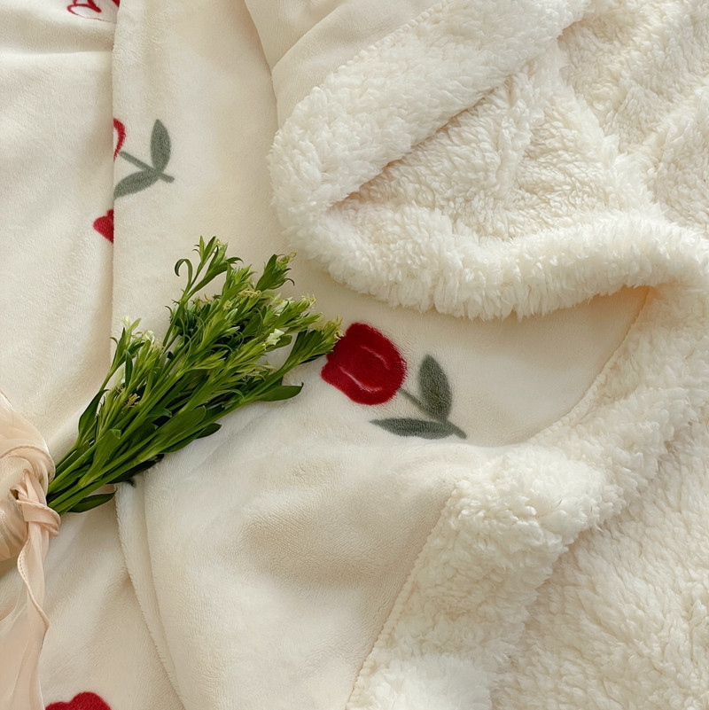 时年 2022新款牛奶绒拼羊羔绒毯 露露