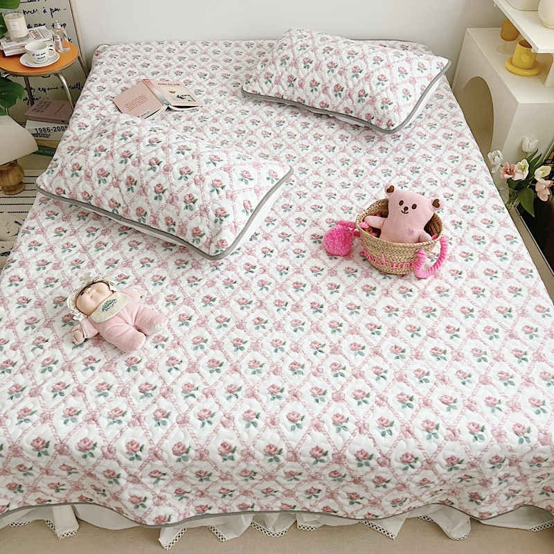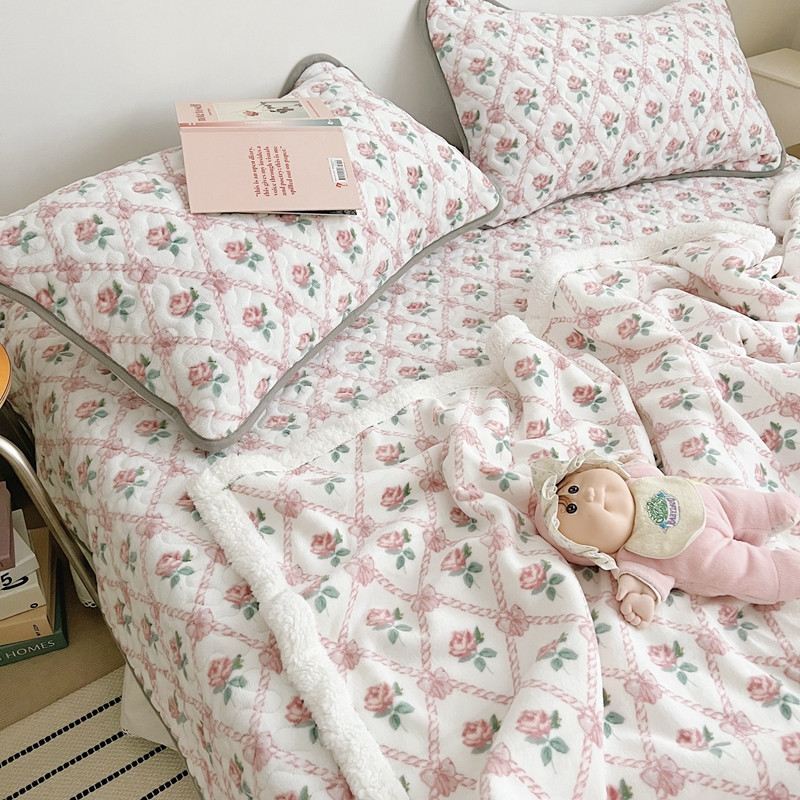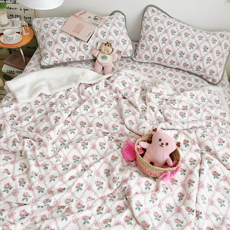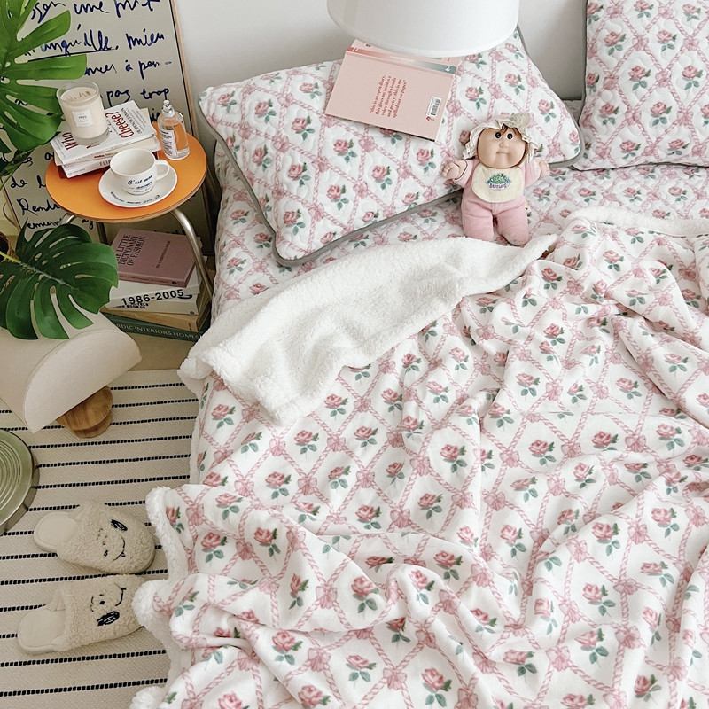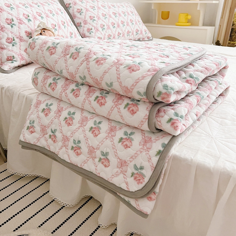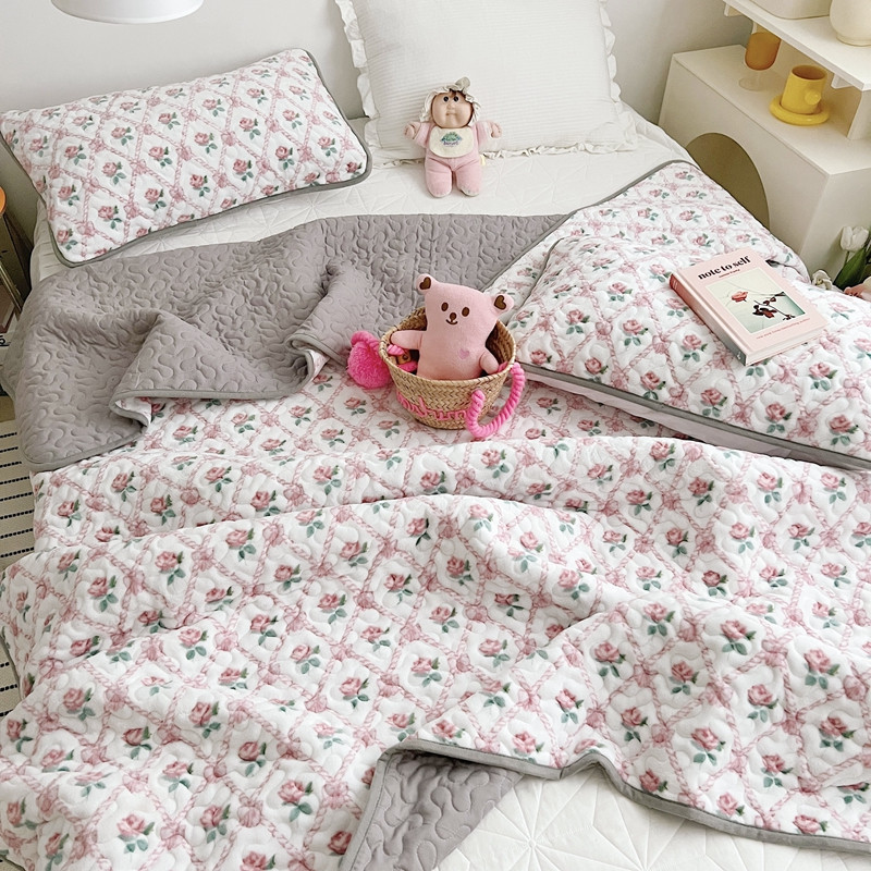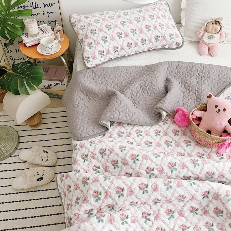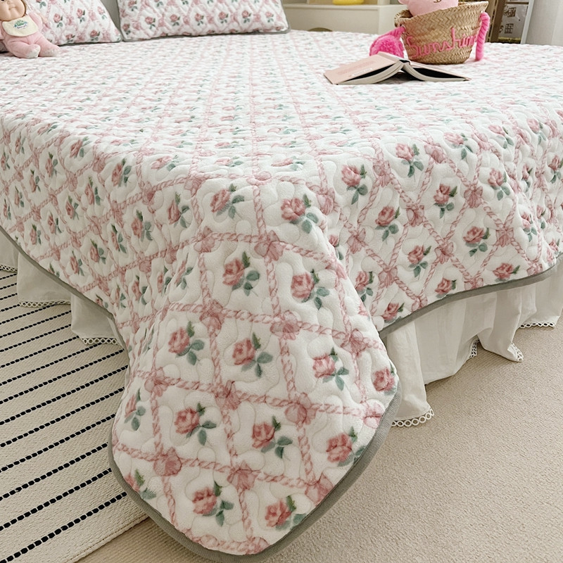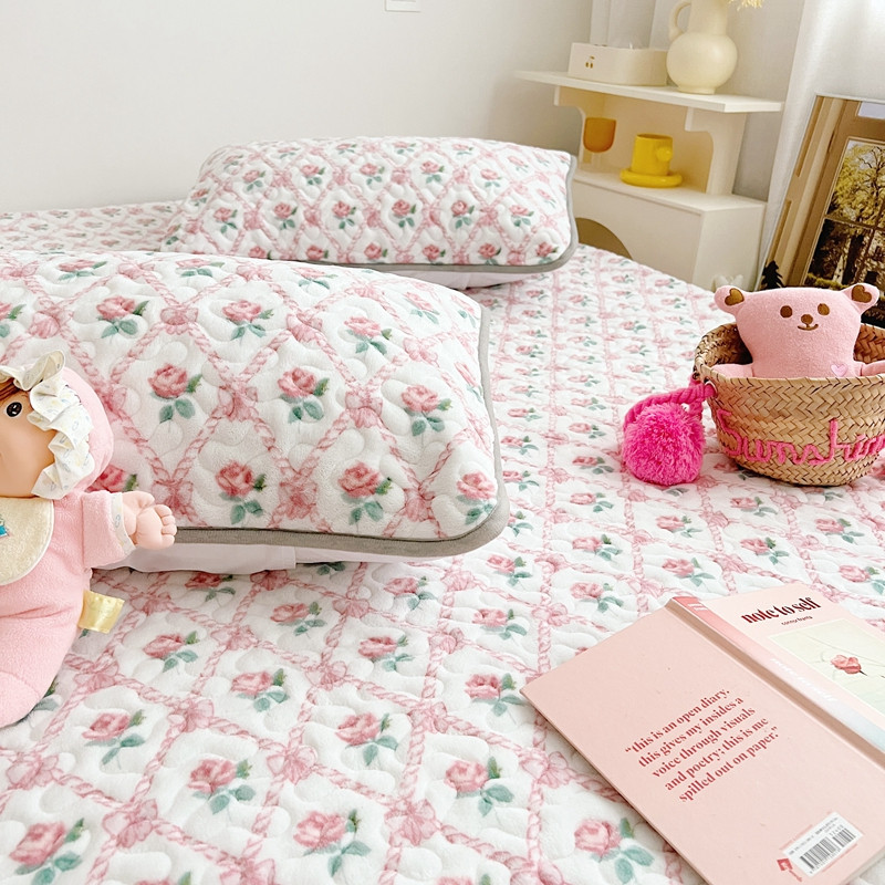 美乐迪 2022新款多功能牛奶绒亲肤棉床盖套件 粉格玫瑰