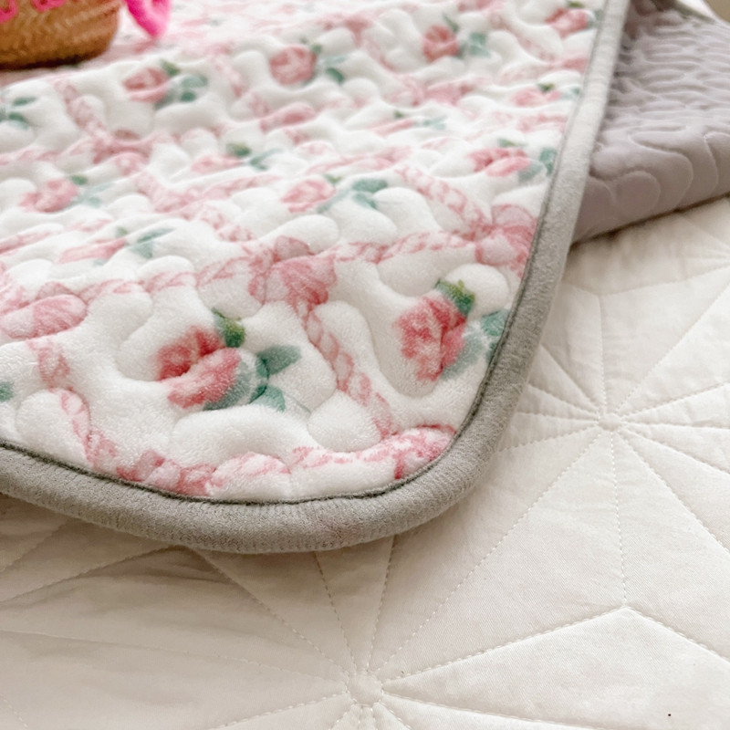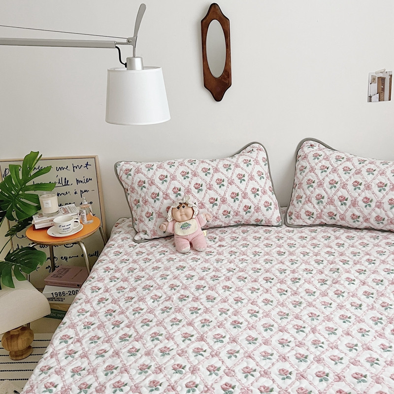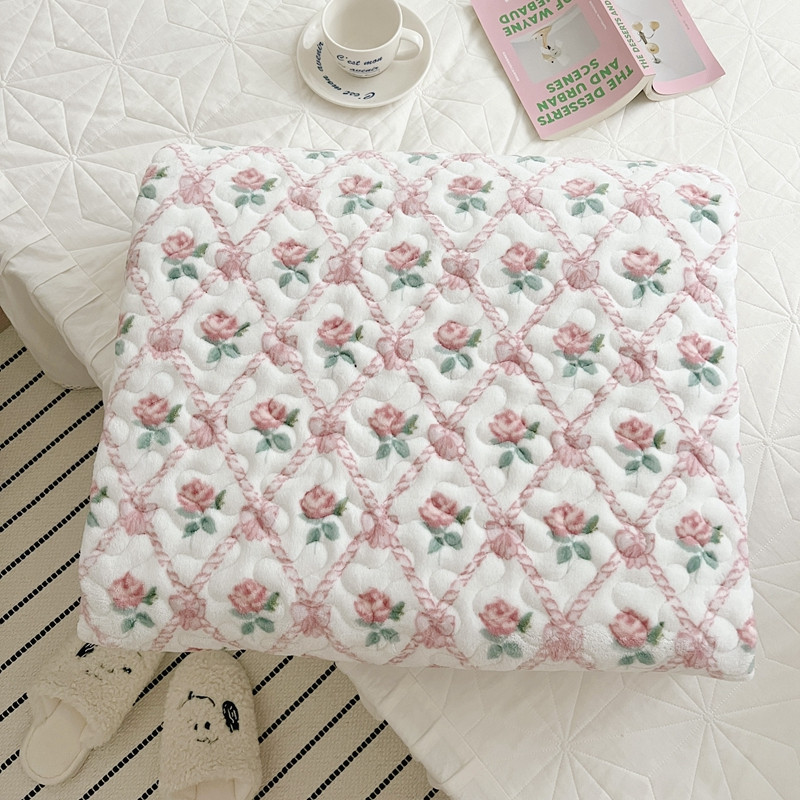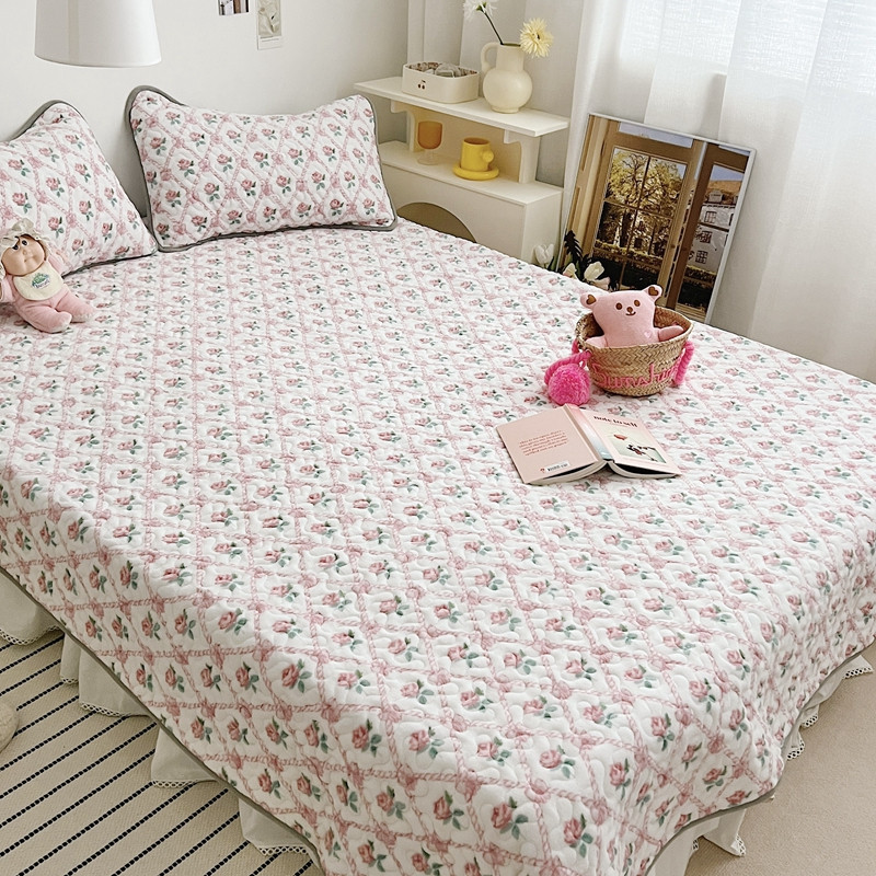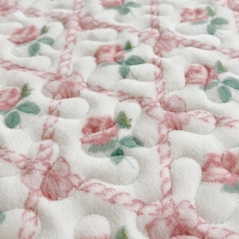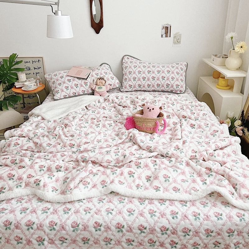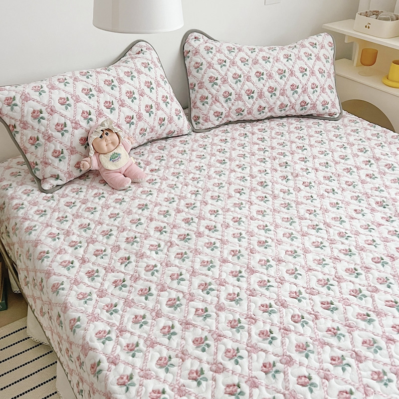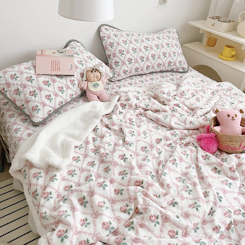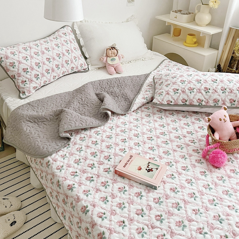 美乐迪 2022新款多功能牛奶绒亲肤棉床盖套件 粉格玫瑰
