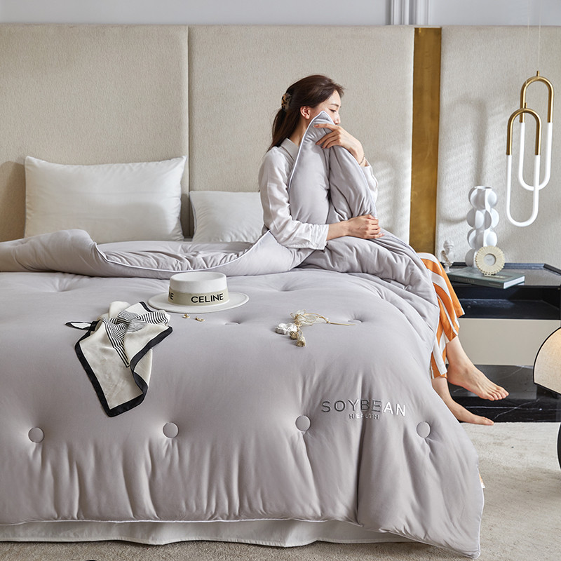玖琳家纺 2022新款豆皇SOYBEAN凉感丝A类秋冬被 烟灰