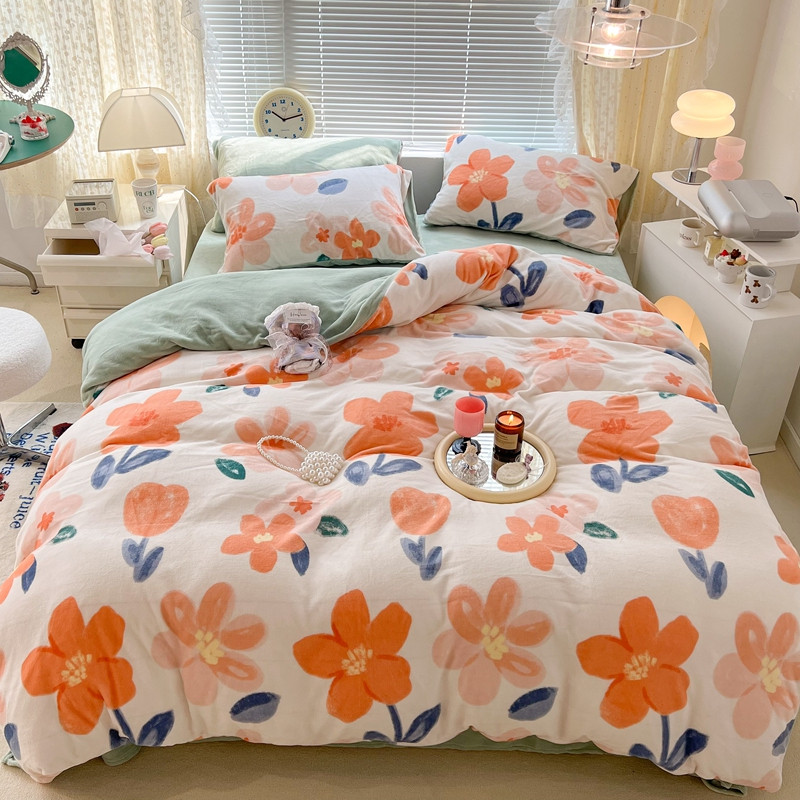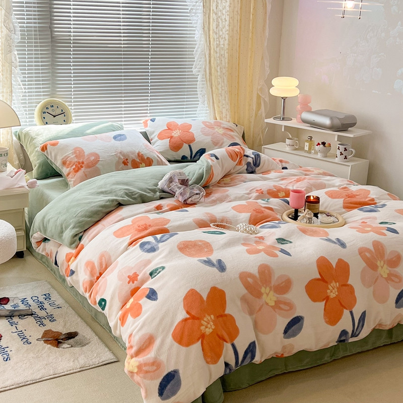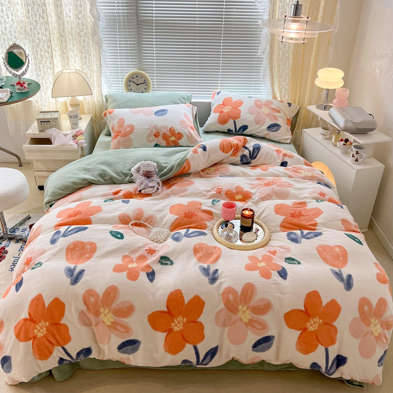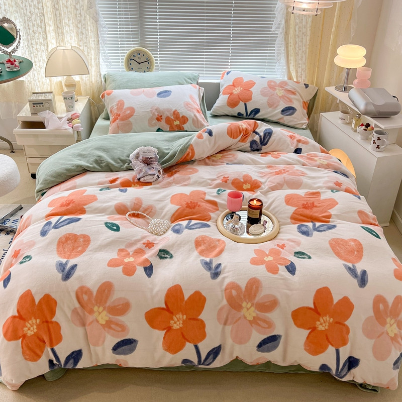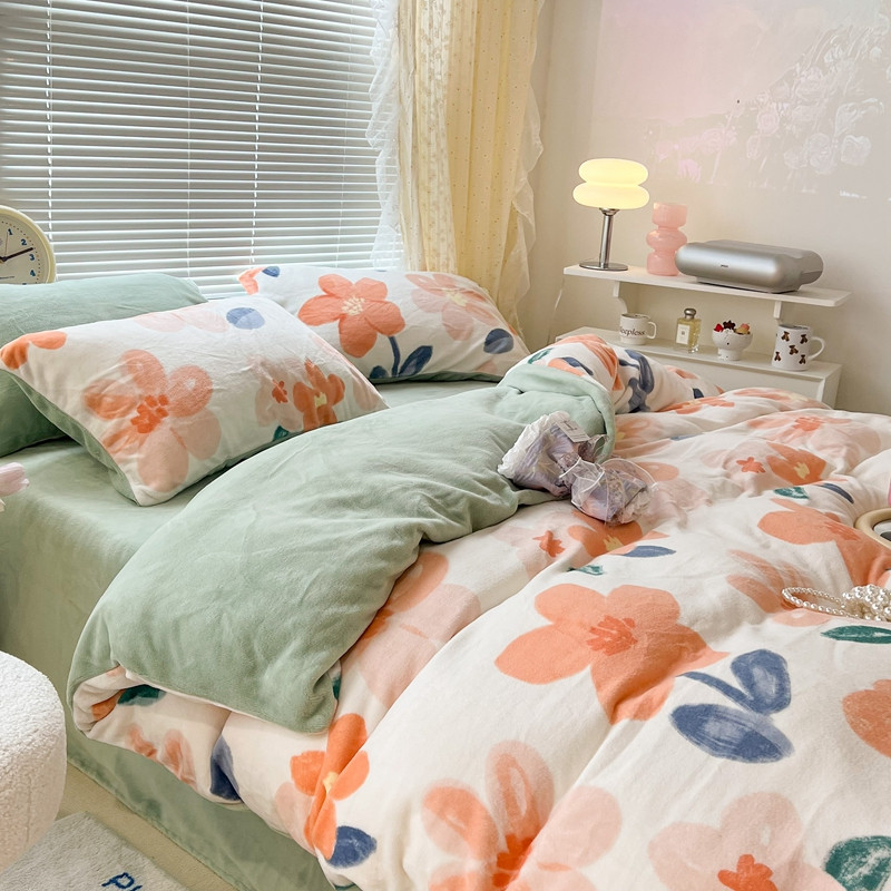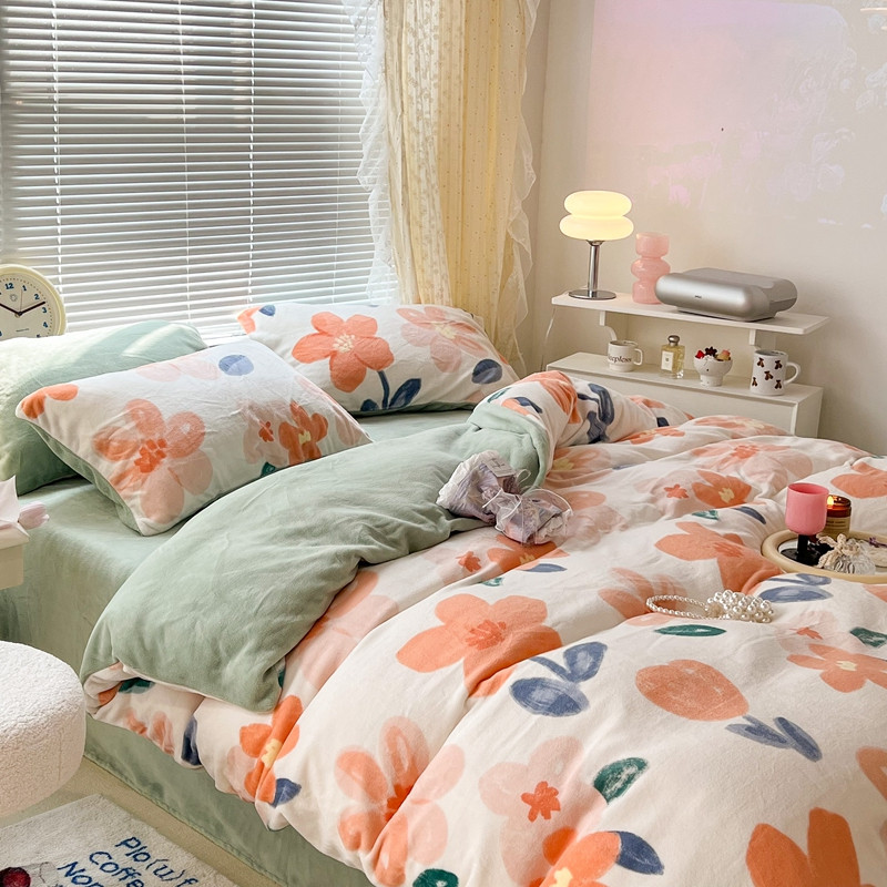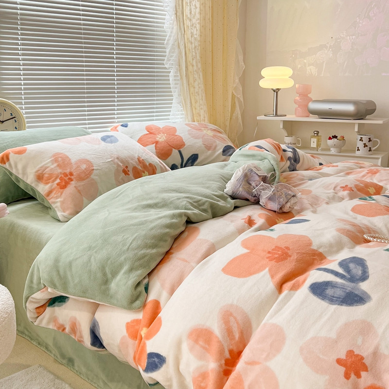 昔可 2022新款牛奶绒四件套花朵系列 香草奶油花