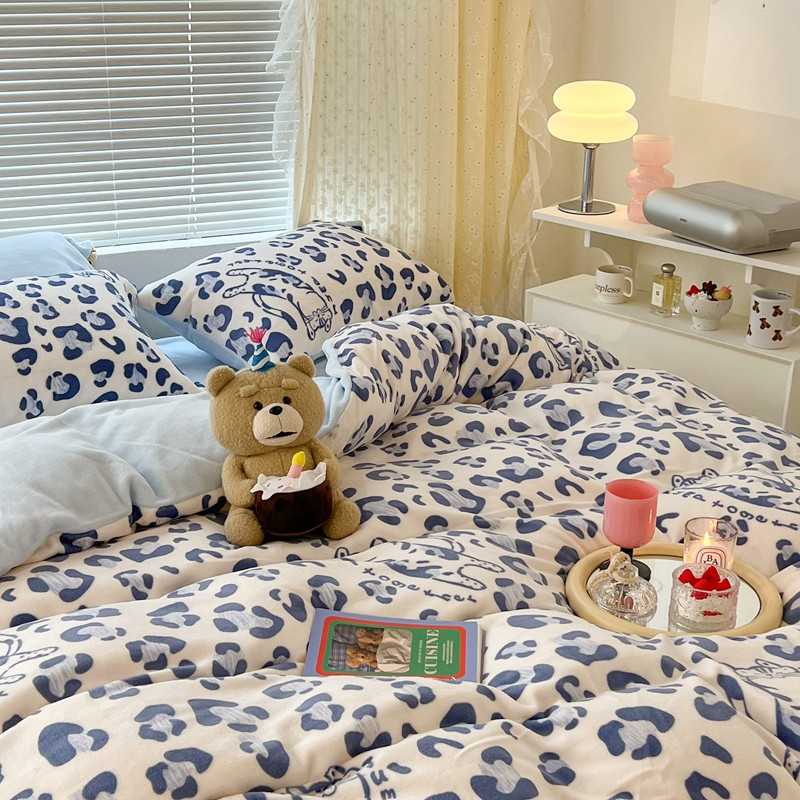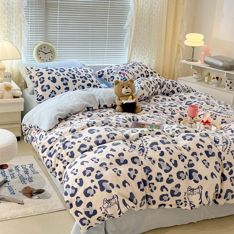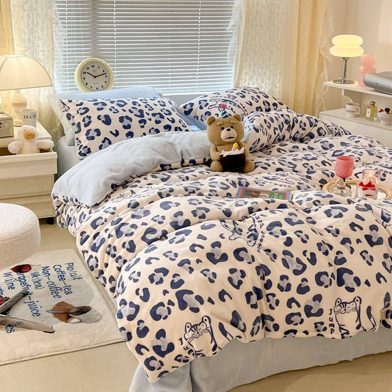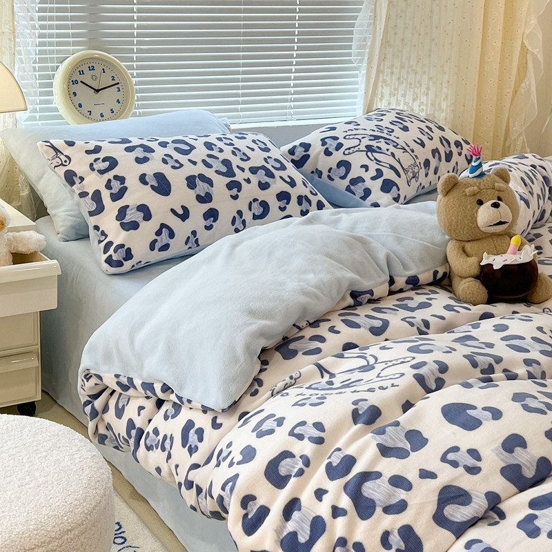 昔可 2022新款牛奶绒卡通系列四件套 豹纹蓝猫