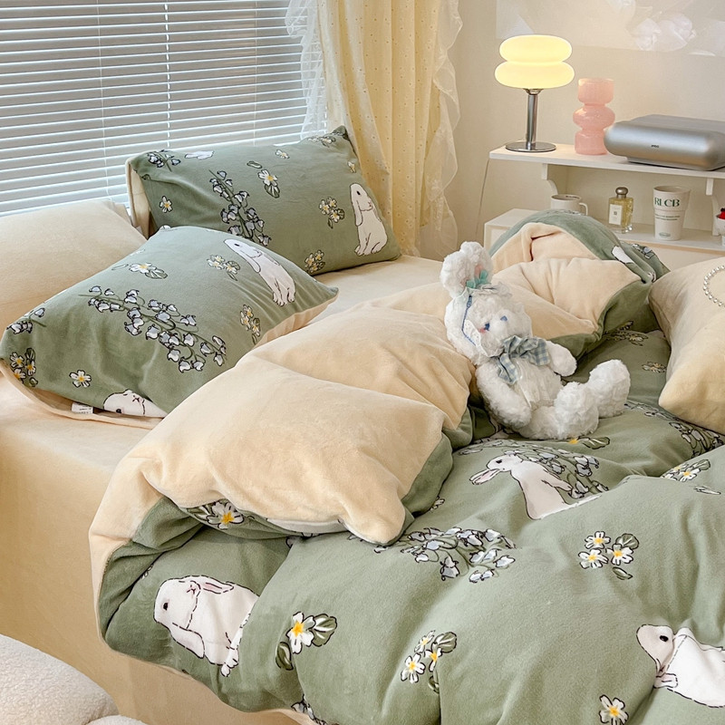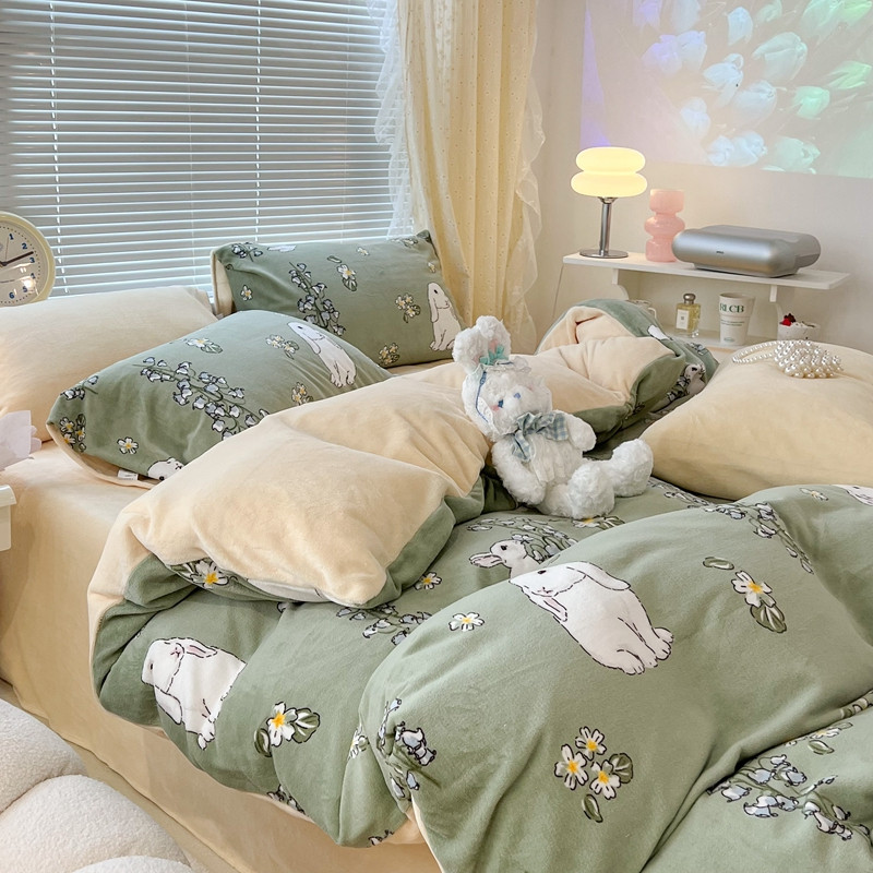 昔可 2022新款牛奶绒卡通系列四件套 铃兰花花兔