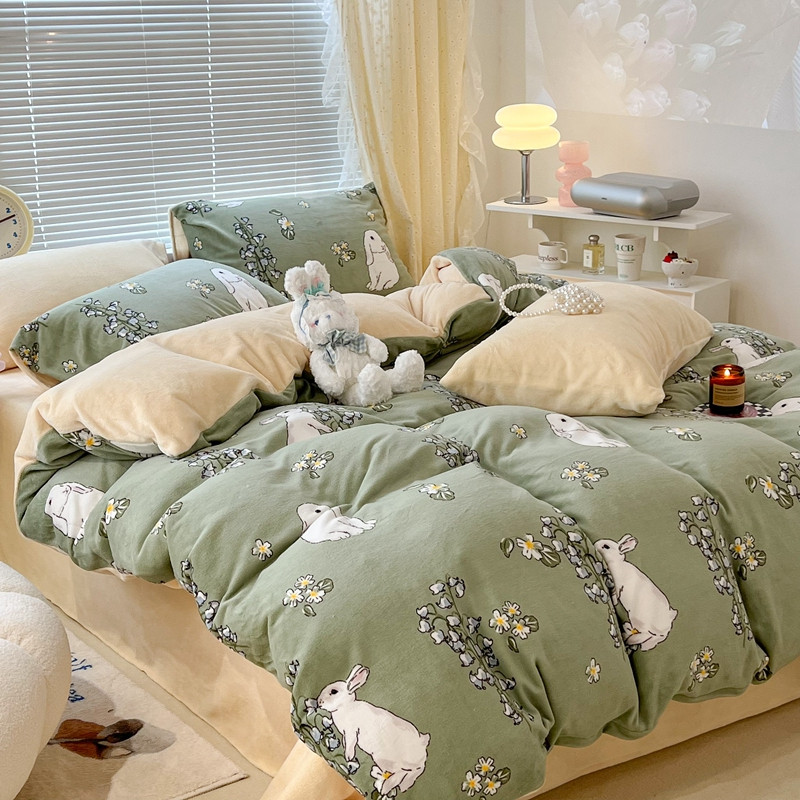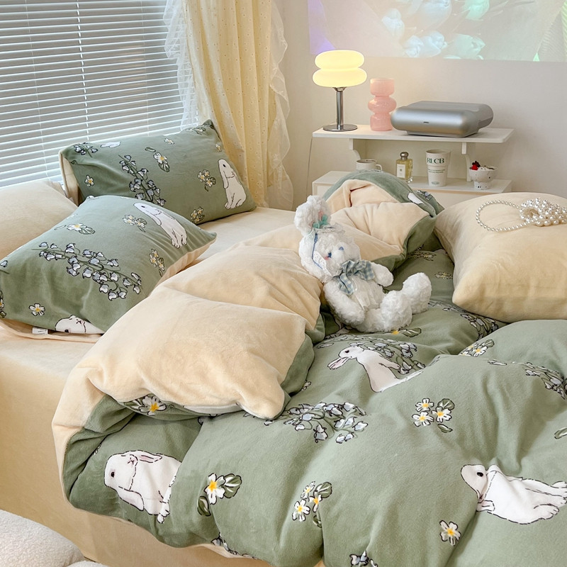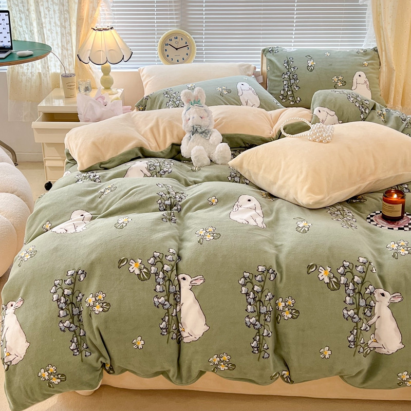 商品名称:昔可 2022新款牛奶绒卡通系列四件套 铃兰花花兔