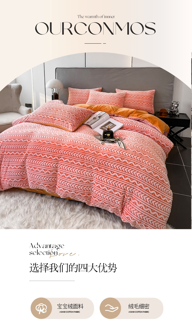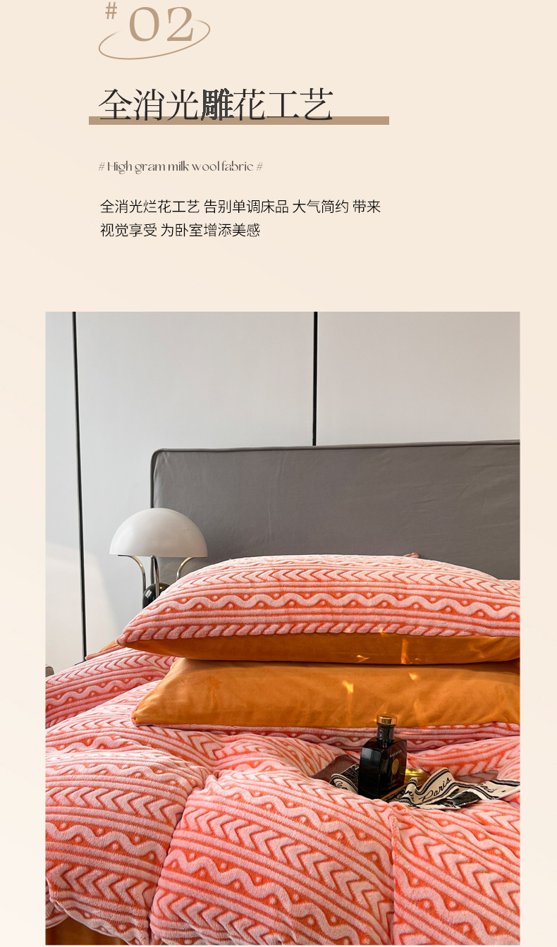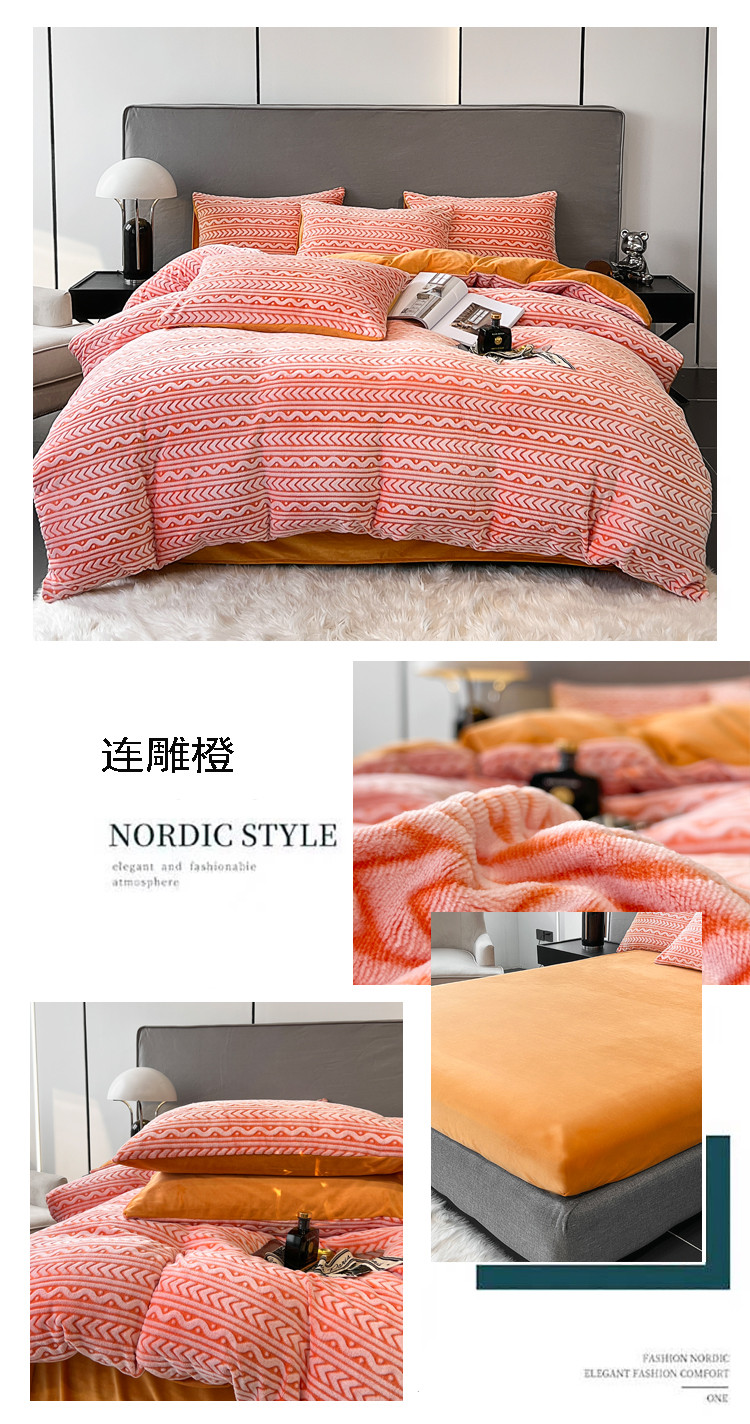 当前位置: 91家纺网 > 商品网购 > 床品套件 > 四件套 > 雕花绒四件套 > 啊雅家居 2025新款雕花绒加宝宝绒四件套 连雕橙