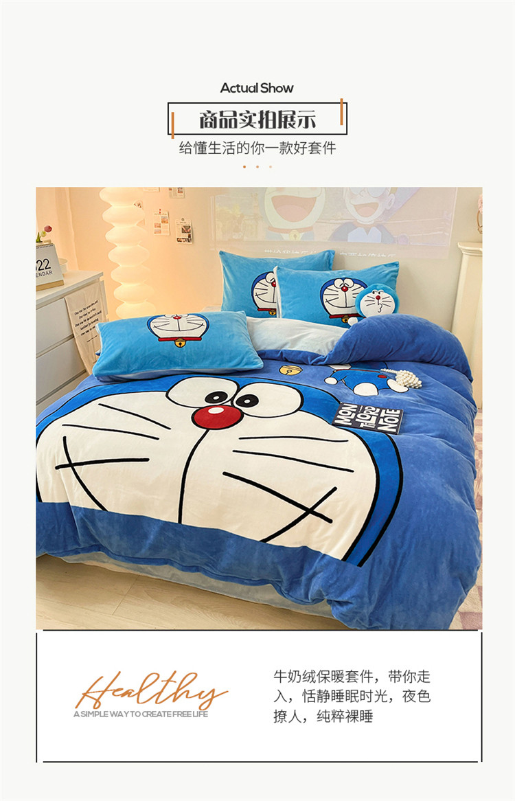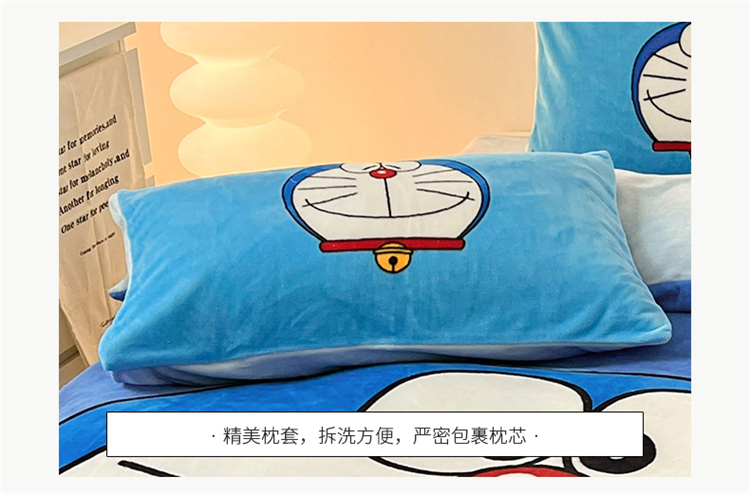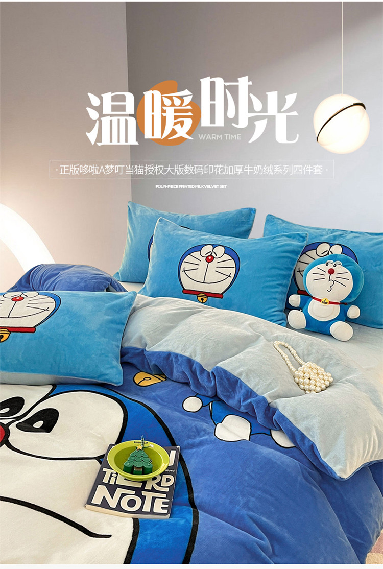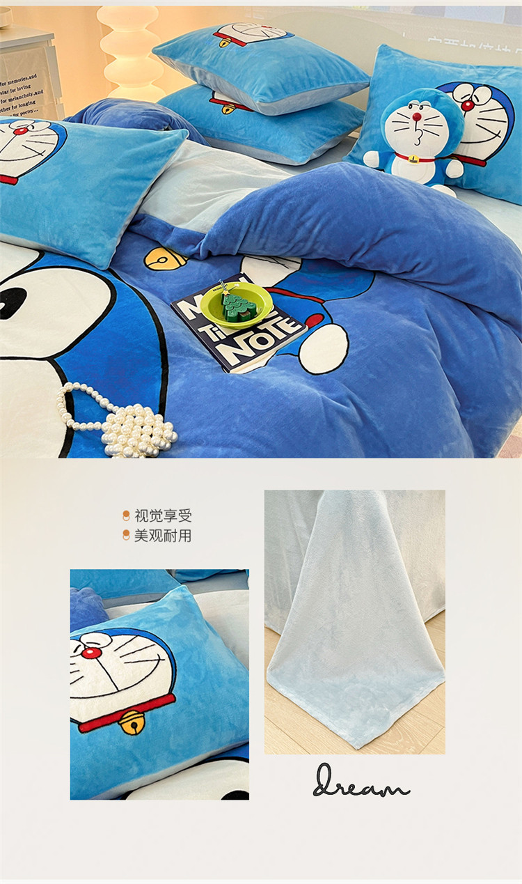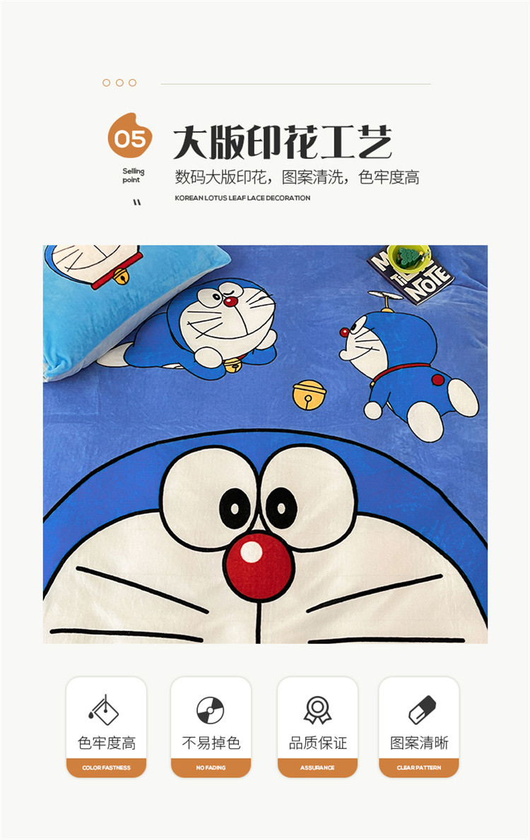 商品名称:正版哆啦A梦叮当猫授权大版数码印花加厚牛奶绒系列四件套 绒大版-蓝胖子