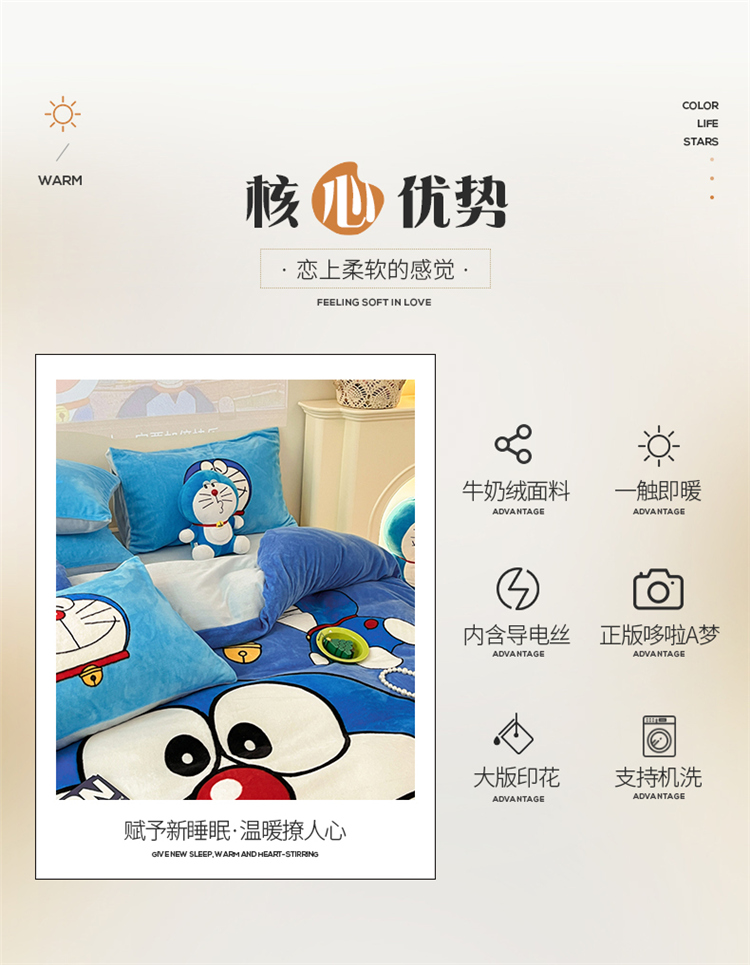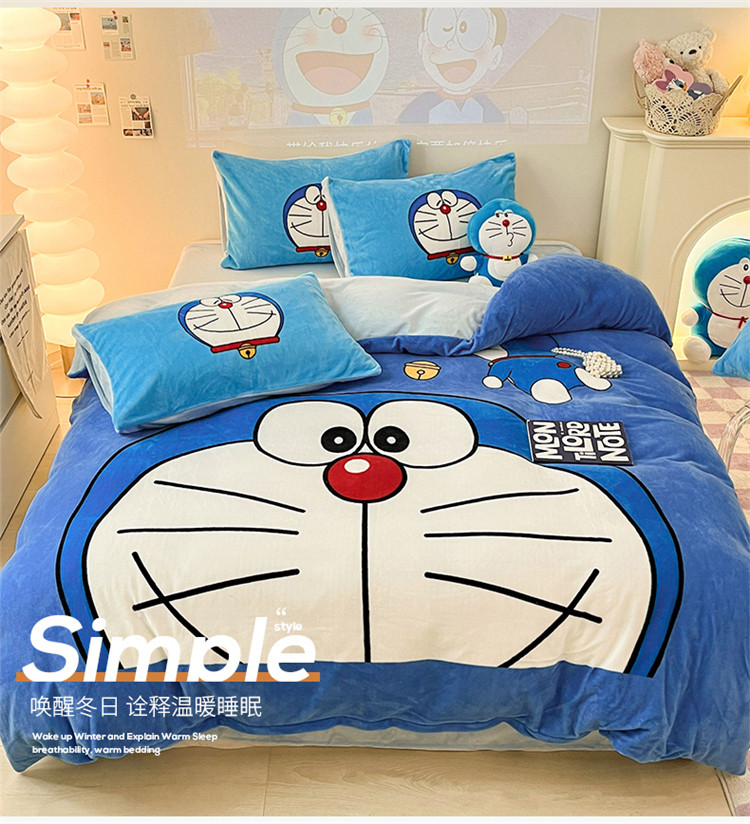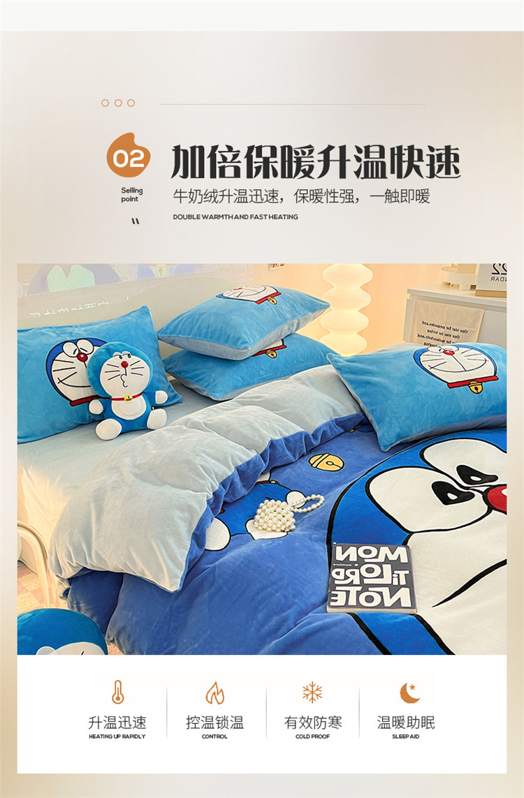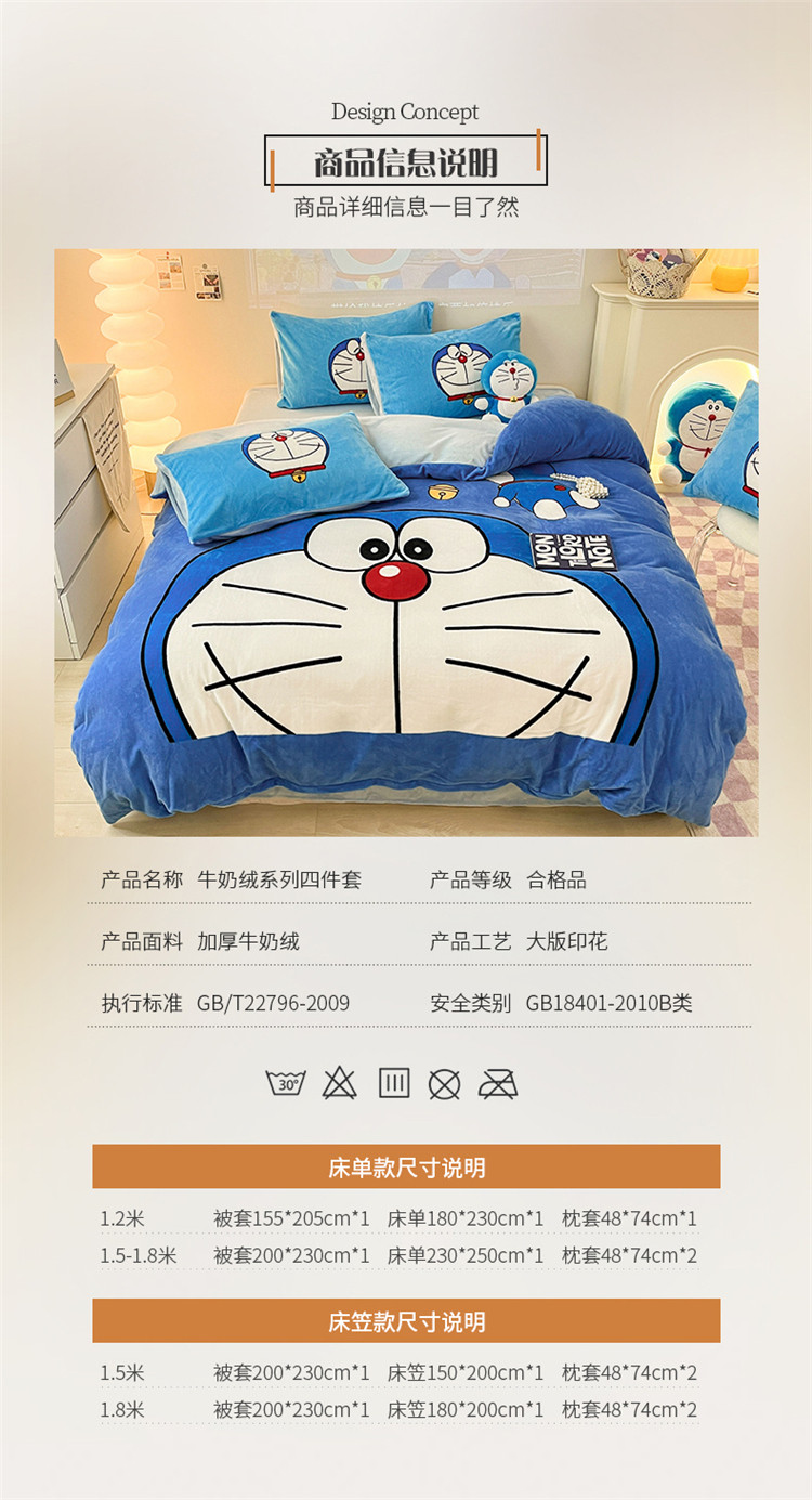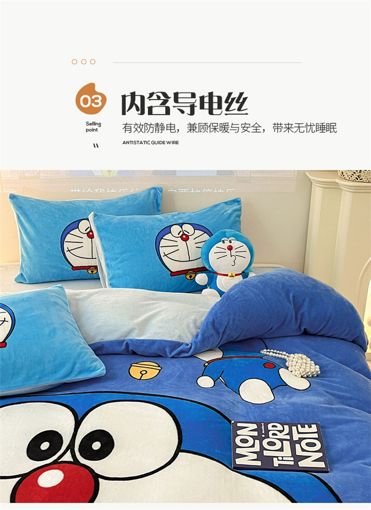 商品名称:正版哆啦A梦叮当猫授权大版数码印花加厚牛奶绒系列四件套 绒大版-蓝胖子