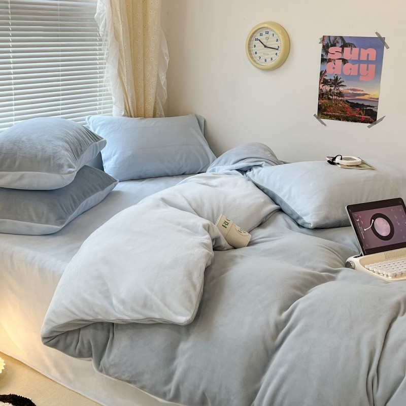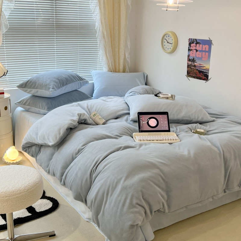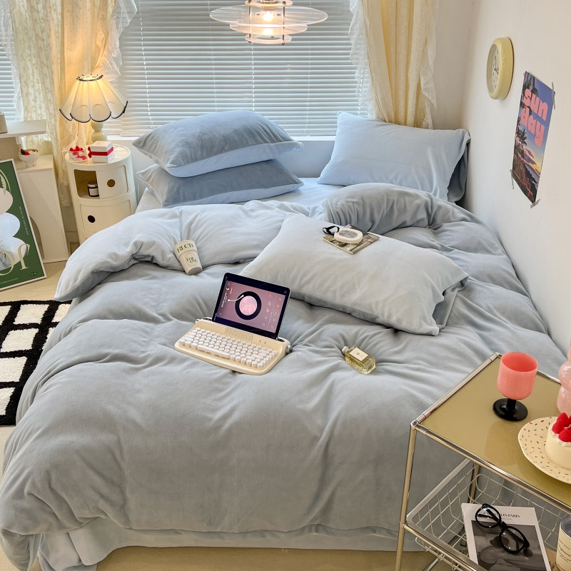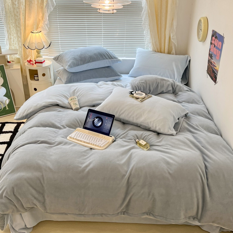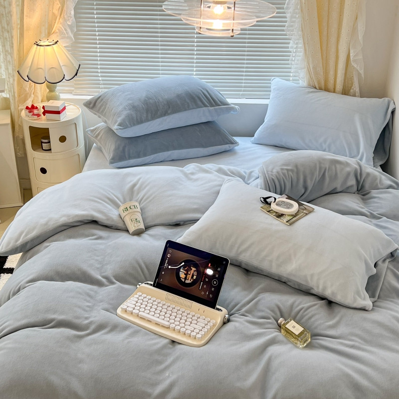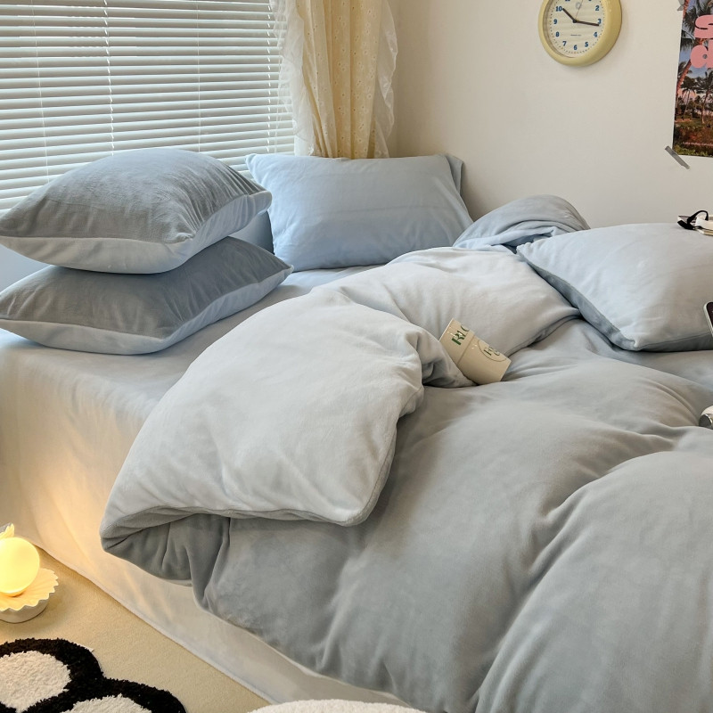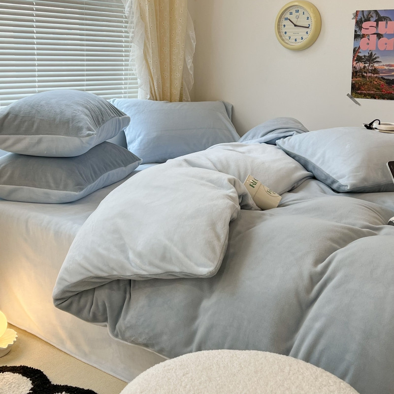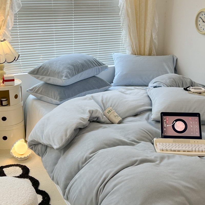 昔可 2022新款奶油双拼系列牛奶绒四件套 奶香雾蓝