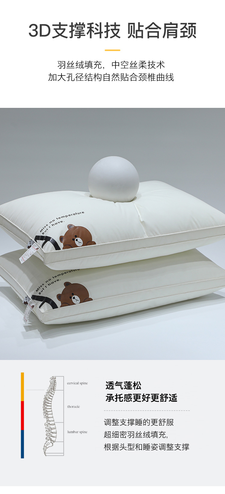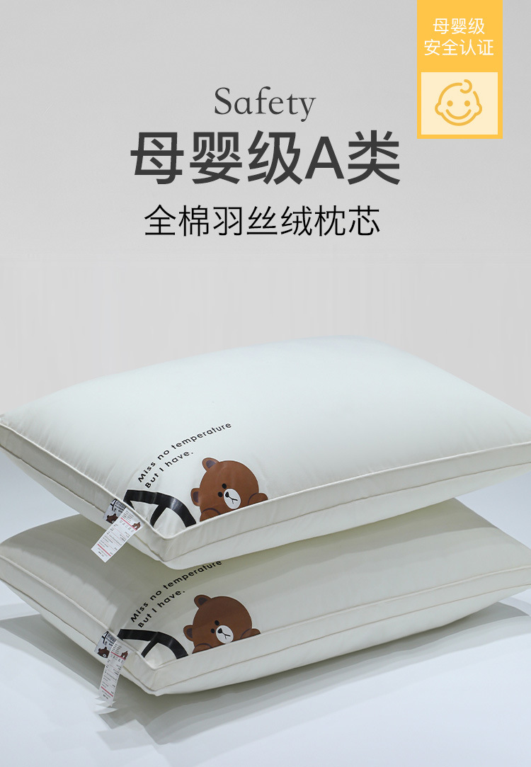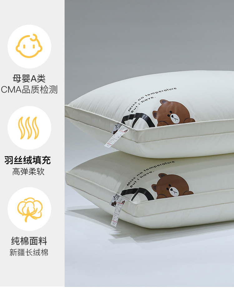 (总)织布人2022羽丝绒A+熊儿童低枕头枕芯40x60cm