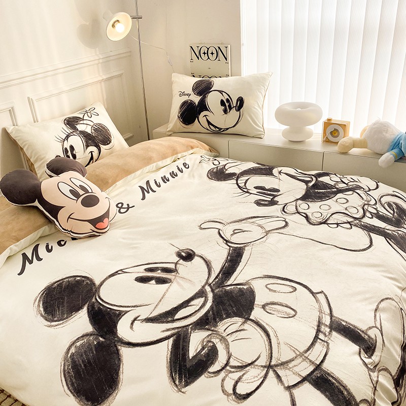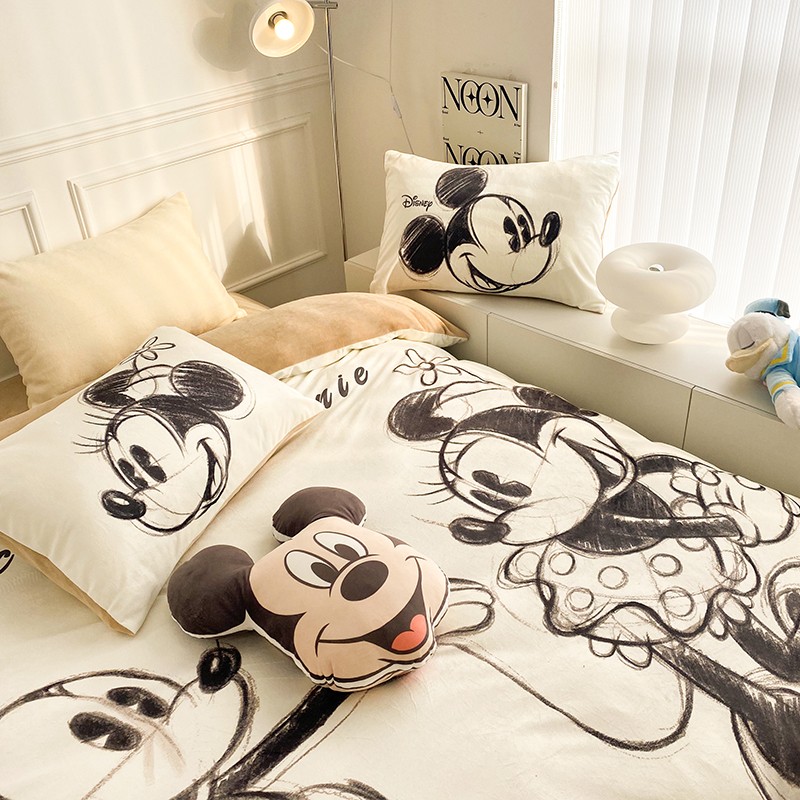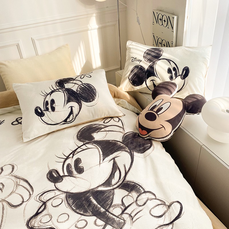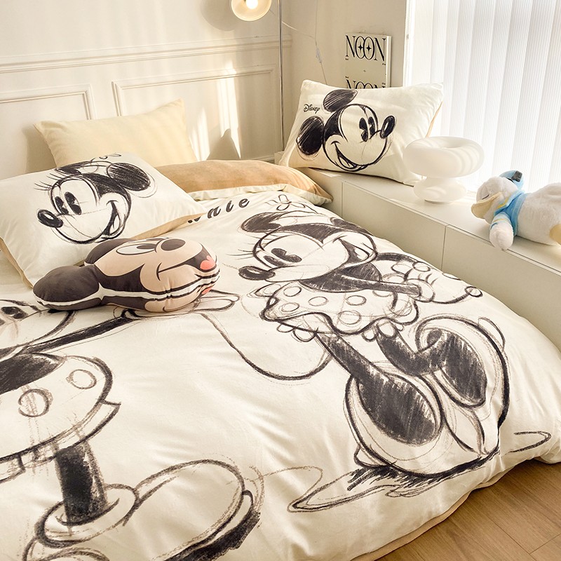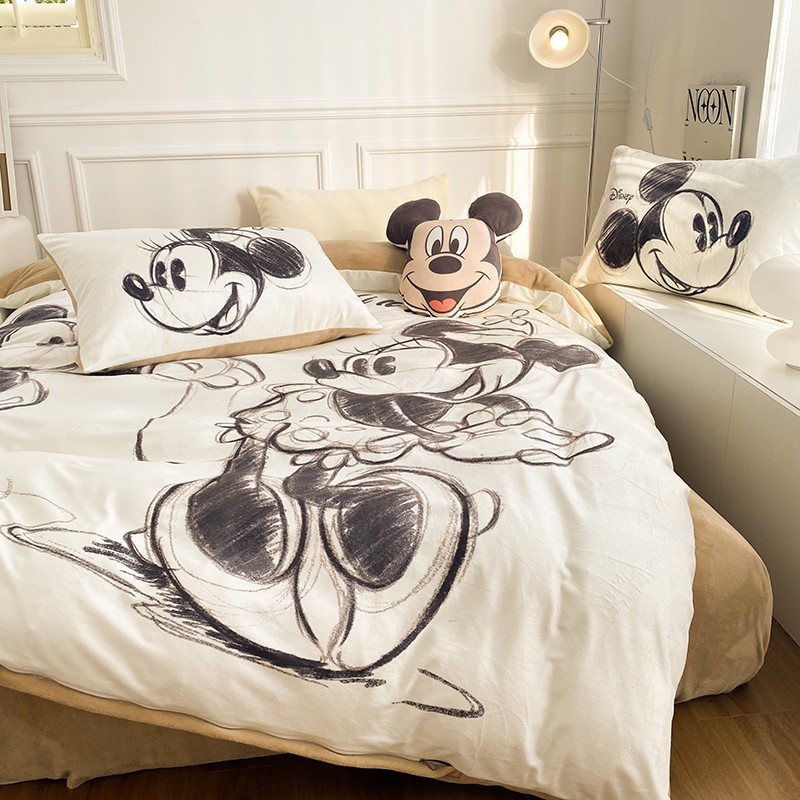 圆岛家纺2022新款迪士尼大版牛奶绒宝宝绒四件套 米奇&米妮