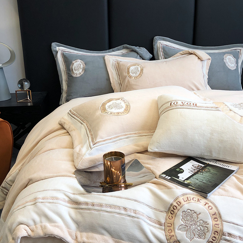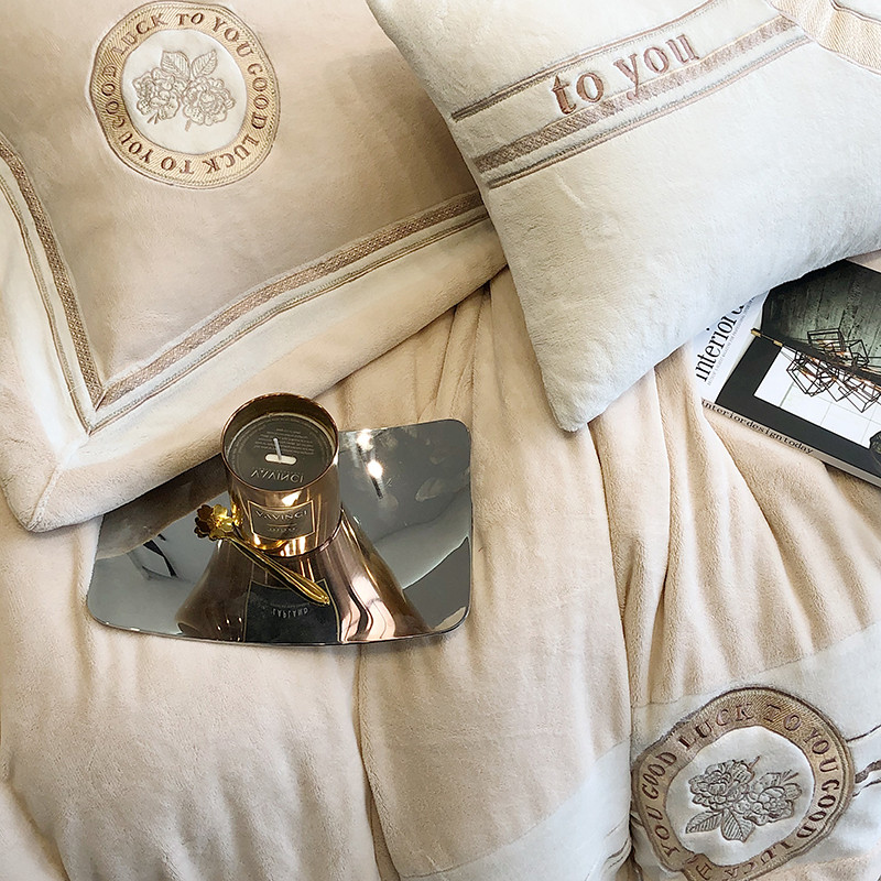 馨蕊家居 2022新款秋冬刺绣轻奢煦暖绒四件套-山茶花 山茶花-香槟
