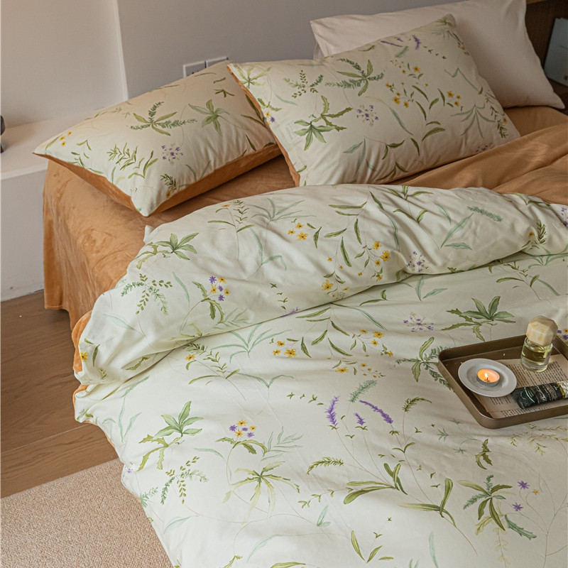 商品名称:棉眠 2022新款AB版棉加绒四件套 绿町棉加绒