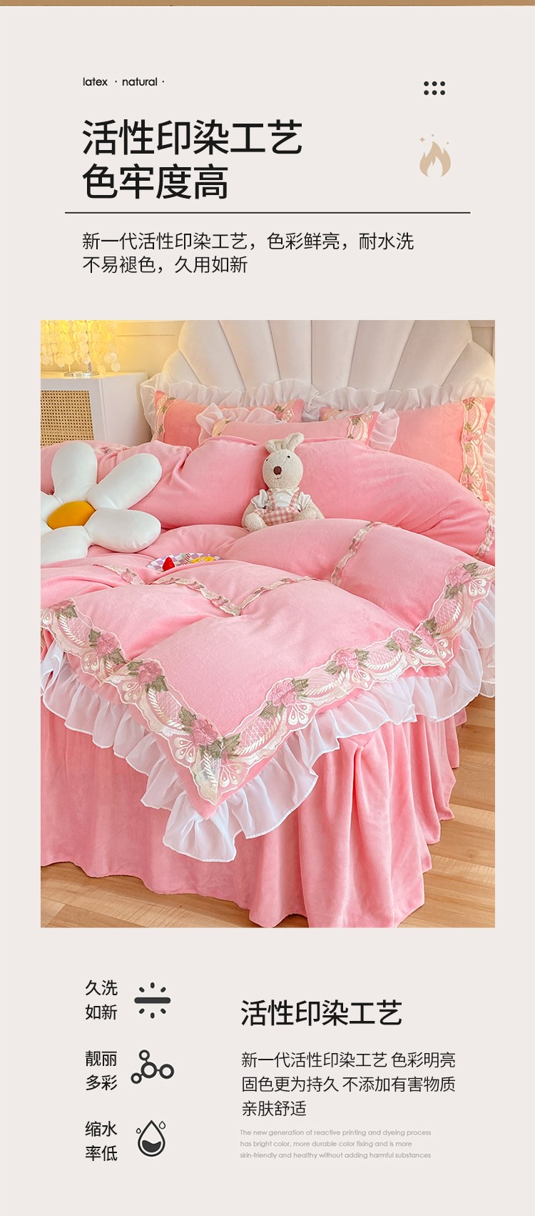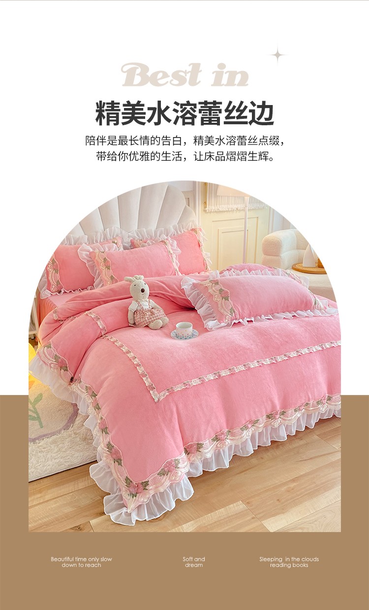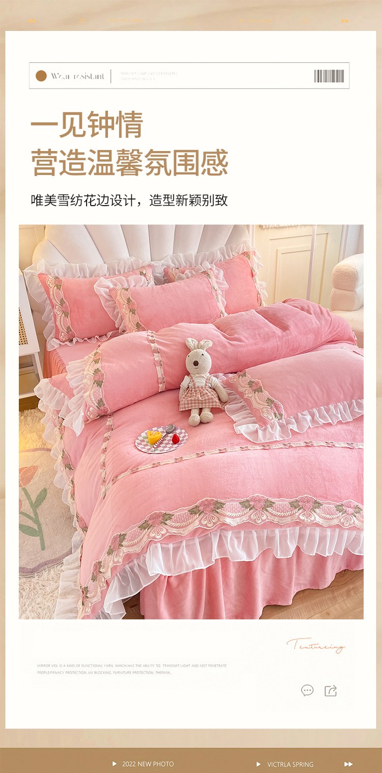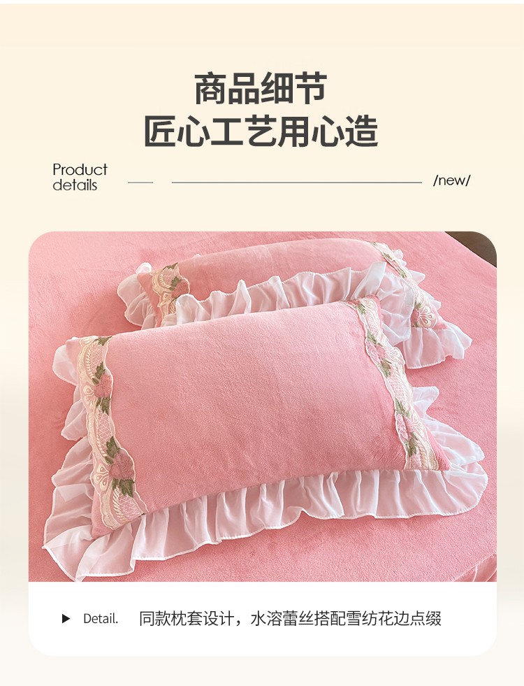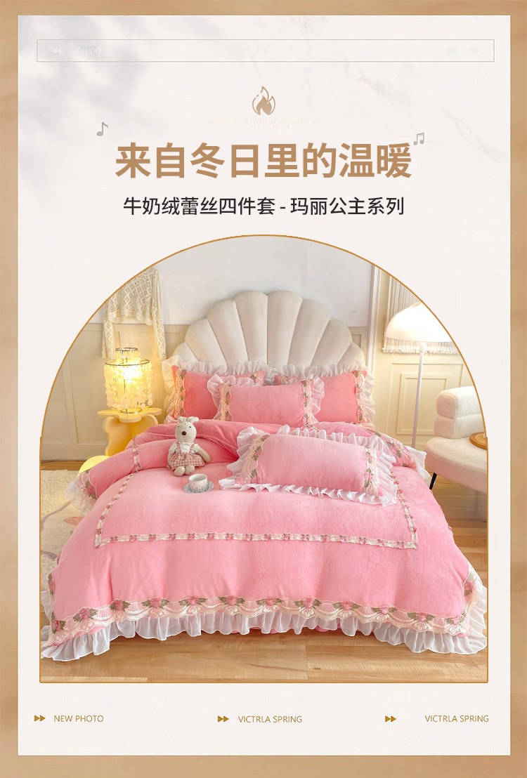 当前位置: 91家纺网 > 商品网购 > 床品套件 > 四件套 > 牛奶绒四件套 > 芭比蔓 新款牛奶绒蕾丝四件套-玛丽公主系列 玛丽公主-海棠玉