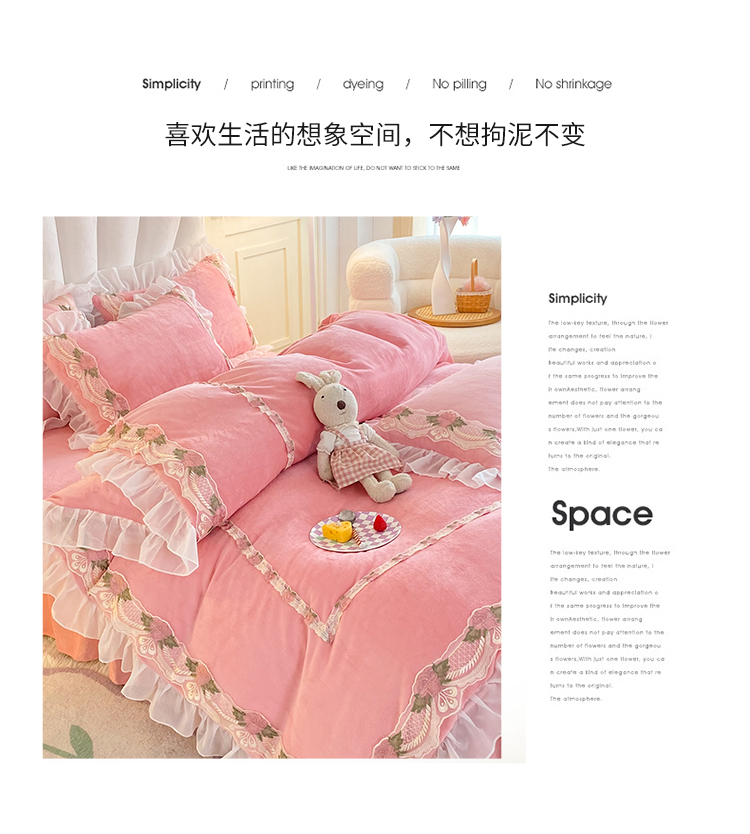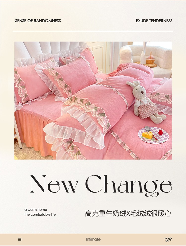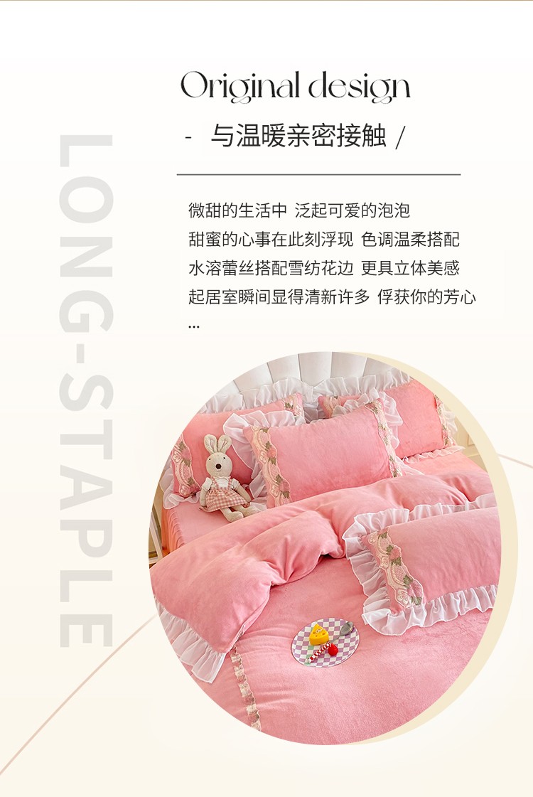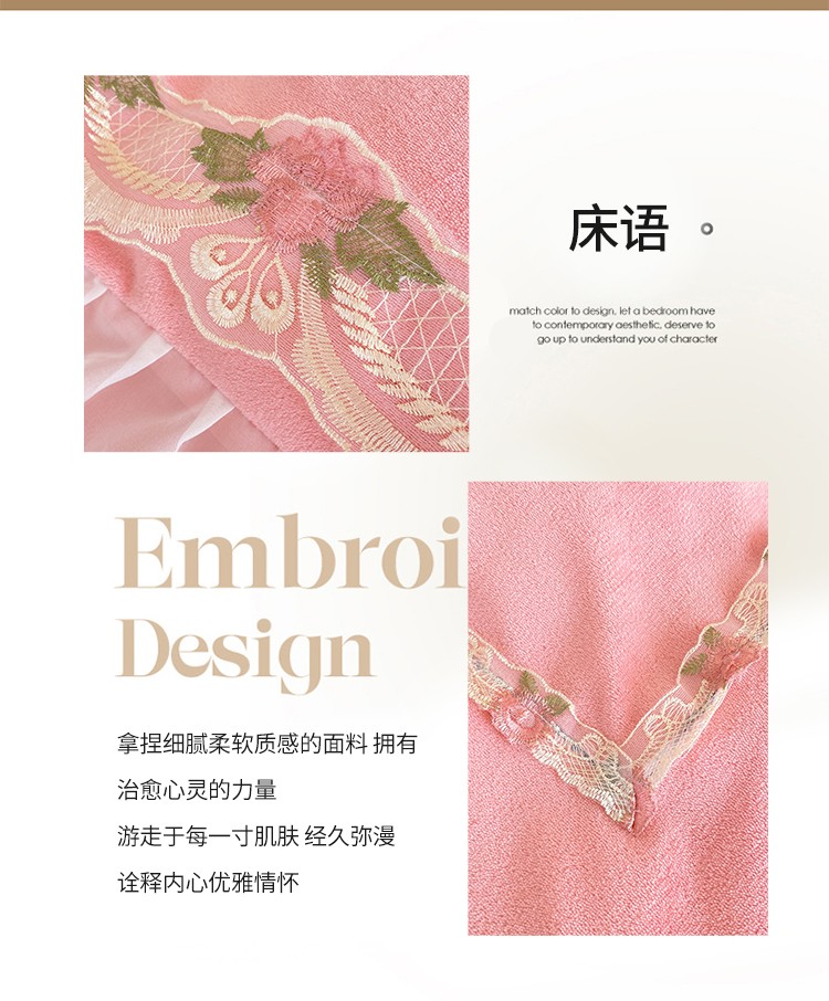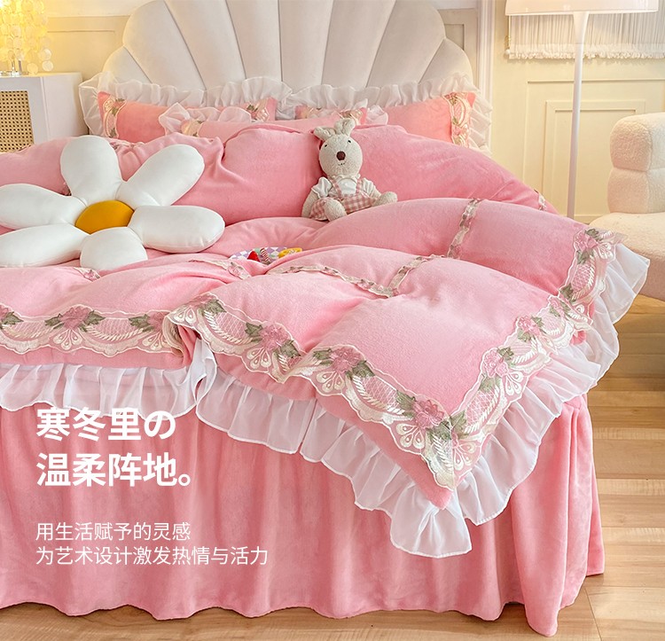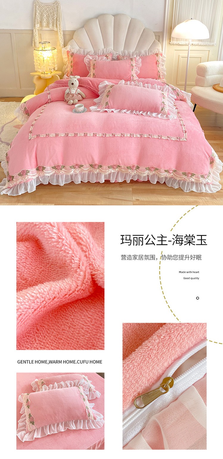 当前位置: 91家纺网 > 商品网购 > 床品套件 > 四件套 > 牛奶绒四件套 > 芭比蔓 新款牛奶绒蕾丝四件套-玛丽公主系列 玛丽公主-海棠玉