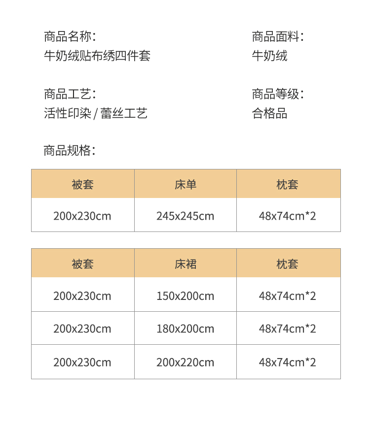2.0m床单款四件套 (床单尺寸200*220cm) | ¥140.00 |
