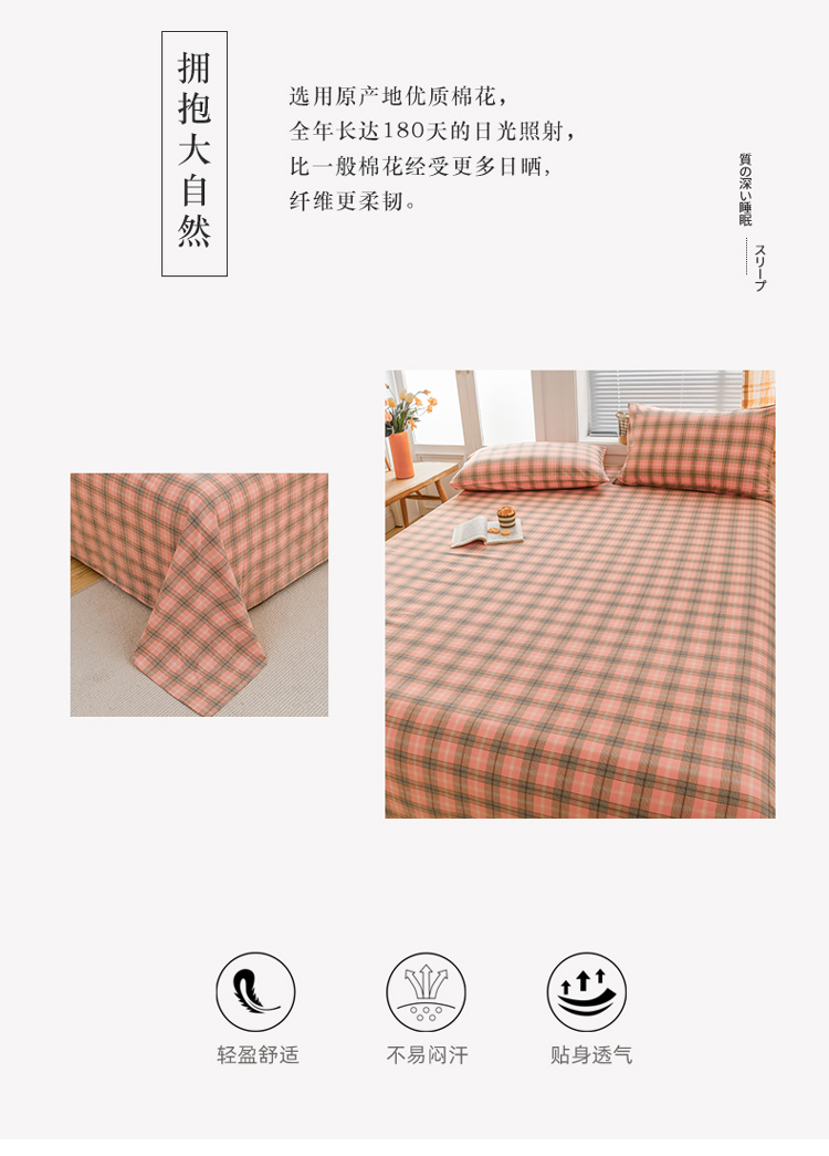 柠萌家居 2022新款A类全棉色织水洗棉单床单 芳华粉