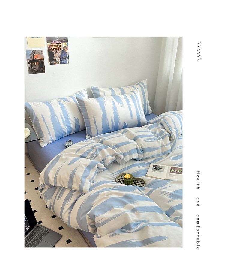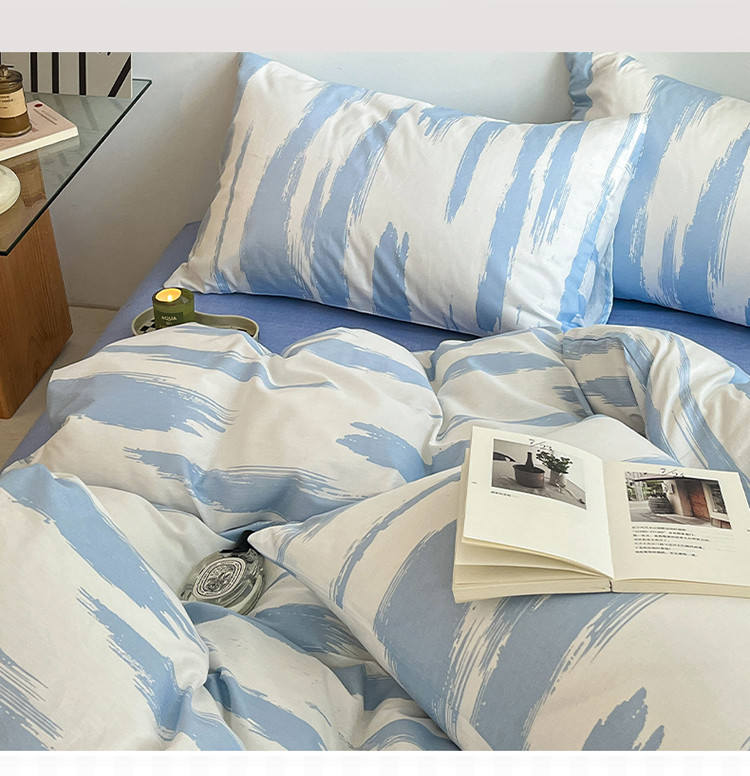 吉象家纺 2022新款全棉北欧风印花系列单被套 文艺蓝