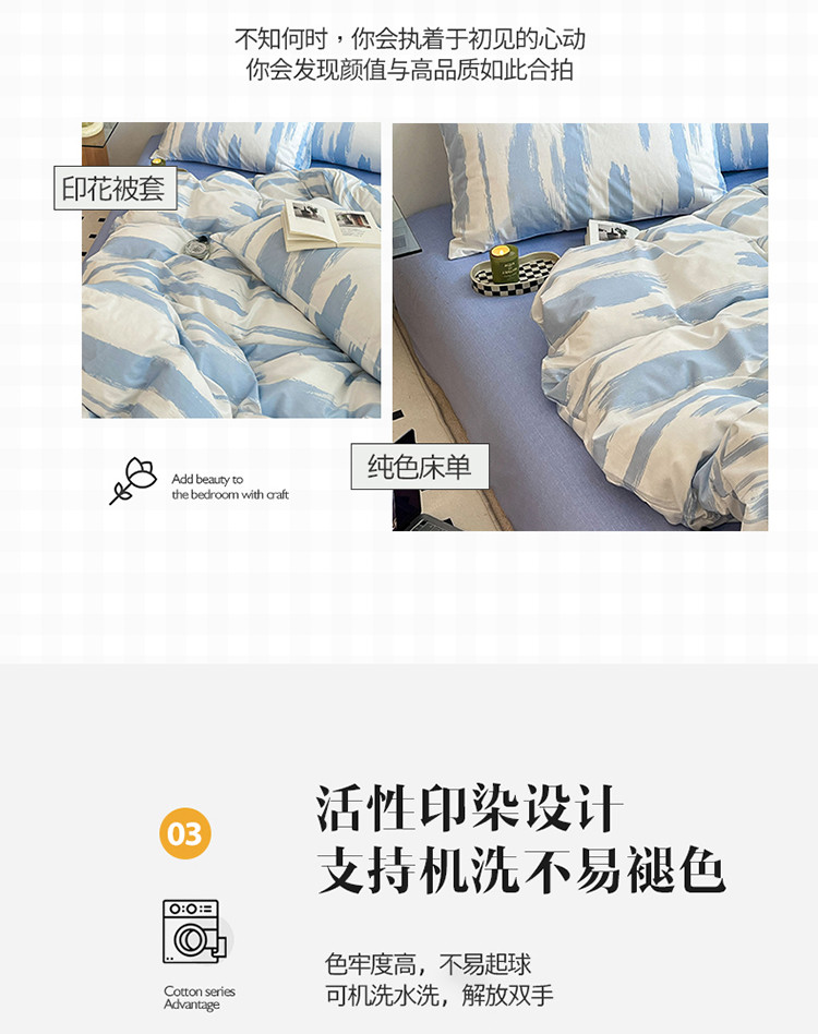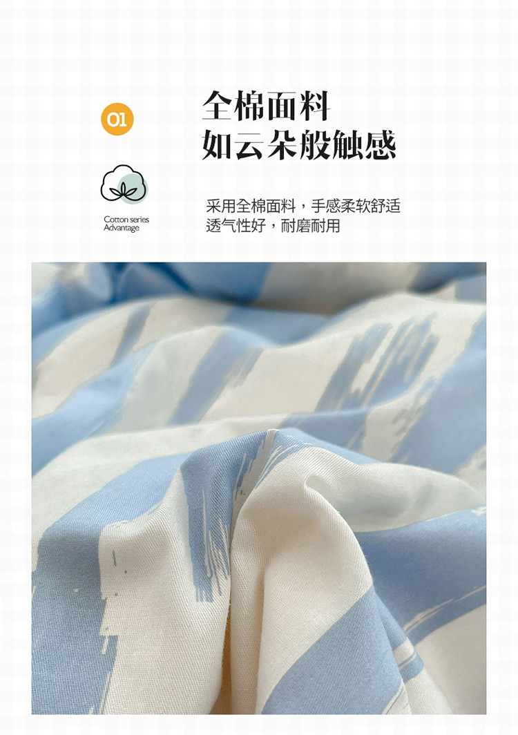 商品名称:吉象家纺 2022新款全棉北欧风印花系列单被套 文艺蓝