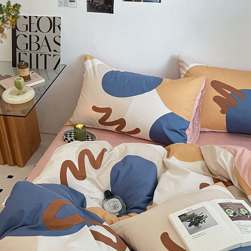 (总)吉象 2022新款全棉活性印花四件套-北欧风系列,马里奥,悉尼-豆沙,悉尼-绿