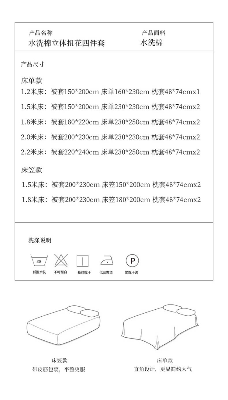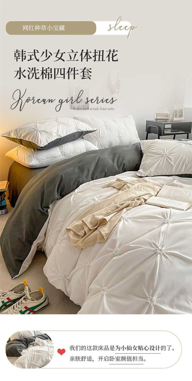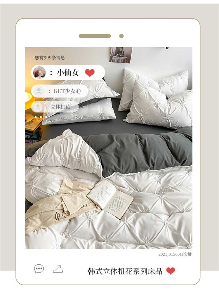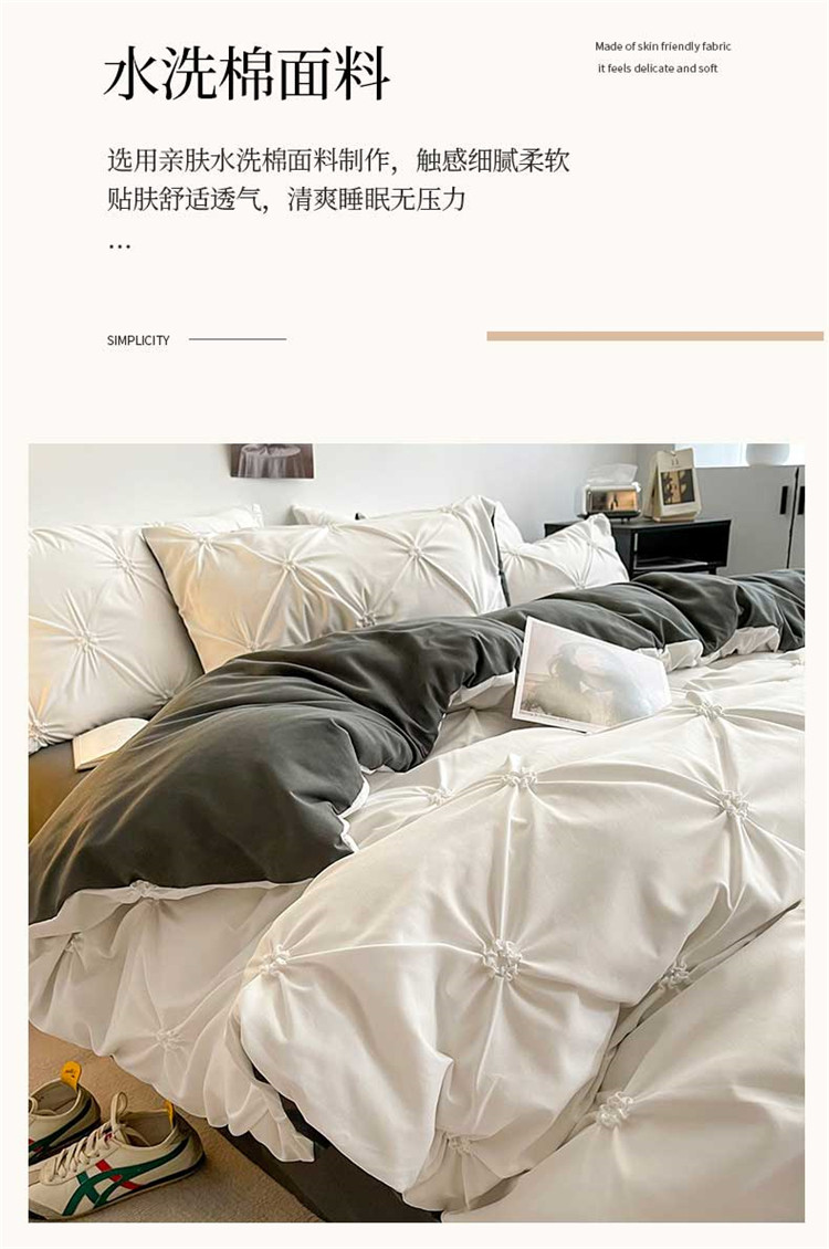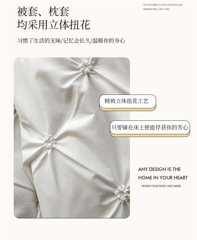 当前位置: 91家纺网 > 商品网购 > 床品套件 > 四件套 > 普通磨毛四件套 > (总)千希家纺 2023新款工艺揪花轻奢水洗棉磨毛四件套