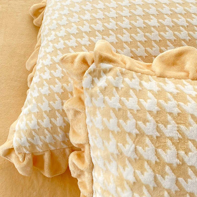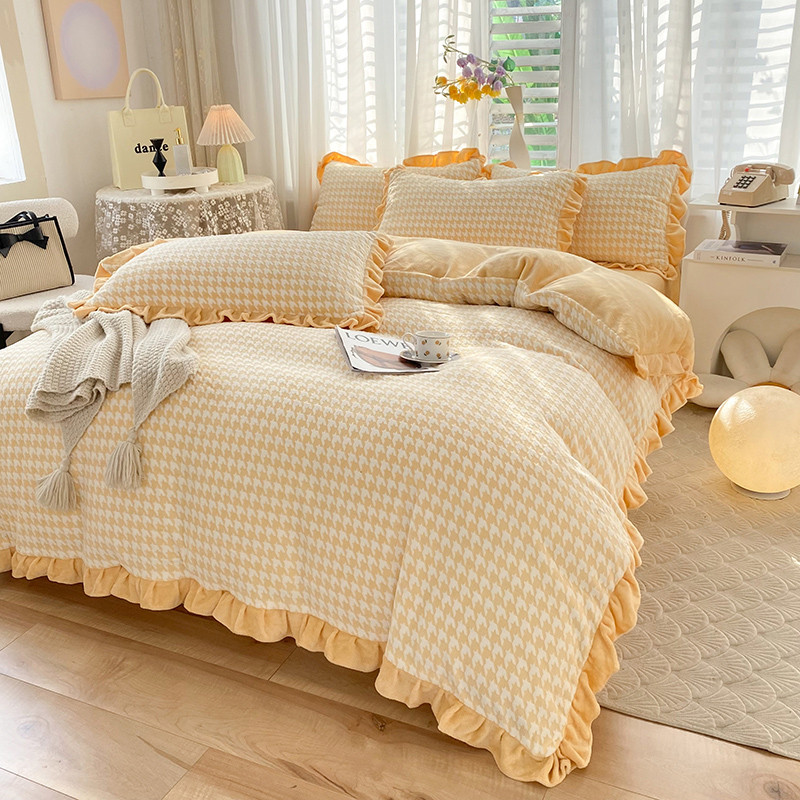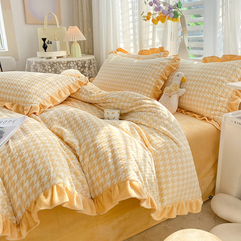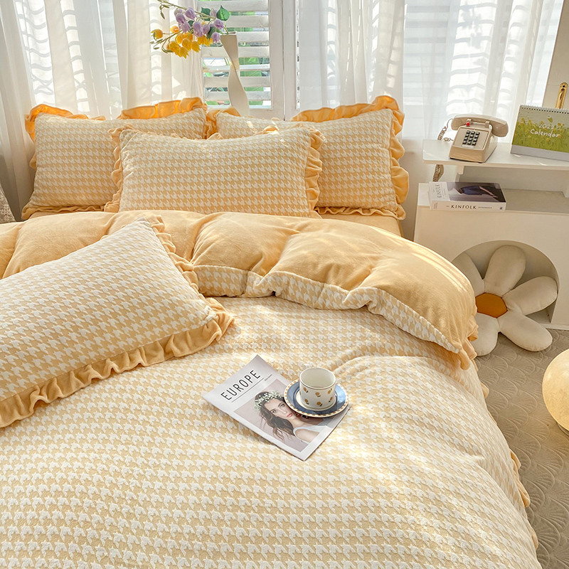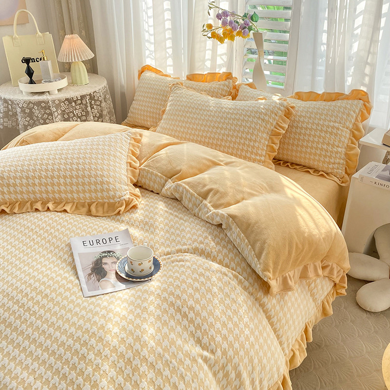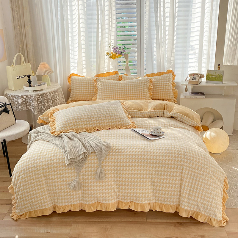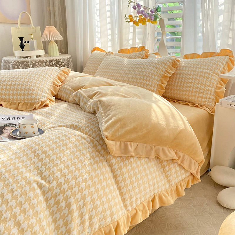 当前位置: 91家纺网 > 商品网购 > 床品套件 > 四件套 > 牛奶绒四件套 > 小主驾到 2023秋冬新款千鸟格牛奶绒花边四件套 千鸟格-黄花边款