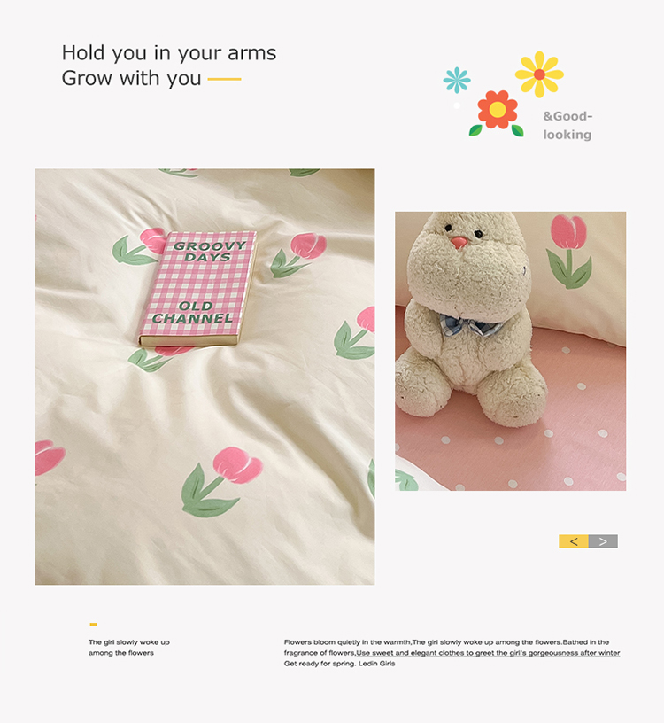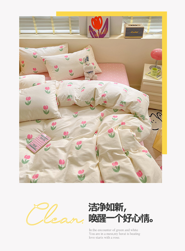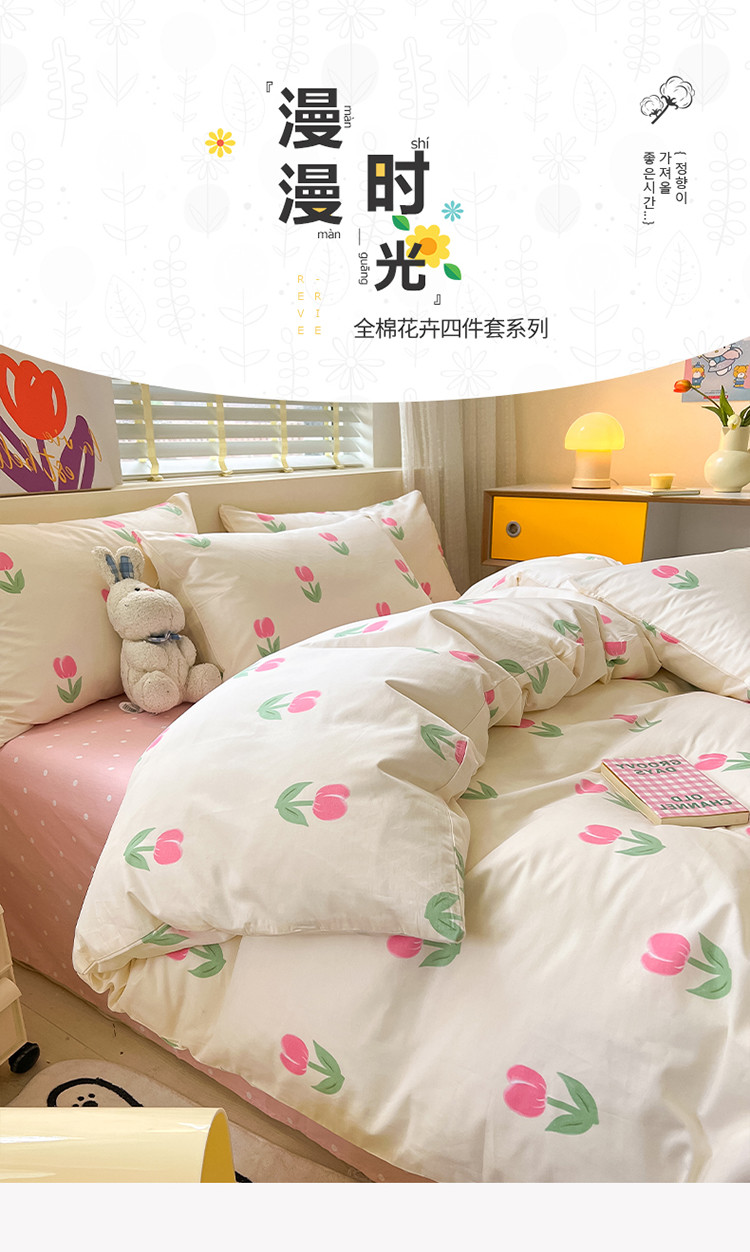 商品名称:小懒猪 2023新款春夏全棉小清新系列四件套 粉黛