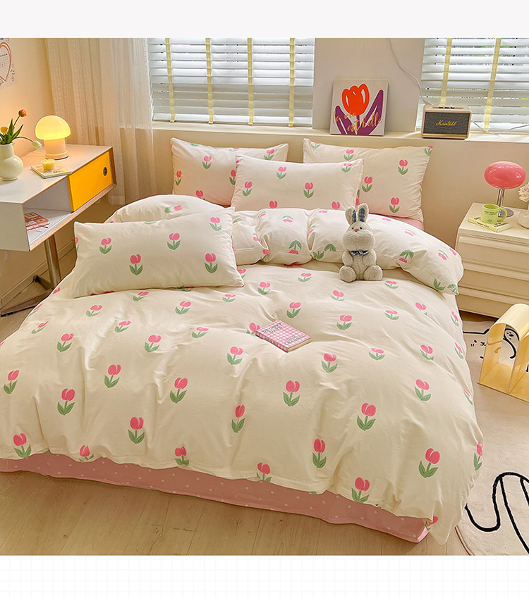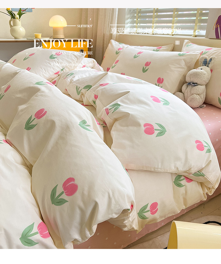 小懒猪 2023新款春夏全棉小清新系列四件套 粉黛