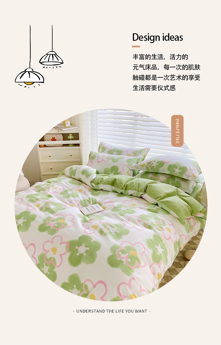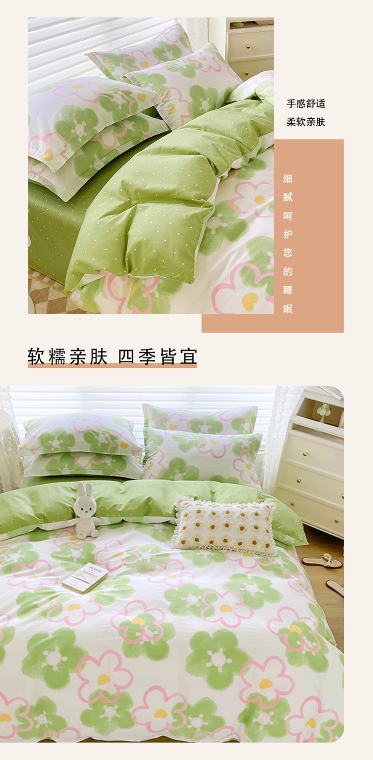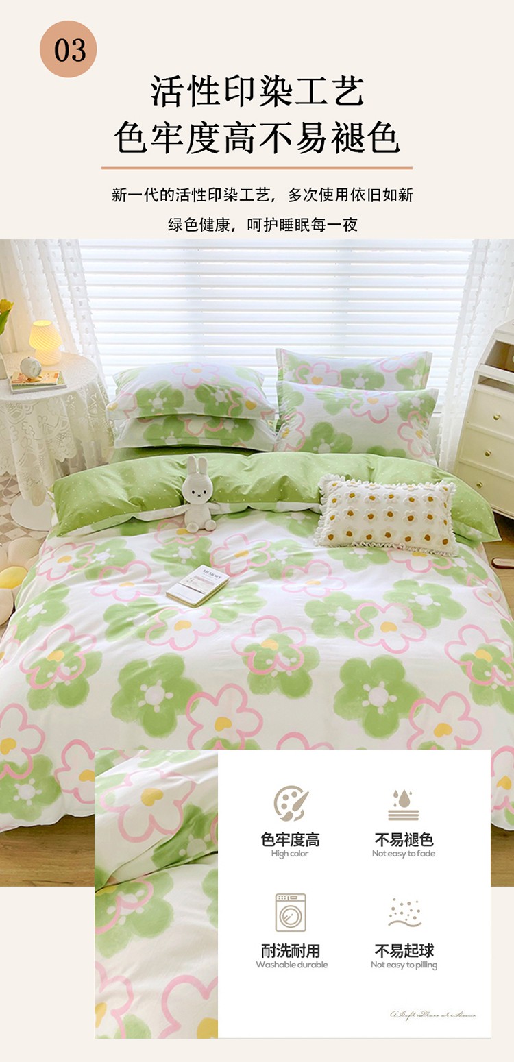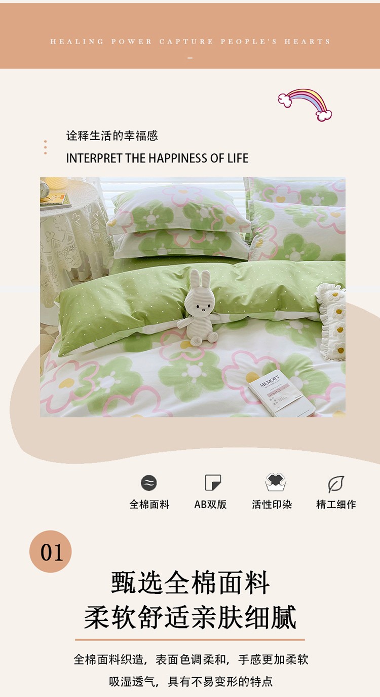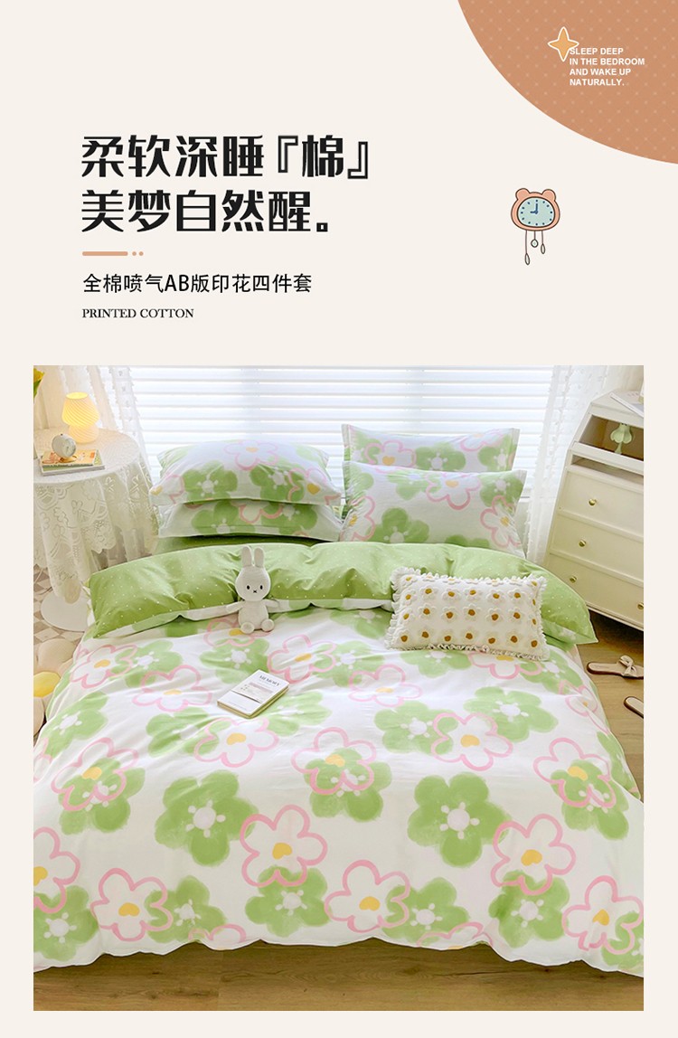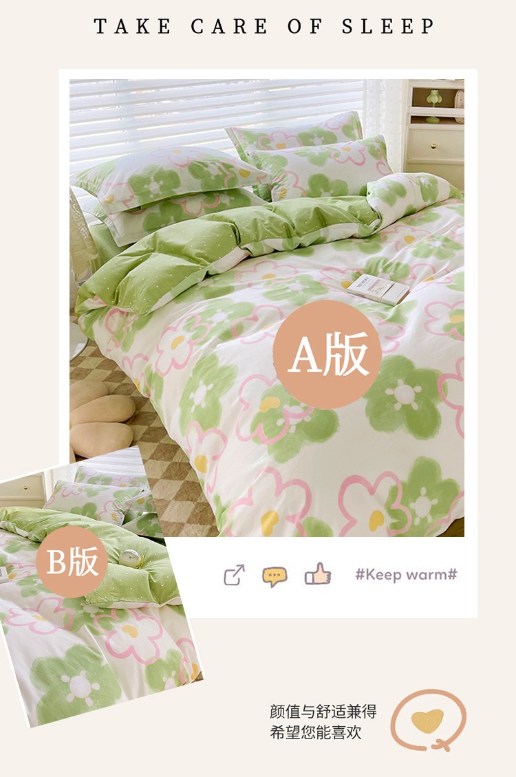 卡普二店 2024新款爆款加厚卡通小清新全棉纯棉学生宿舍三件套床笠隔天可拿 花汀叶妤,花汀叶妤
