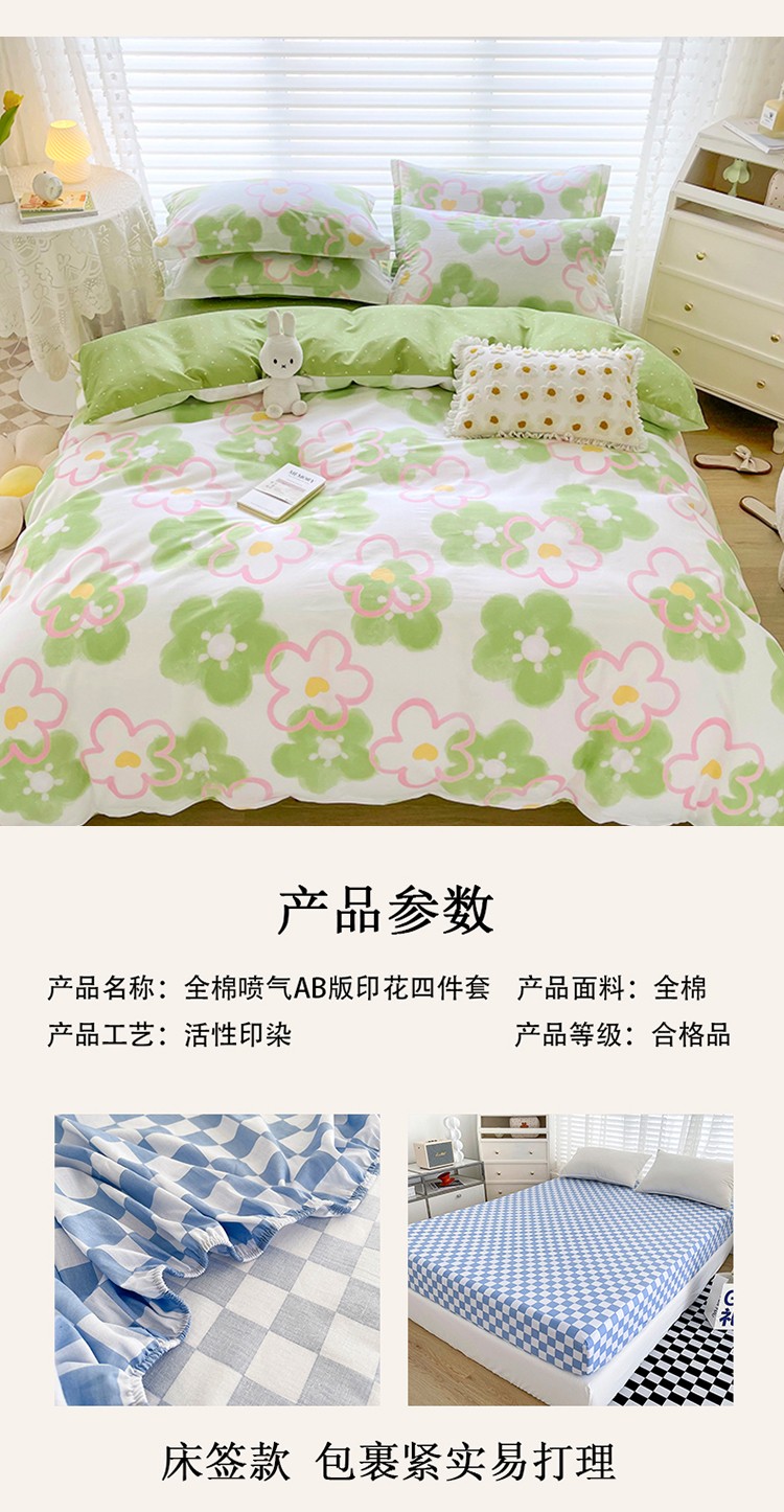 商品名称:总卡普纯棉全棉四件套13070喷气床单款床笠款三件套
