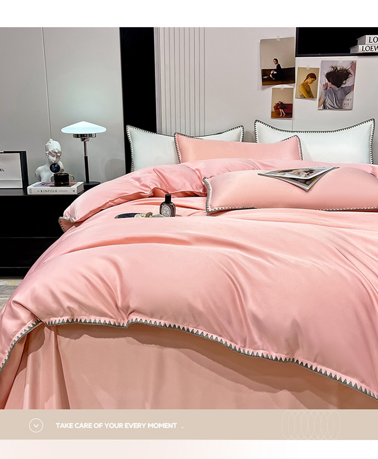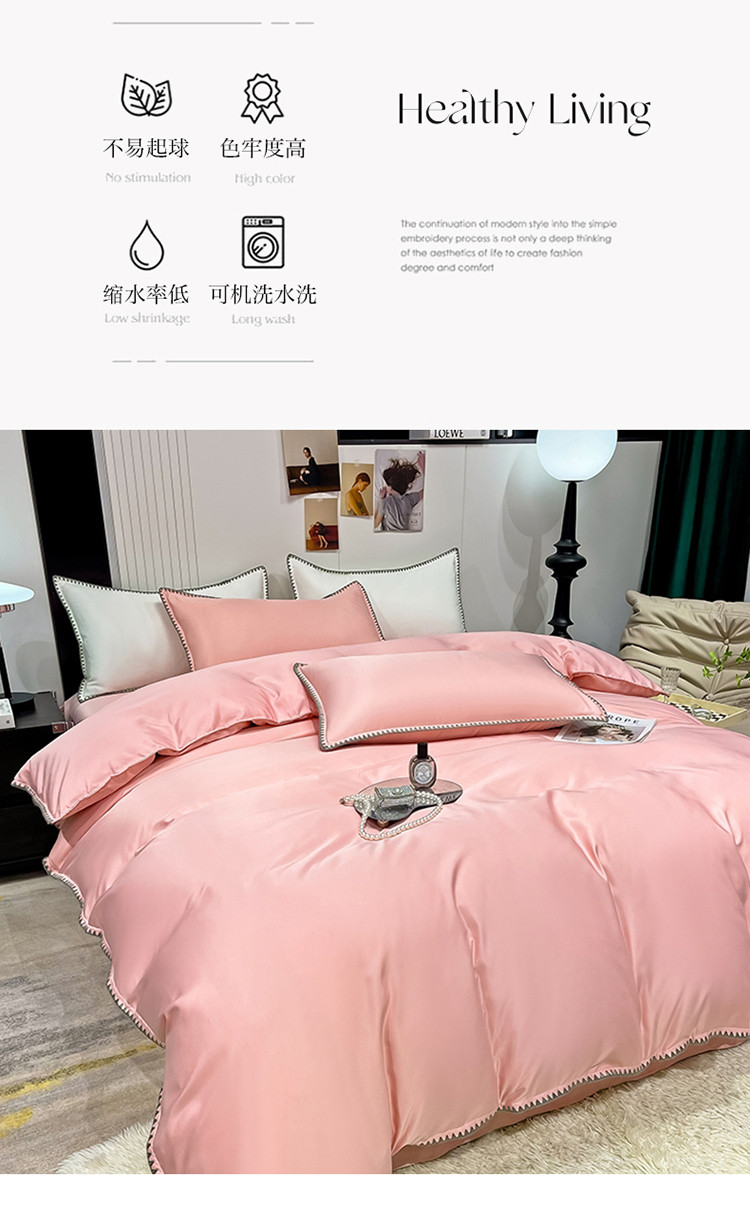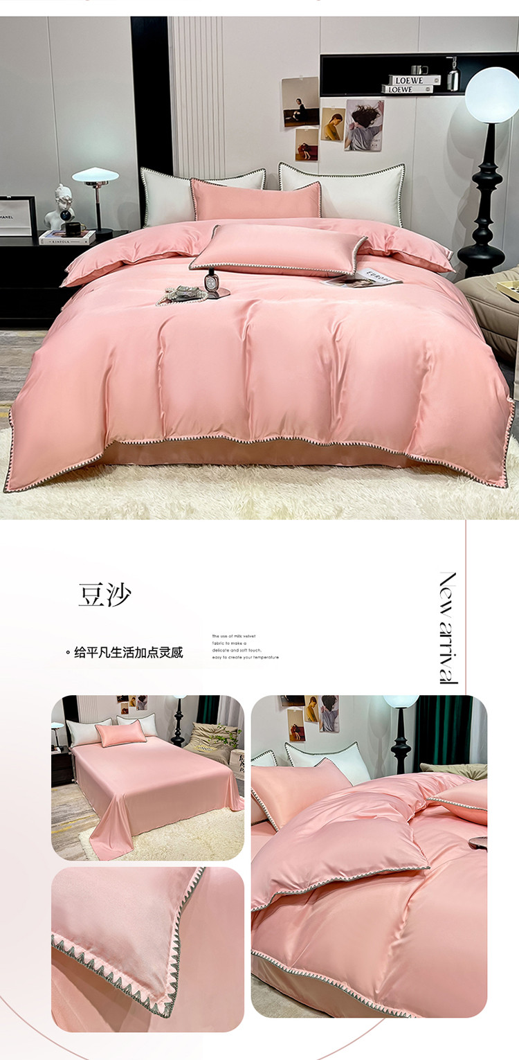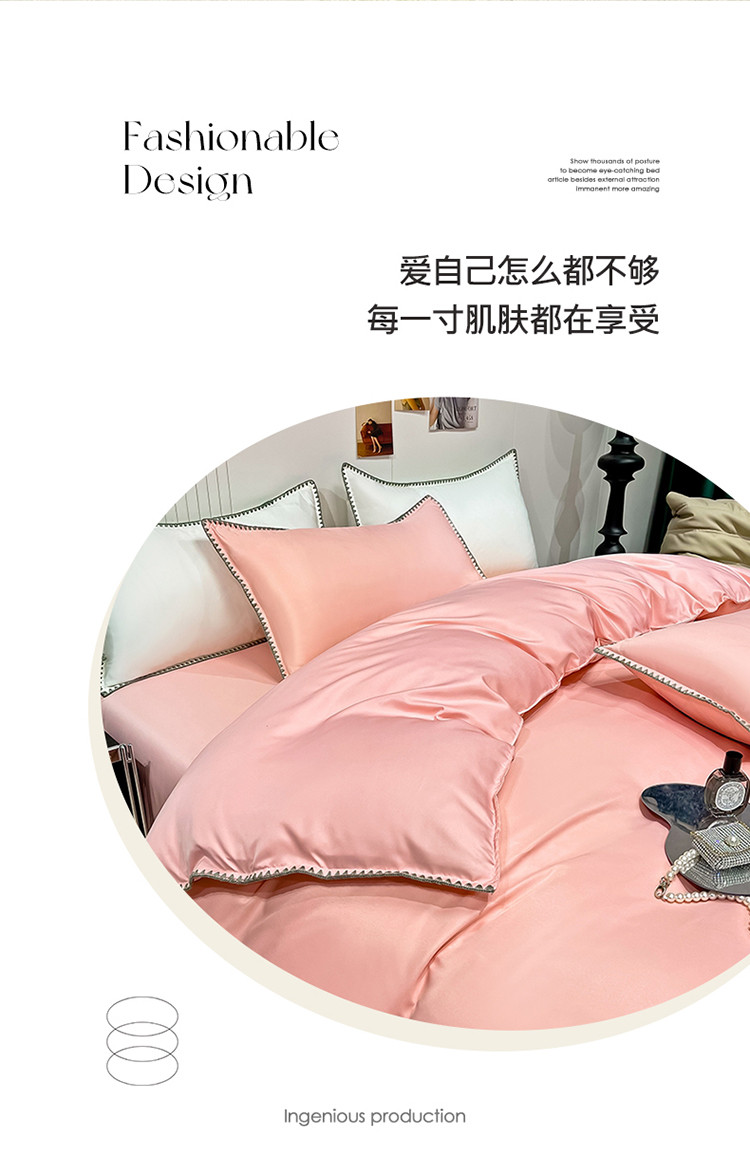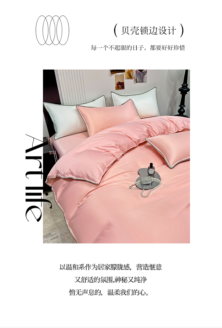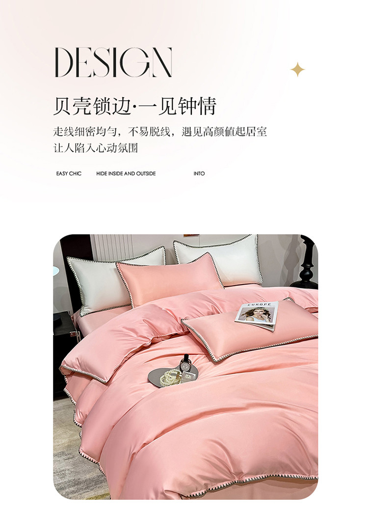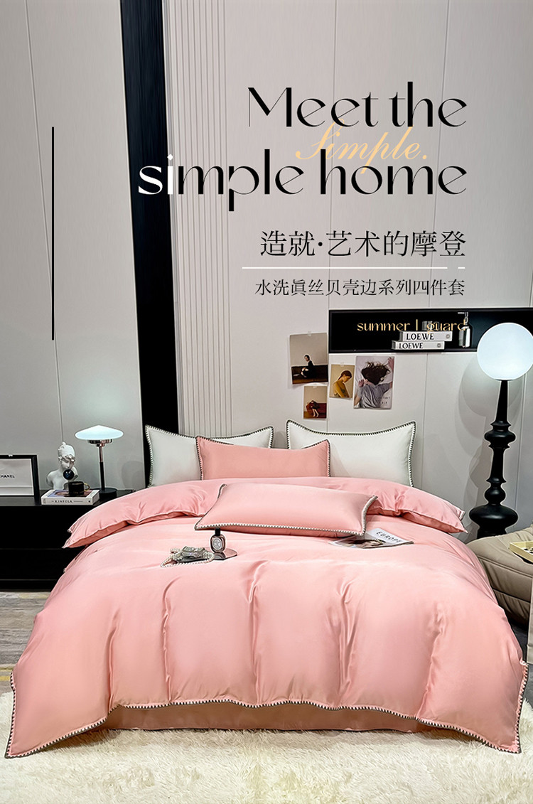 商品名称:艾米家居 2025新款水洗真丝贝壳边系列四件套 豆沙