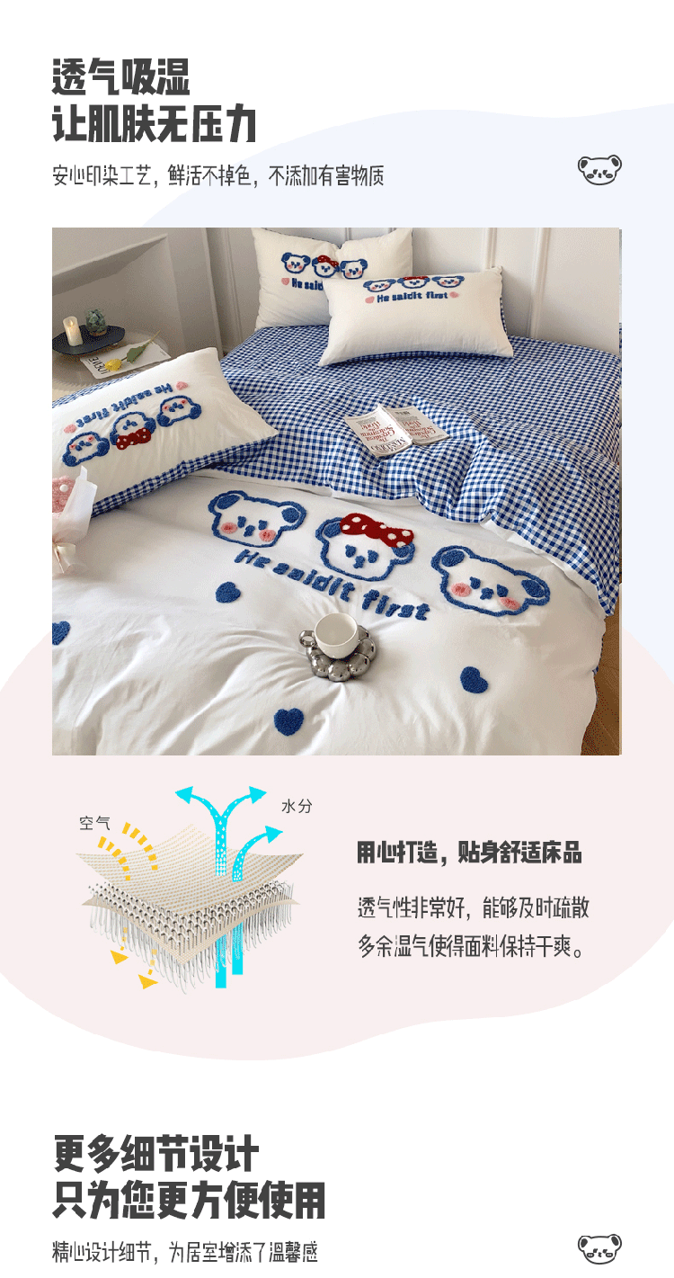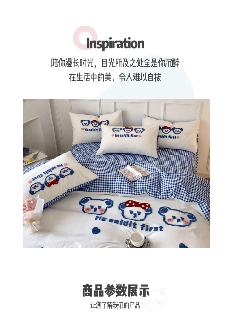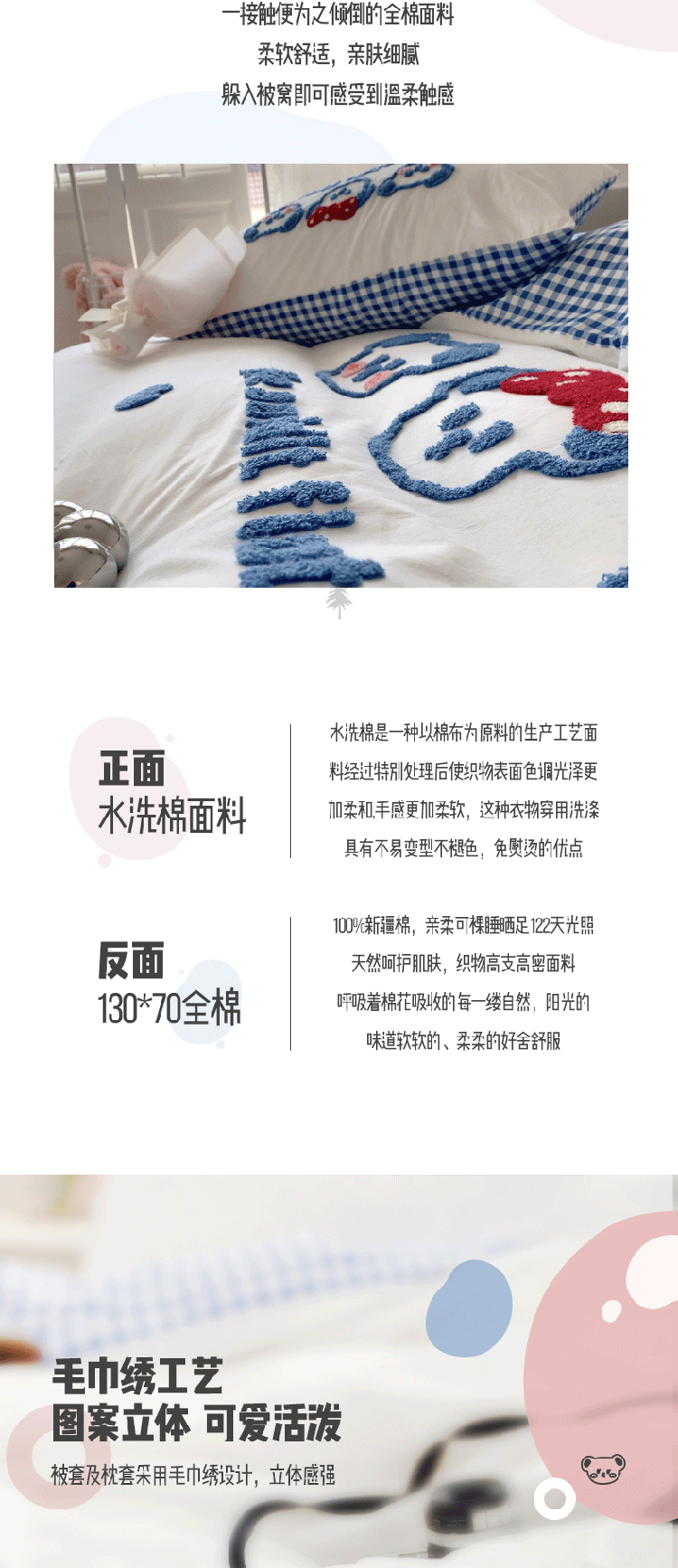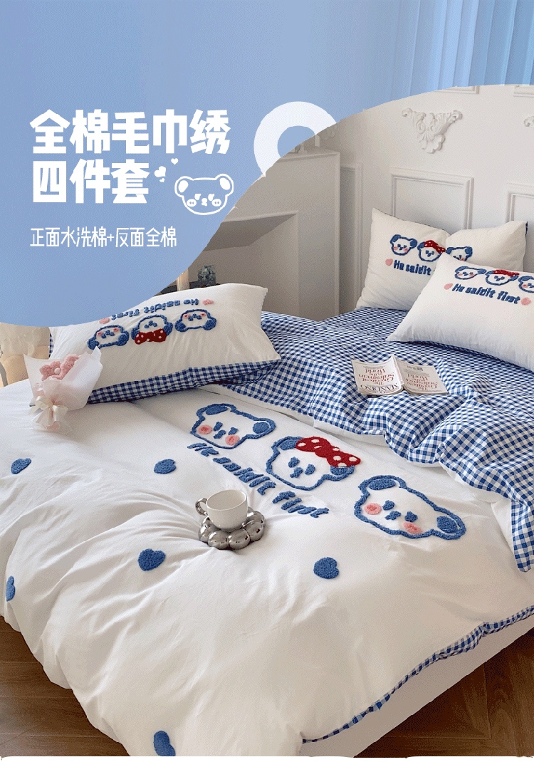当前位置: 91家纺网 > 商品网购 > 床品套件 > 四件套 > 全棉普通四件套 > 三朵 2023新款全棉水洗棉毛巾绣花四件套 三口之家蓝