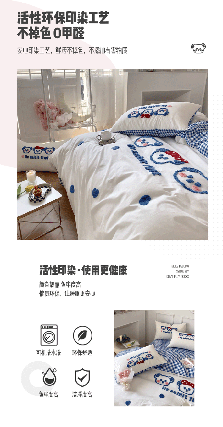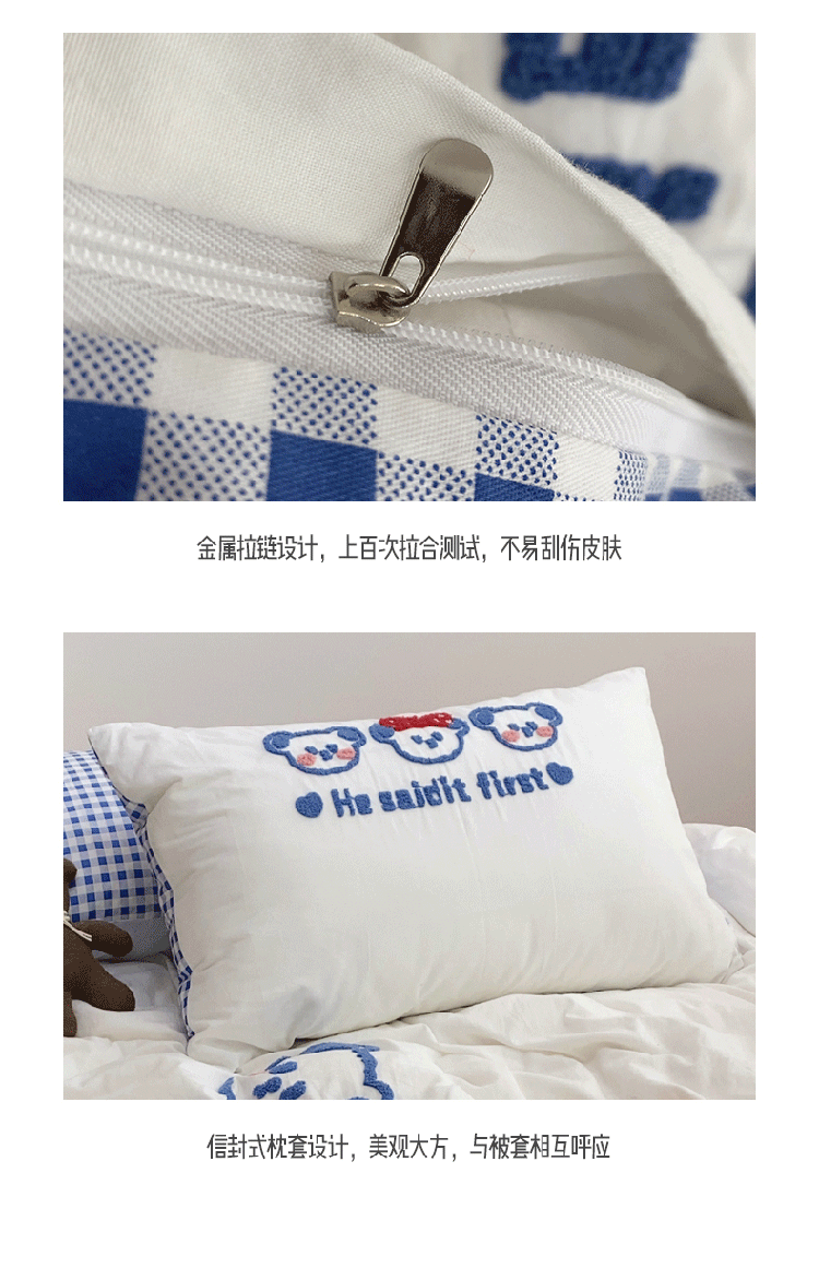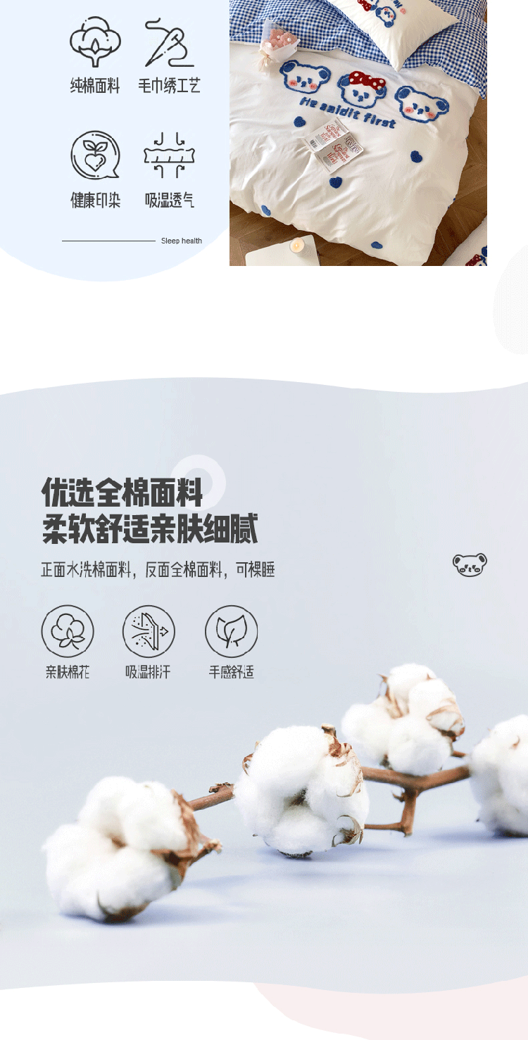 当前位置: 91家纺网 > 商品网购 > 床品套件 > 四件套 > 全棉普通四件套 > 三朵 2023新款全棉水洗棉毛巾绣花四件套 三口之家蓝