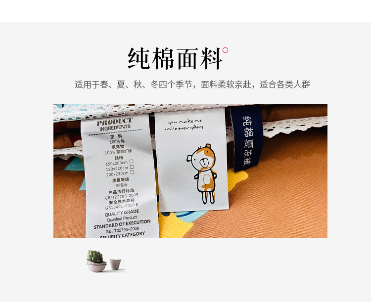 3、通州区市场监督局友情提醒,近期涉及到床上用品不褪色不掉毛不缩水的投诉和以世界知名品牌图案为面料的床品举报较多。请各商家自检自查,对照整改或进行下架处理。
