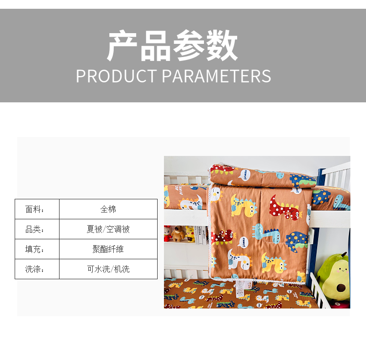 商品名称:小虾米 2023新款卡通系列全棉夏被 恐龙日记咖