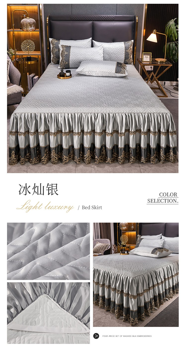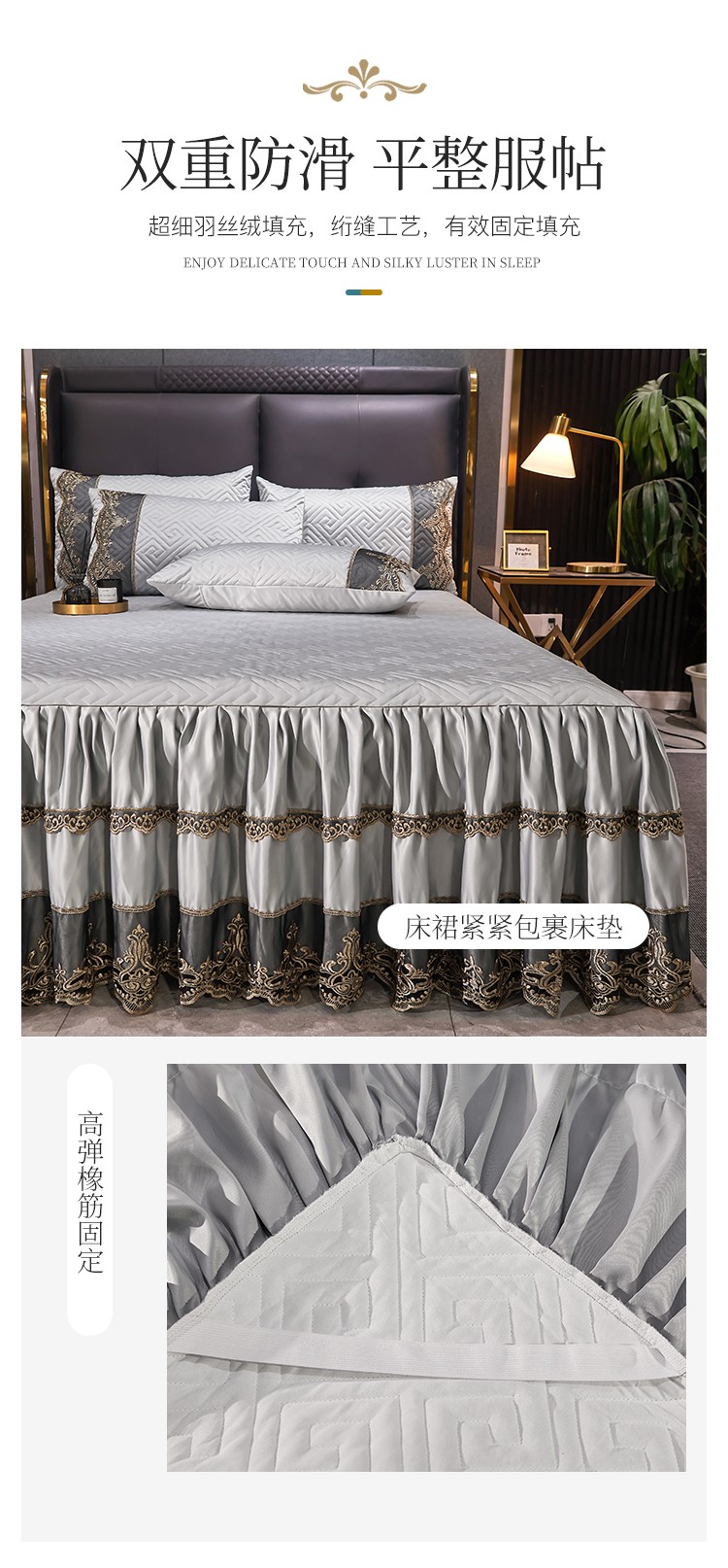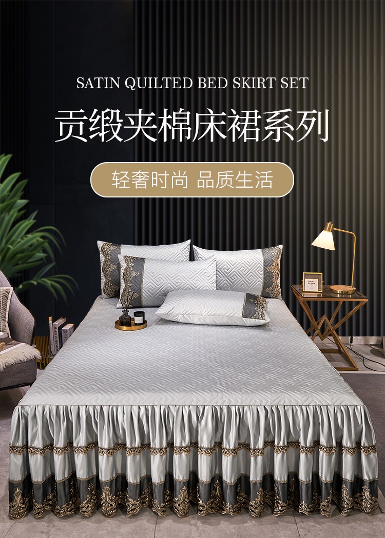 商品名称:罗艺轩 2024新款贡缎夹棉床裙三件套凯撒王朝系列 凯撒王朝-冰灿银