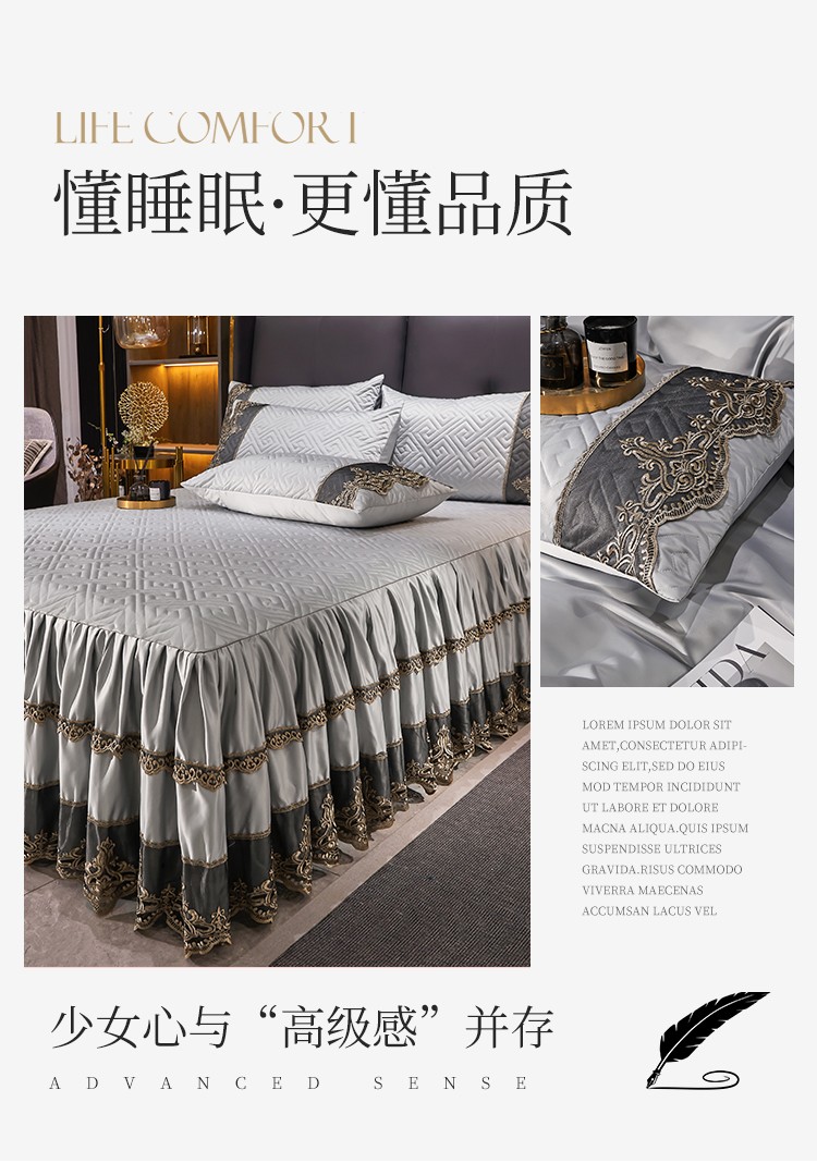 (总)罗艺轩 2024新款色织蕾丝夹棉床裙三件套-皇家贵族,皇家贵族-宝石蓝,皇家贵族-黛绿色,皇家贵族-魅力紫,皇家贵族-奶茶色,皇家贵族-珊瑚红,皇家贵族-石青色,皇家贵族-香妃粉,皇家贵族-烟熏灰