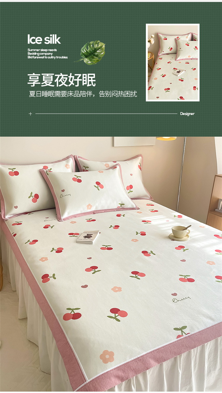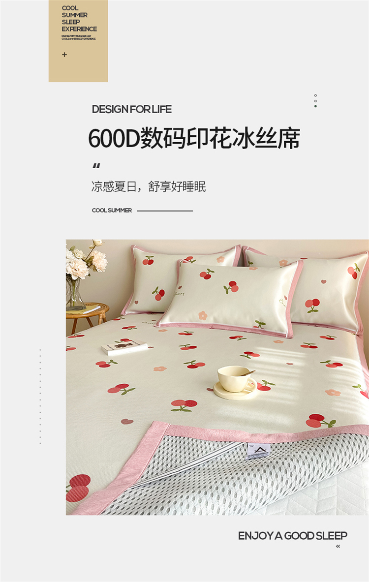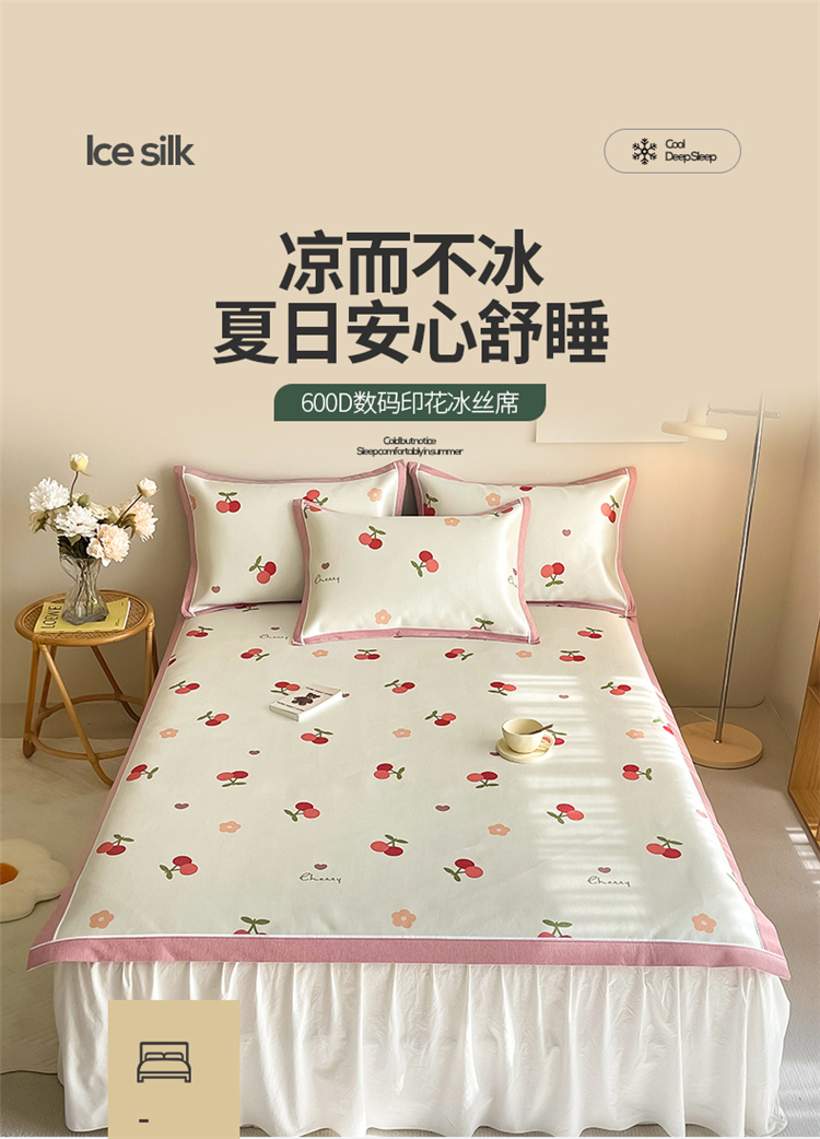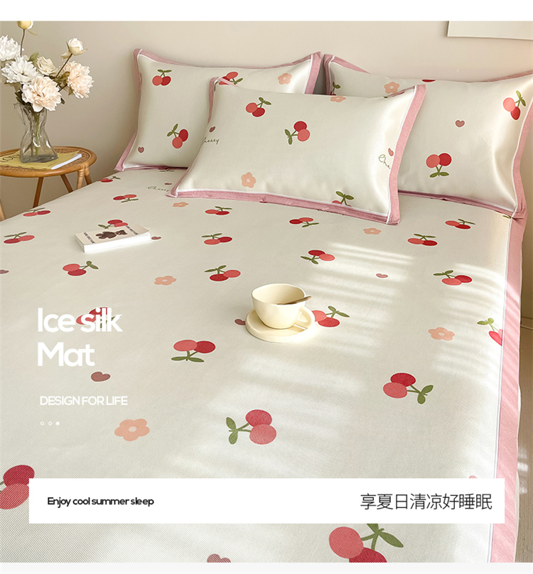 懒猫 2024新款600D数码印花冰丝席 小樱桃