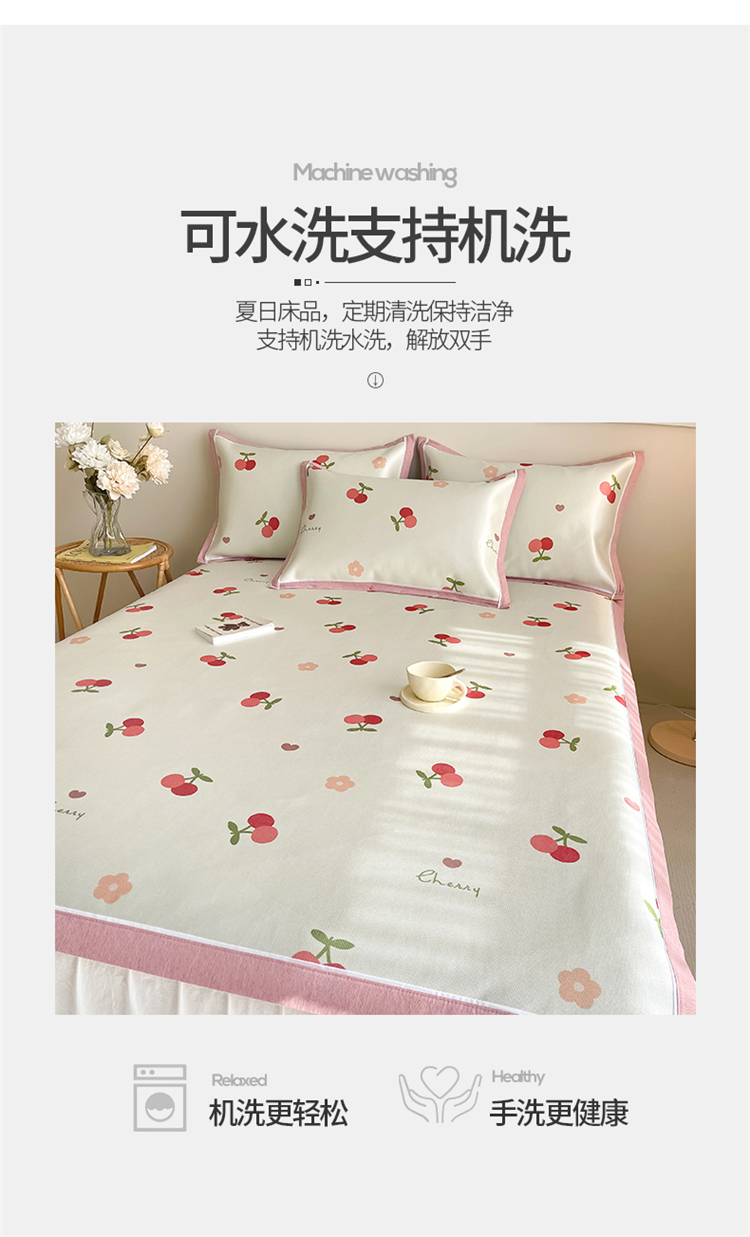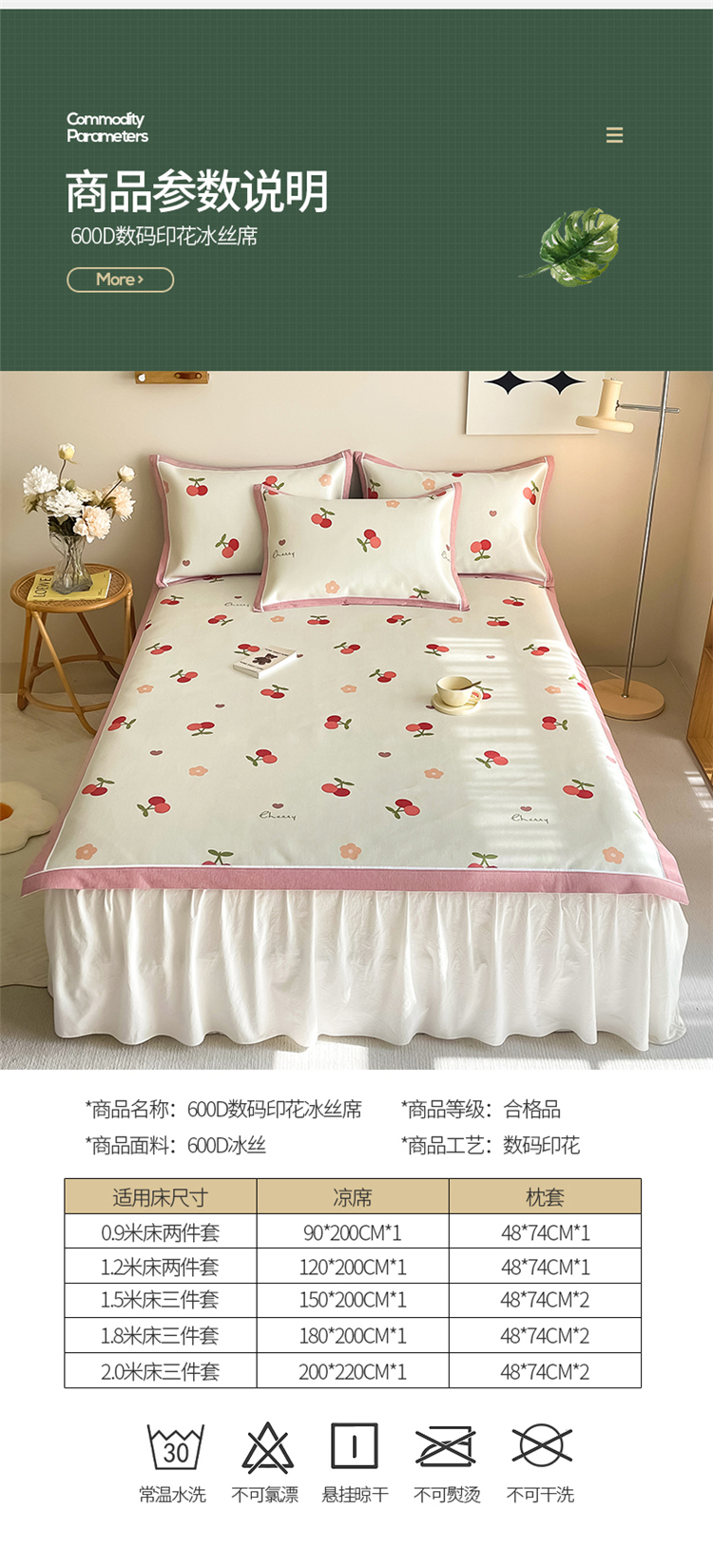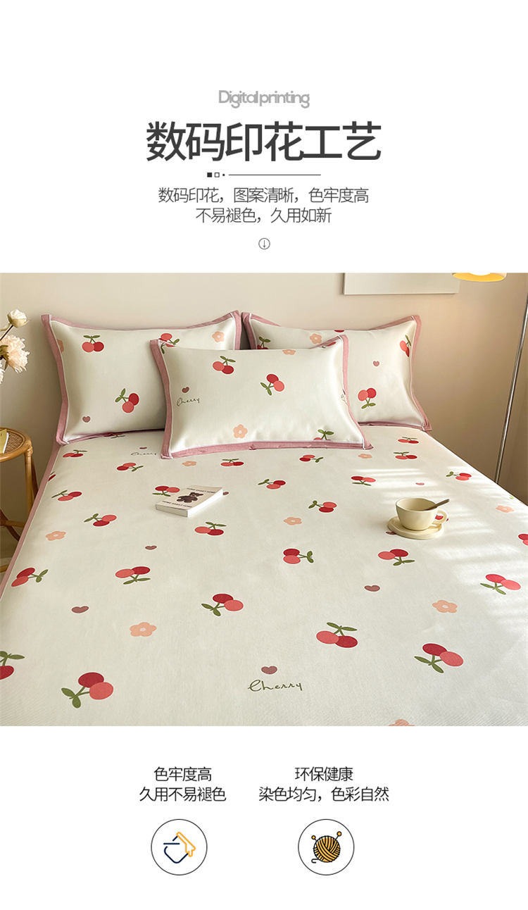 商品名称:懒猫 2024新款600D数码印花冰丝席 小樱桃
