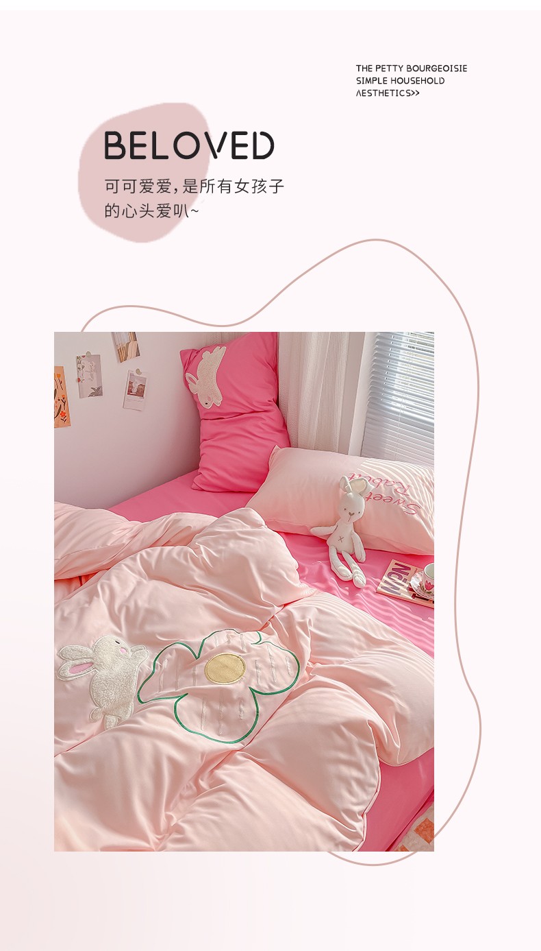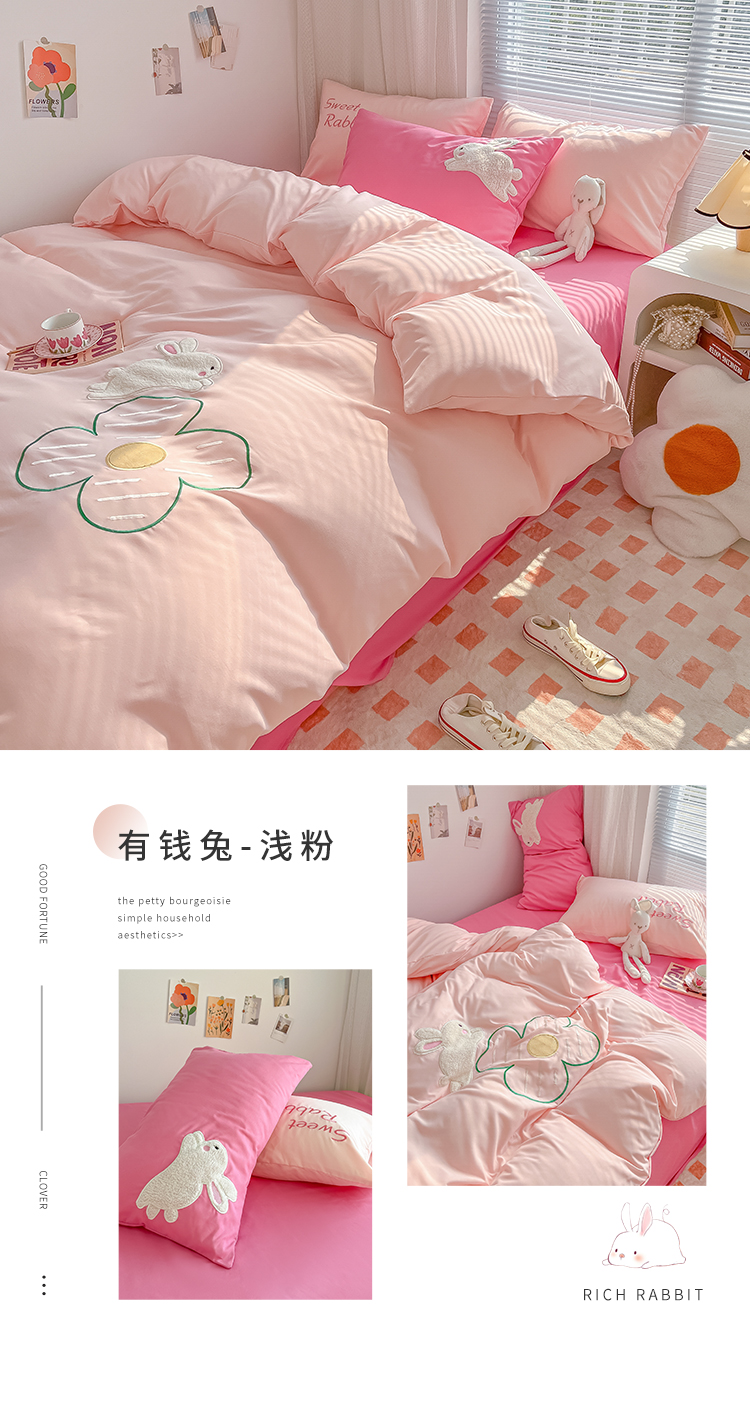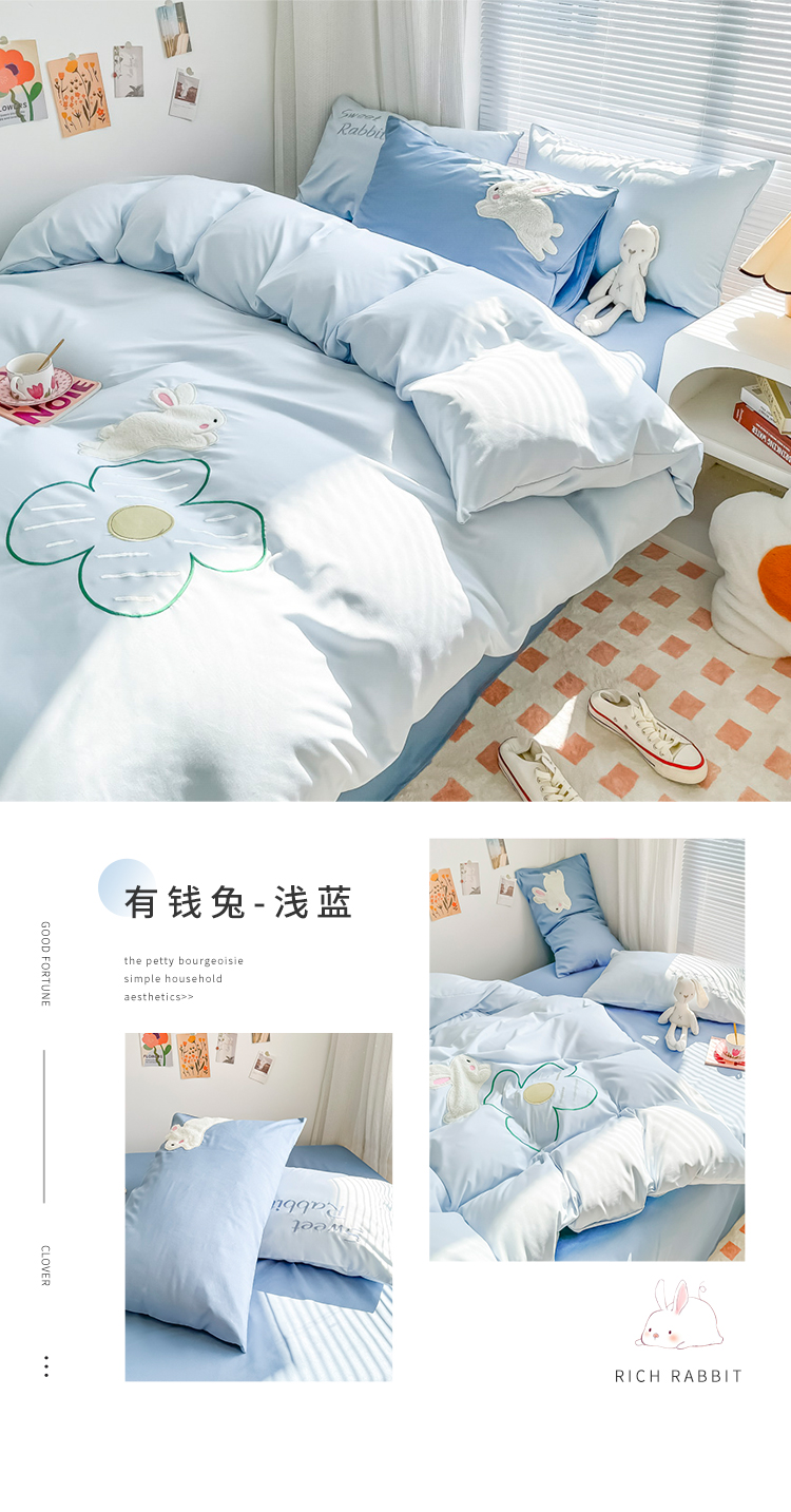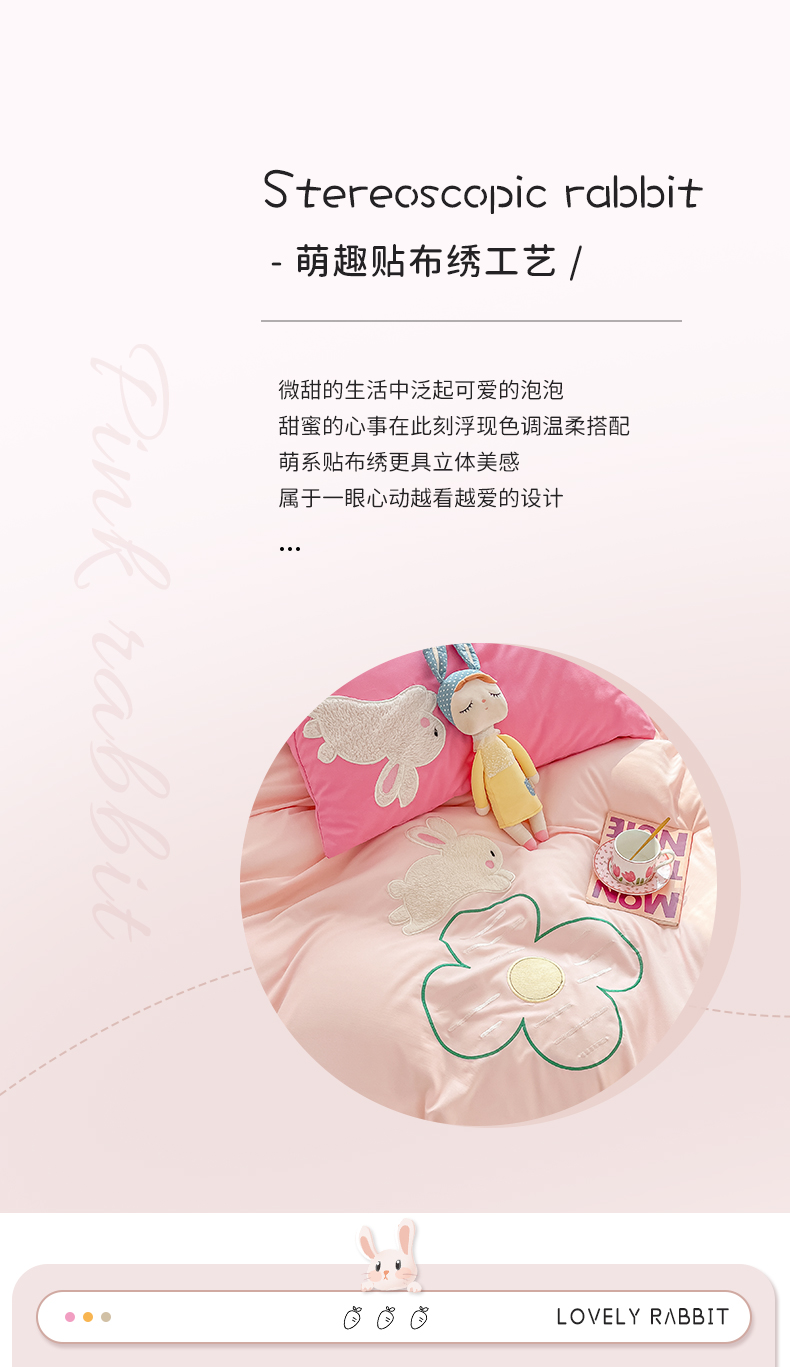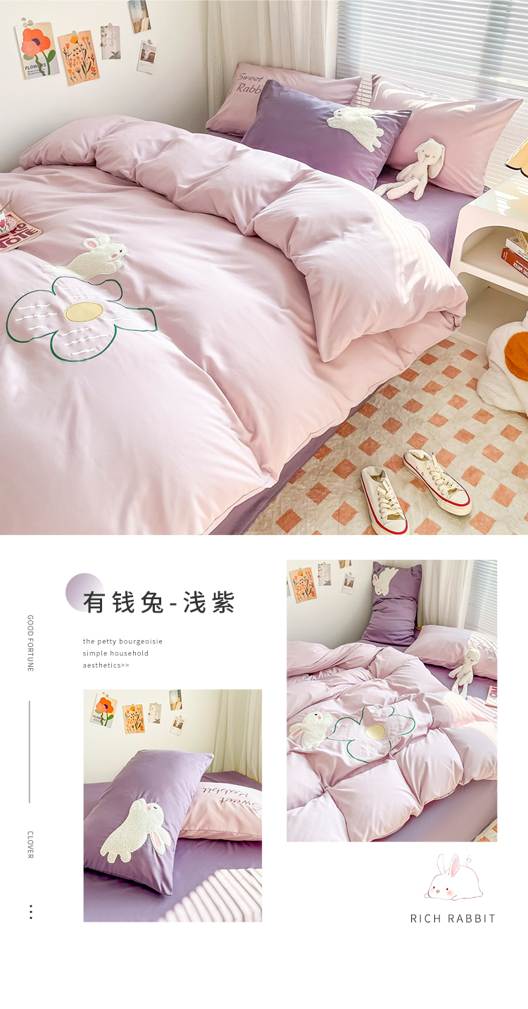 (总)尤米 2023新款亲肤萌趣贴布绣工艺有钱兔撞色四件套