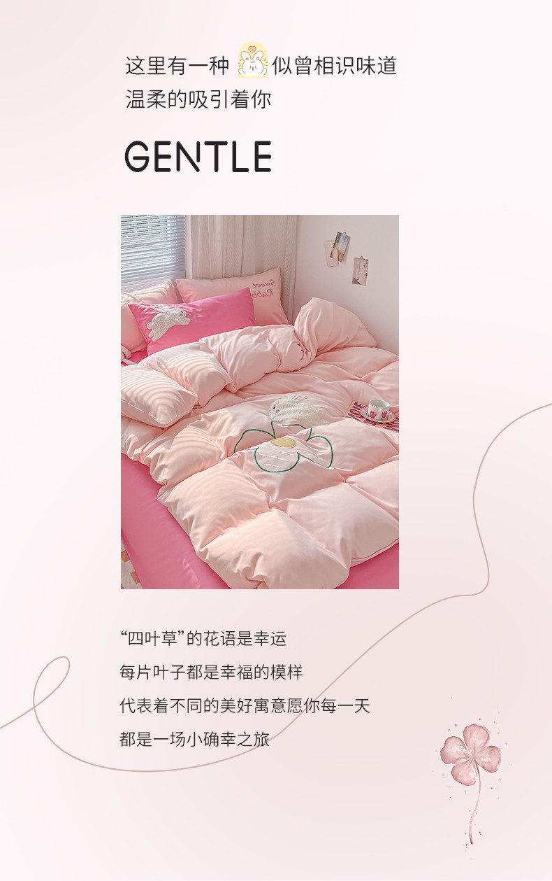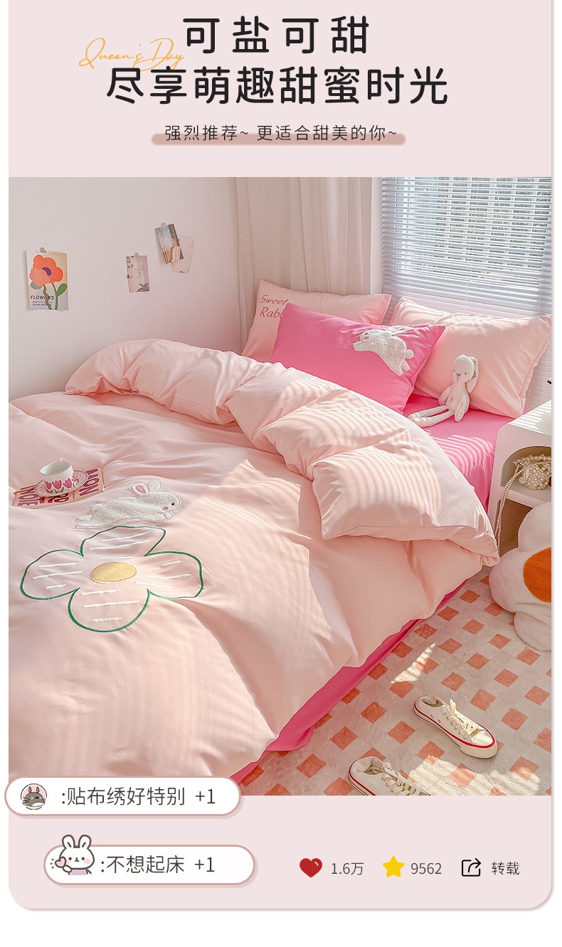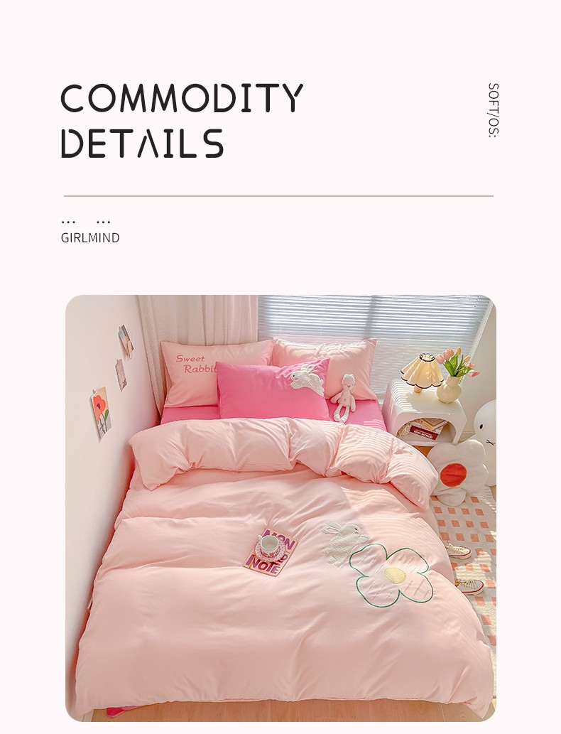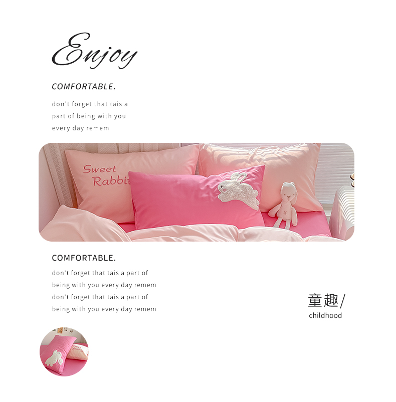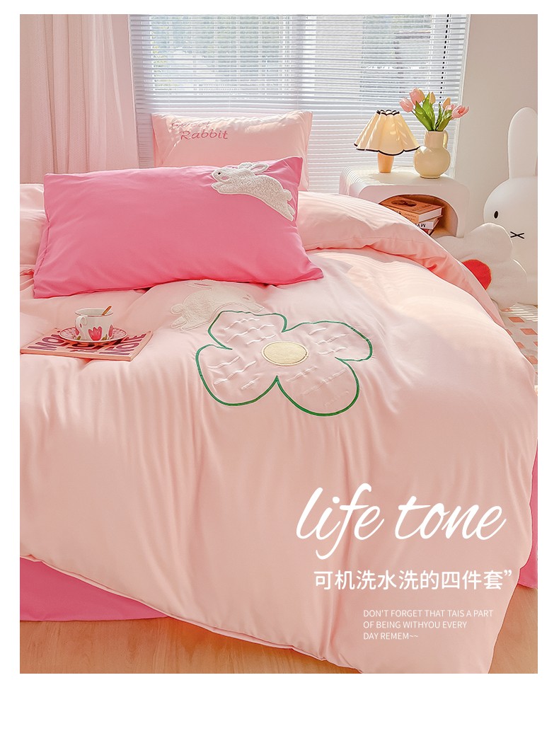 (总)尤米 2023新款亲肤萌趣贴布绣工艺有钱兔撞色四件套