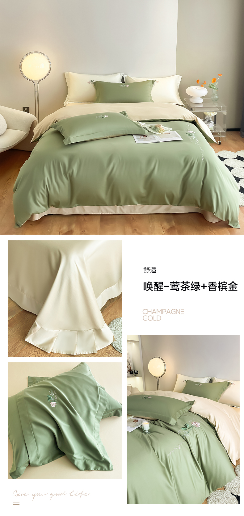 (总)秀色家纺 2025新款轻奢60支贡缎长绒纯棉四件套全棉简约清新刺绣花被套床单高级感,唤醒-奶昔白+茱萸粉,唤醒-天空蓝+茱萸粉,唤醒-奶昔白+天空蓝,唤醒-奶昔白+香槟金,唤醒-茱萸粉+烟墨灰,奶昔白+丁香,奶昔白+莺茶绿,茱萸粉+丁香,莺茶绿+香槟金,香槟金+烟墨灰