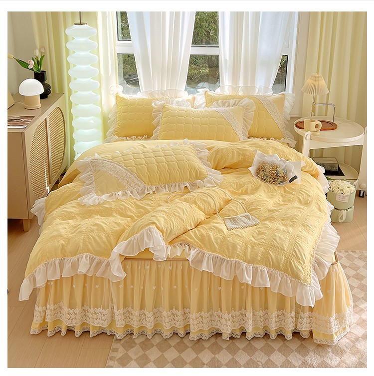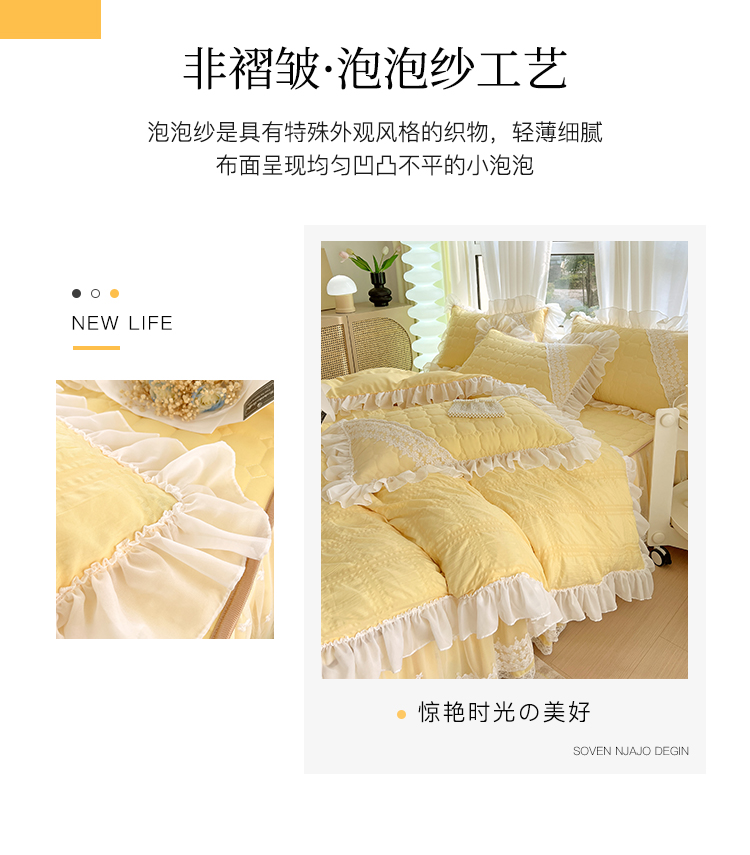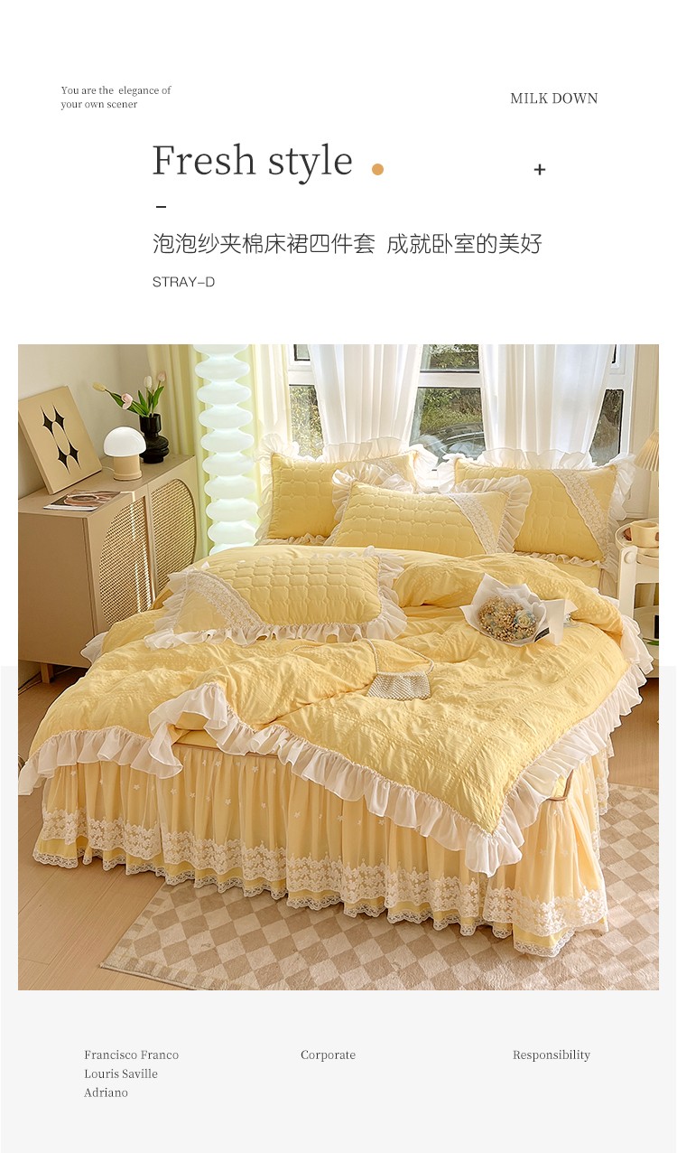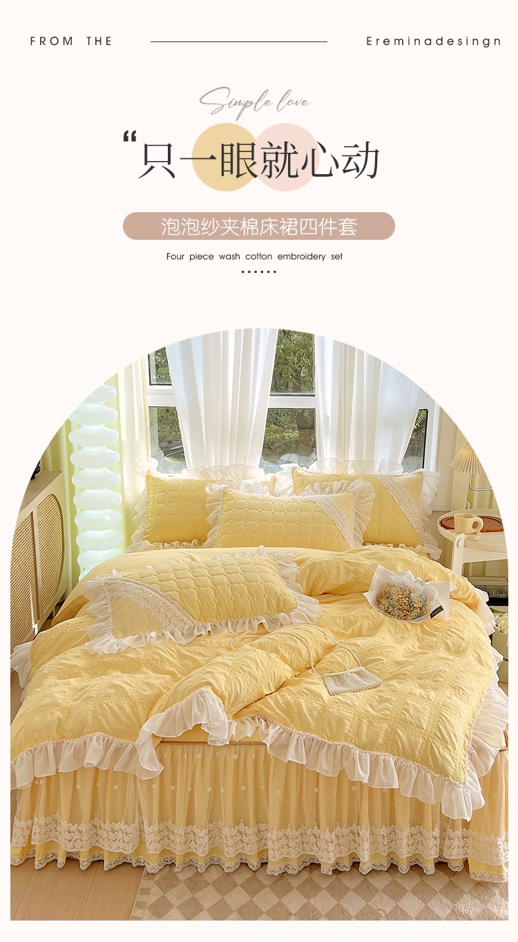 罗艺轩 2024新款 泡泡纱夹棉床裙白雪公主系列四件套 柠檬黄