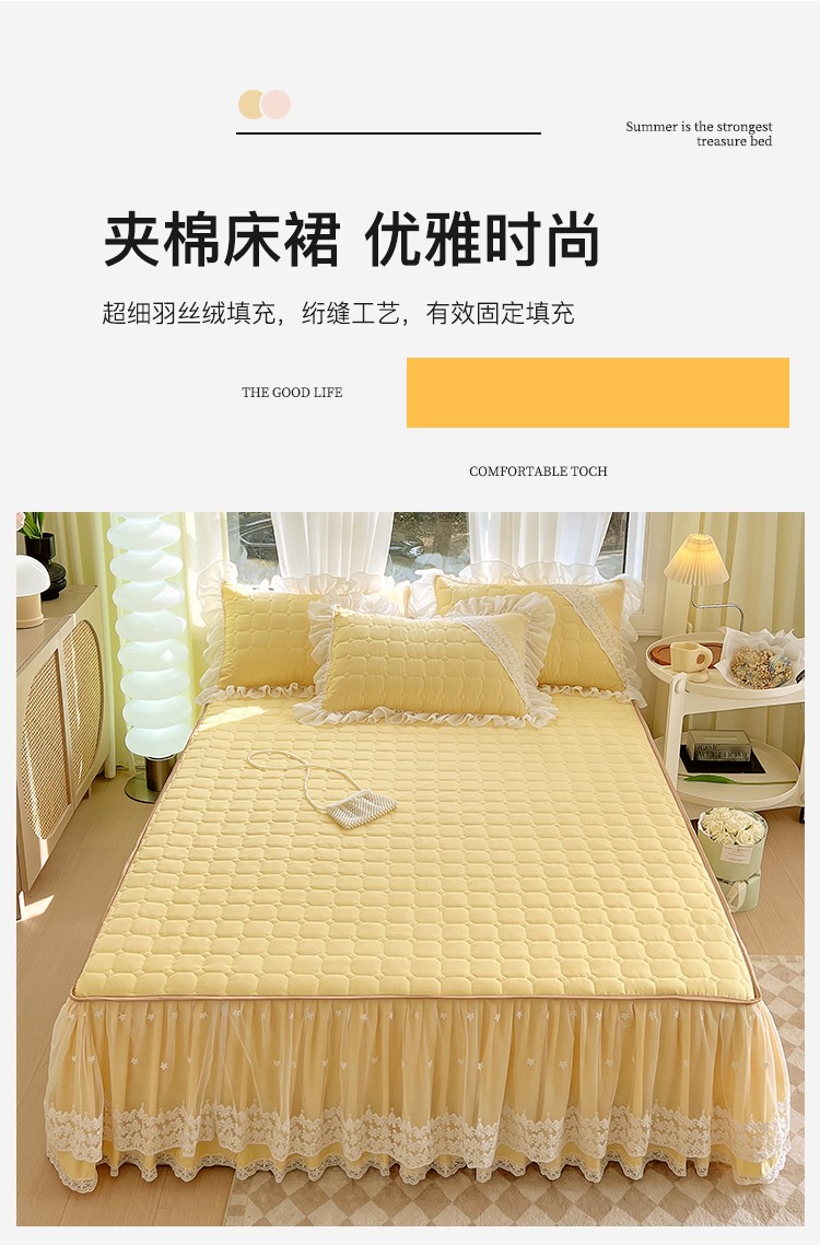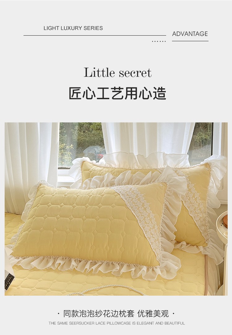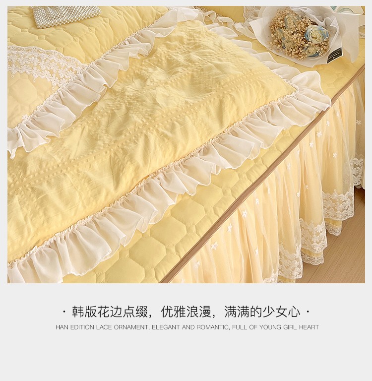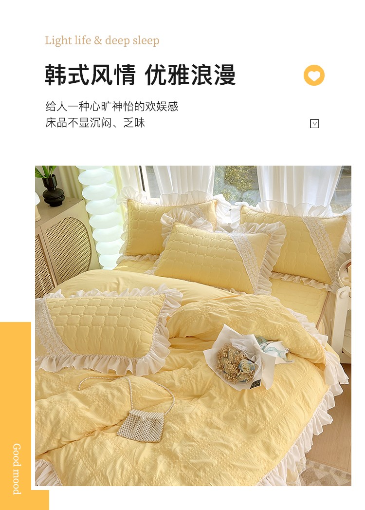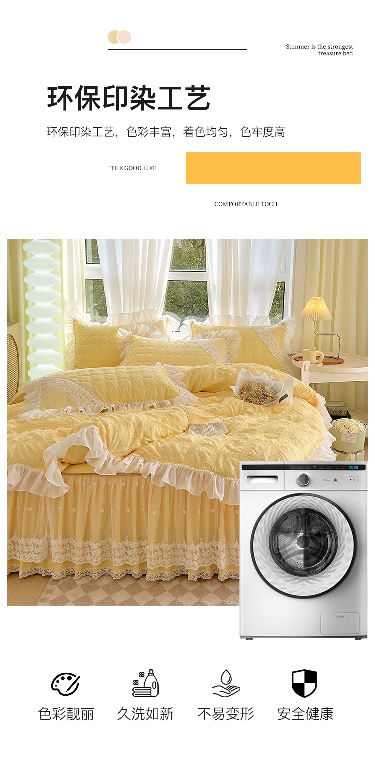 罗艺轩 2024新款 泡泡纱夹棉床裙白雪公主系列四件套 柠檬黄