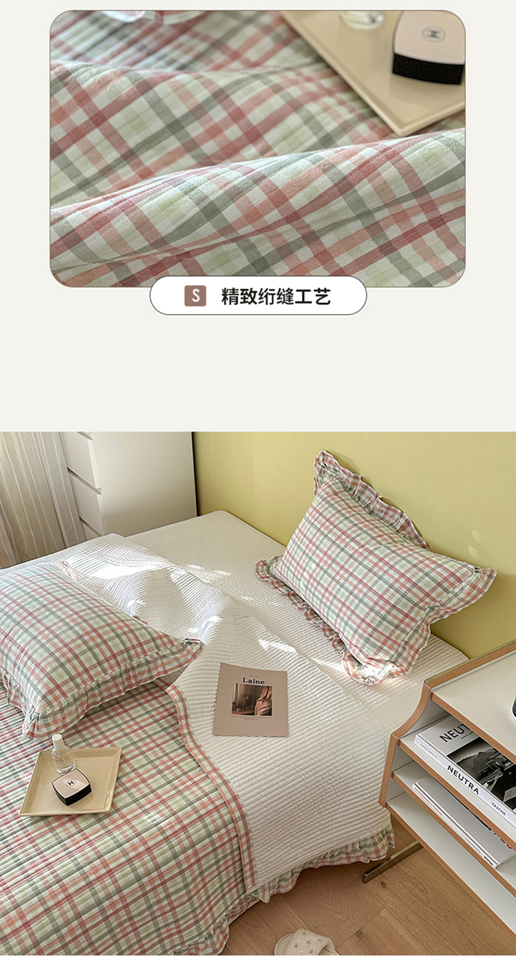 (总)琳可家居 2026春夏新品双面斜纹全棉印花绣花床盖可机洗加密绗缝高温水洗,格子樱桃粉,格子樱桃蓝,条纹狗狗,条纹樱桃,组合
