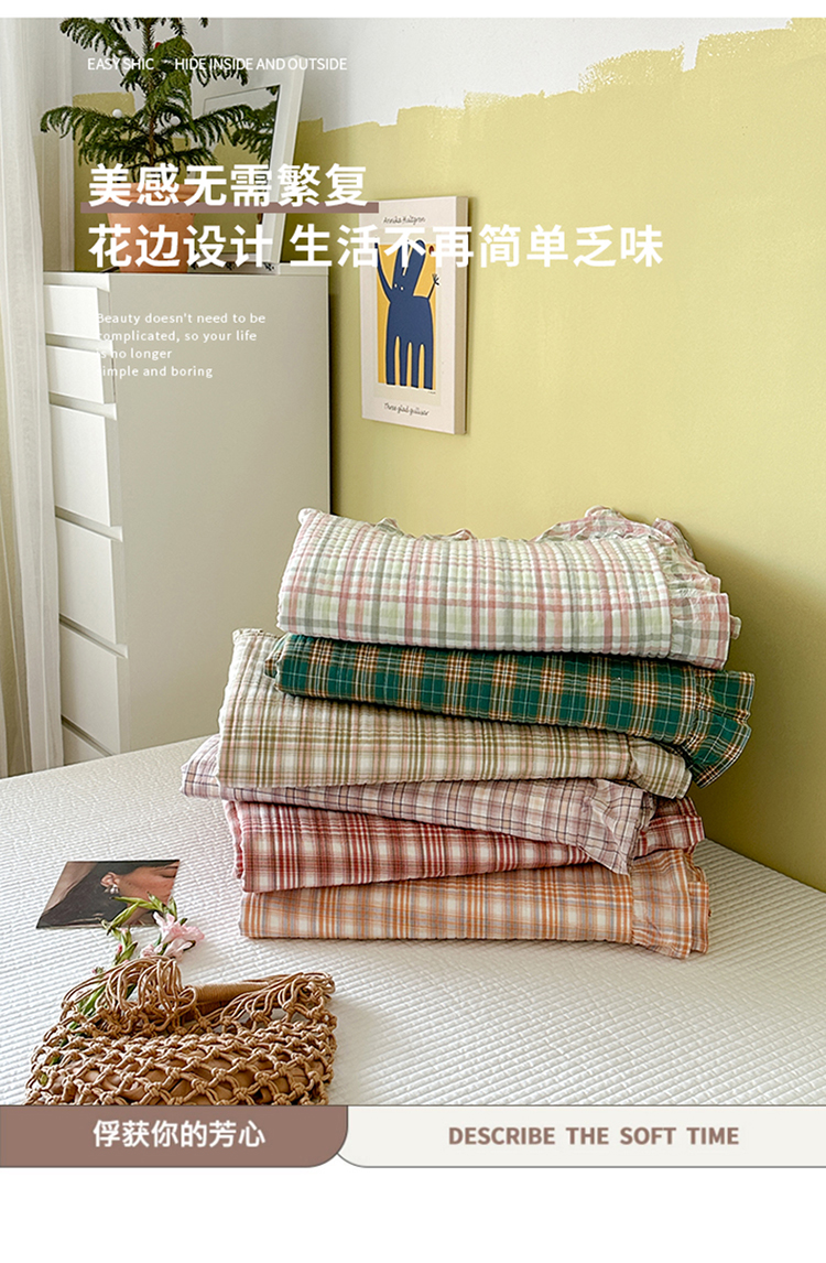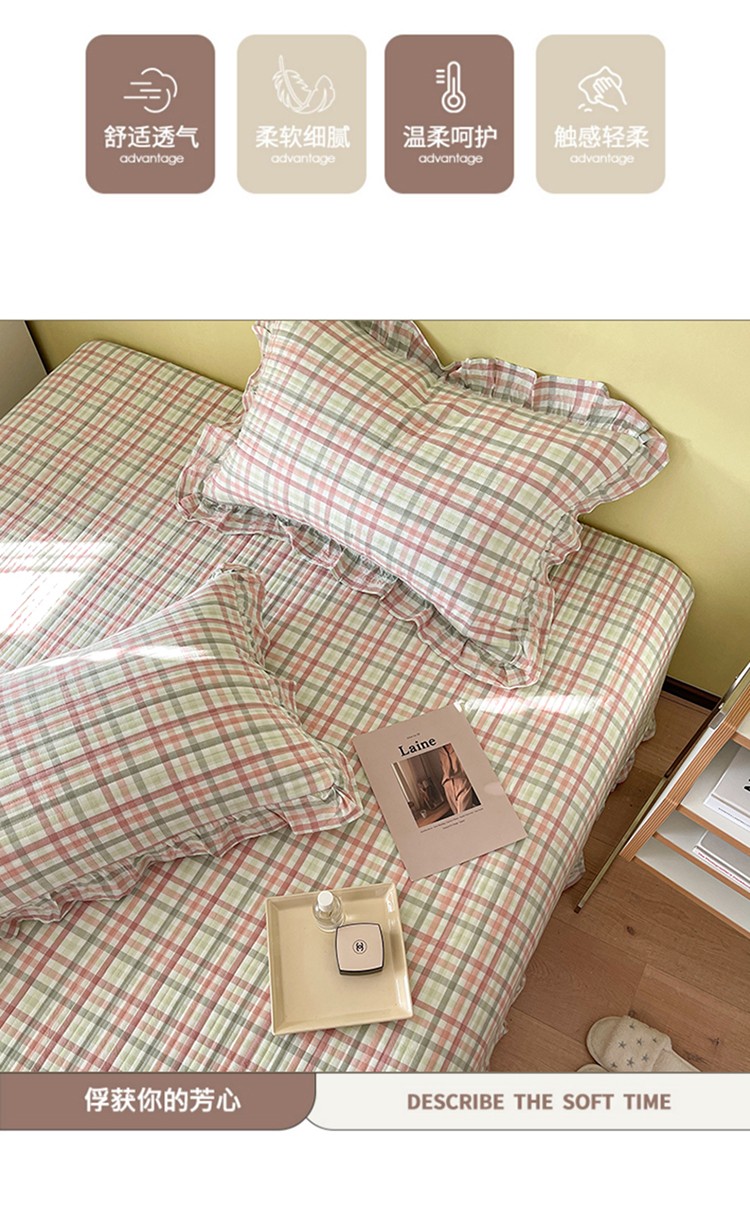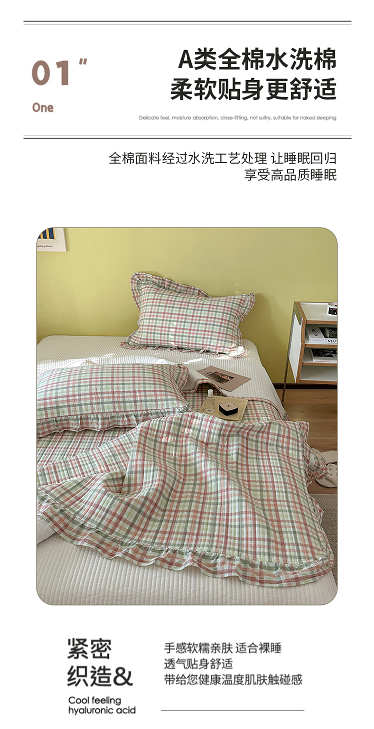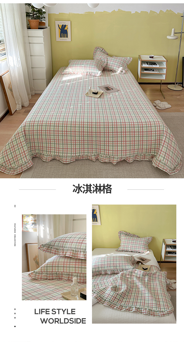 商品名称:琳可家居 2023新款A类韩版色织全棉水洗棉单被套 冰淇淋格