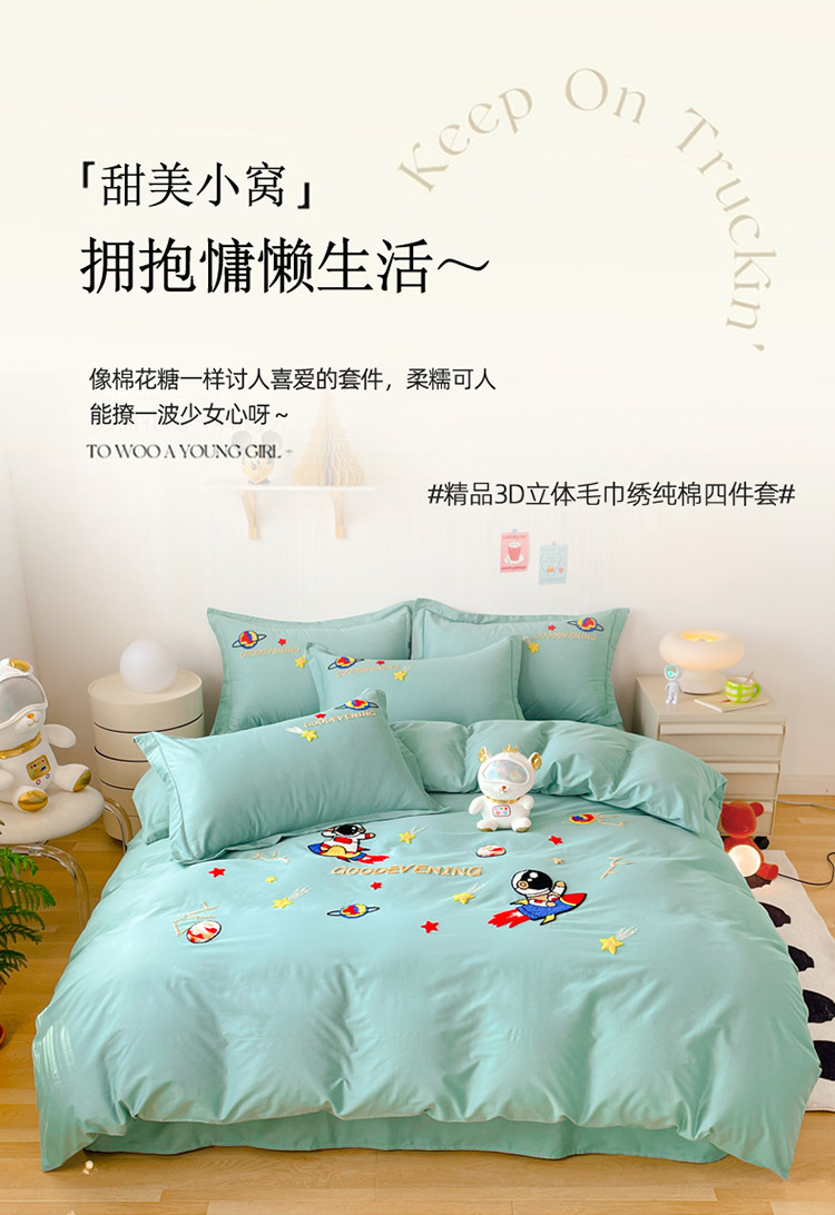金窝窝家纺2024新款活性精品纯棉毛巾绣四件套-梦想星空 梦想星空-浅绿